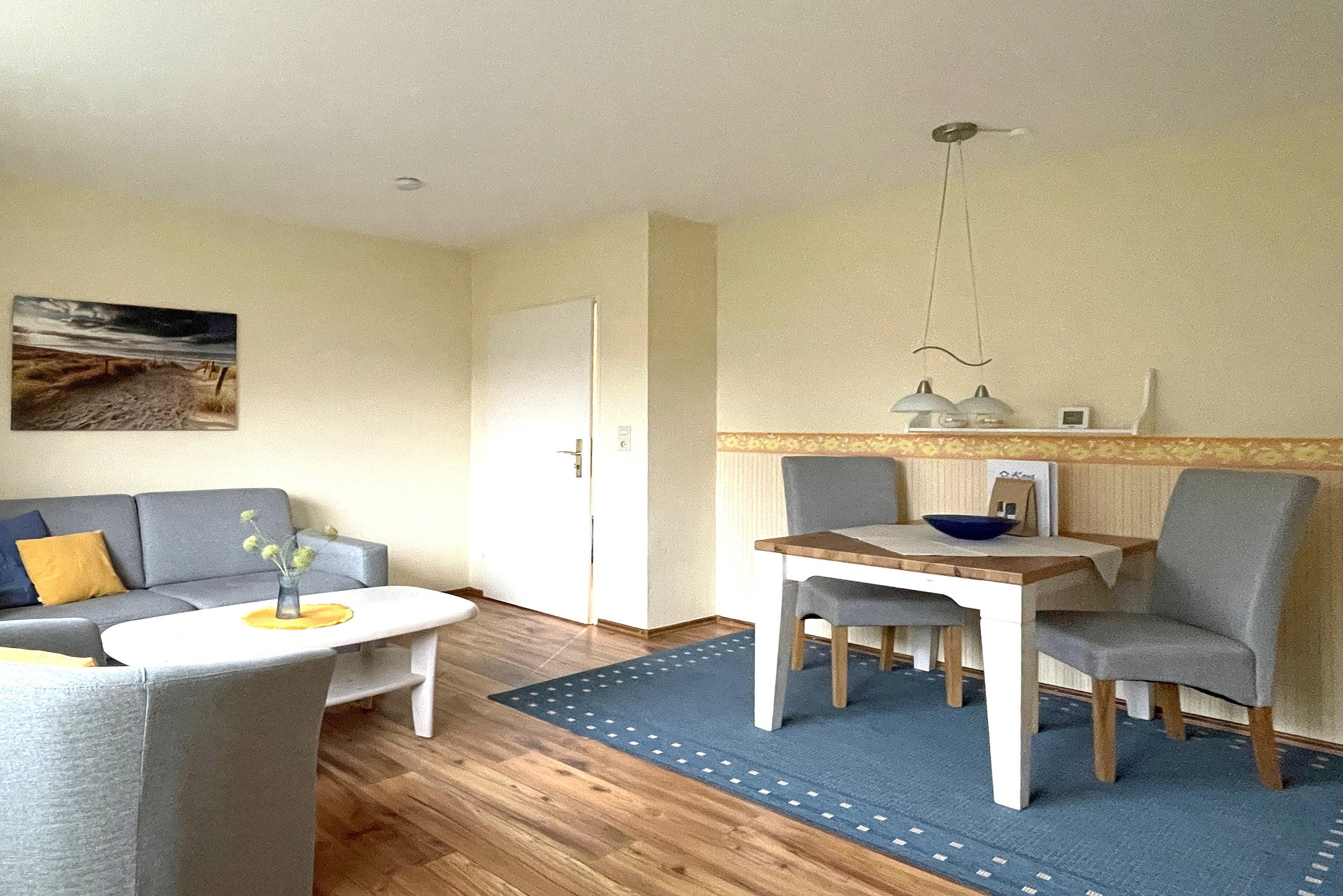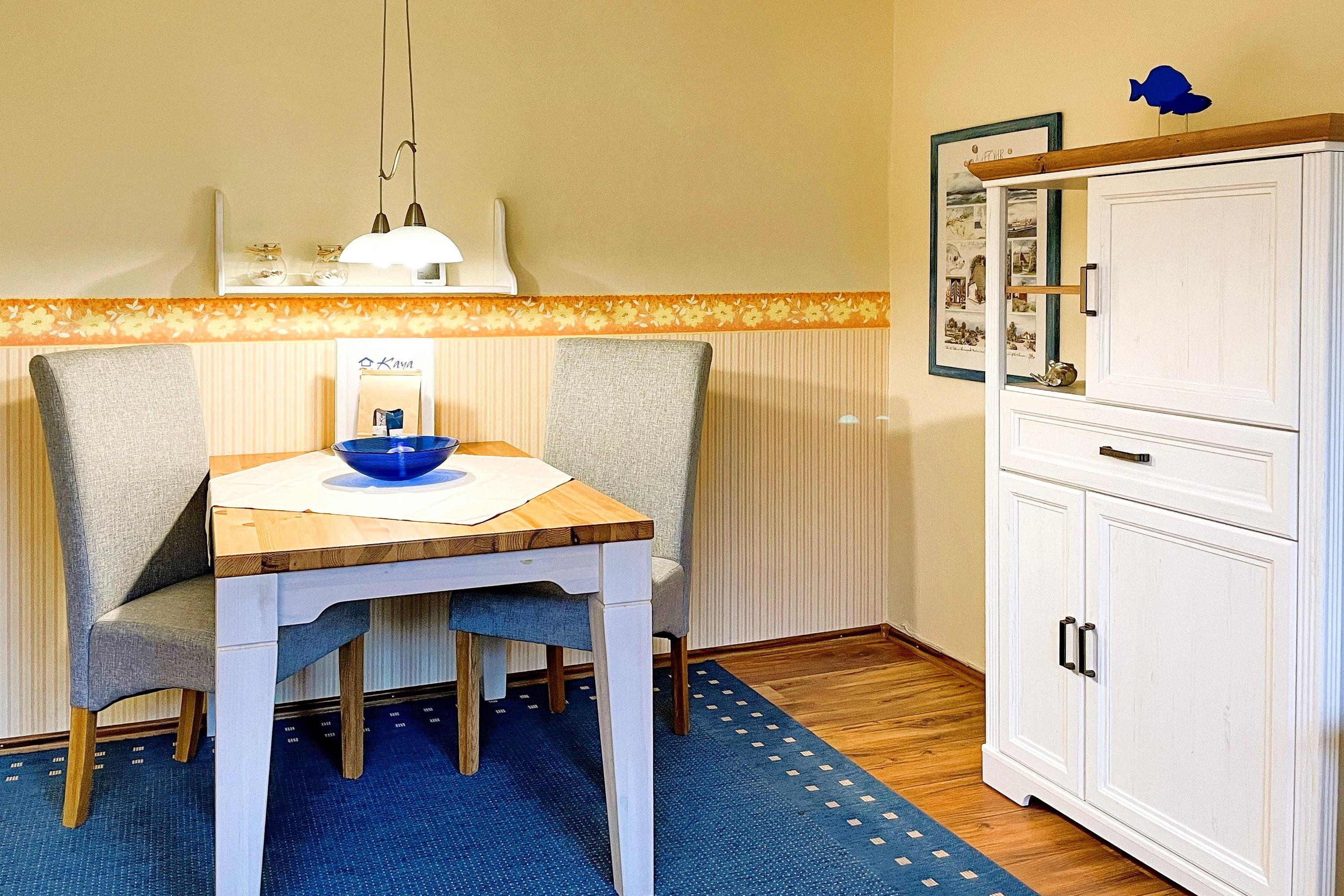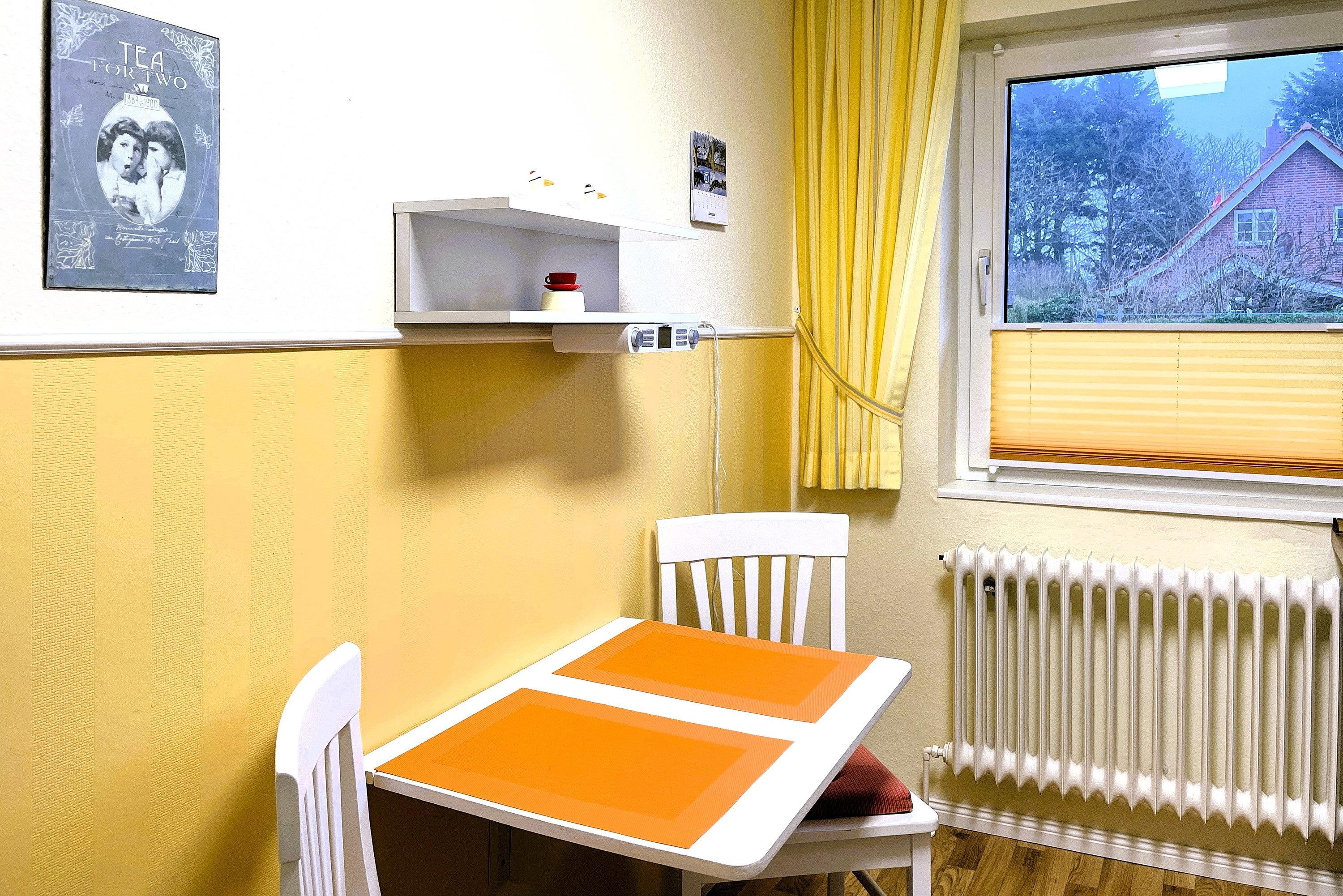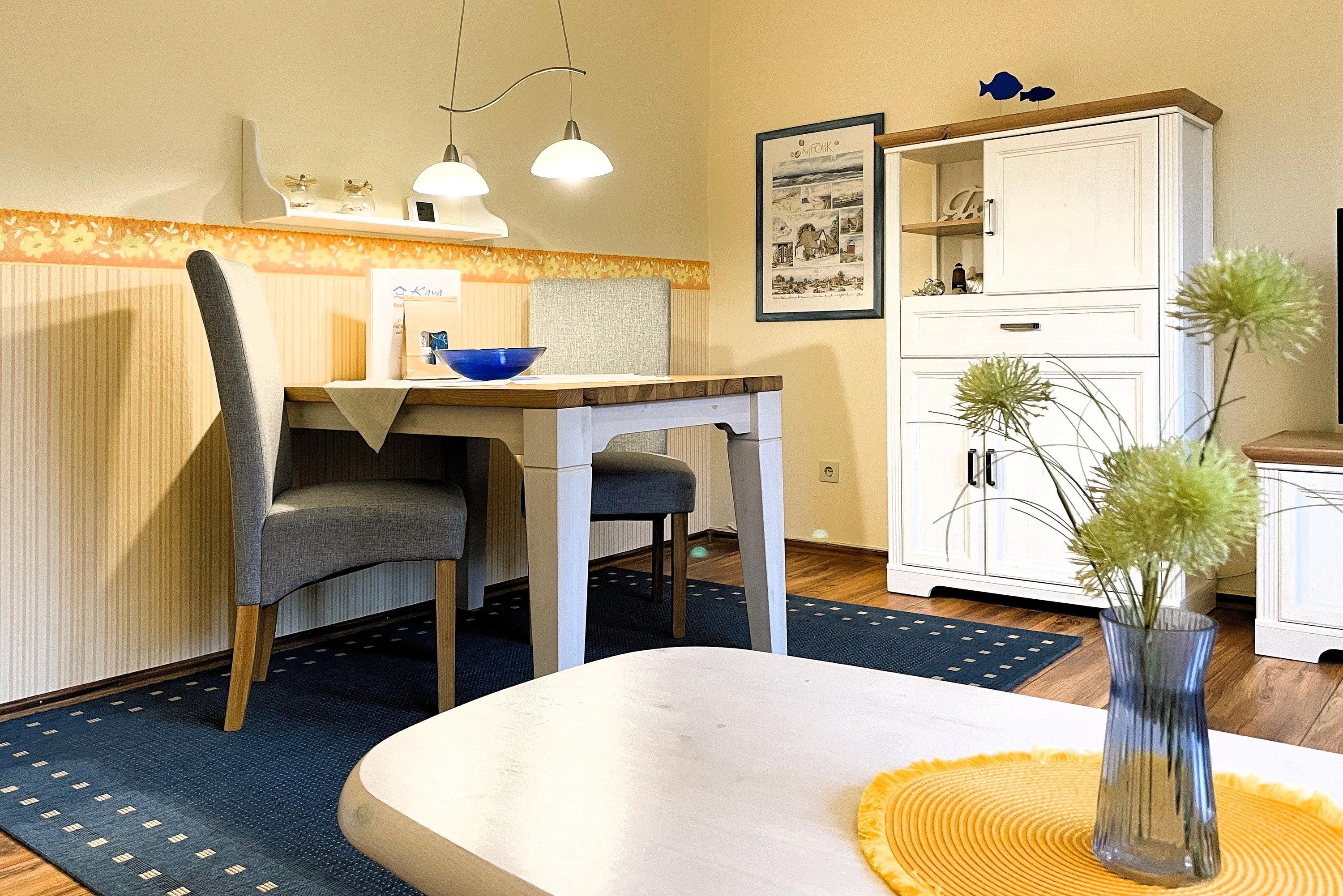 Entdecken Sie Ihr gemütliches Inselrefugium in der Ferienhaus Inselglück auf Föhr. Diese charmante Unterkunft bietet auf ca. 50 qm reichlich Platz für zwei Erwachsene, die ein eigenes "Häuschen" schätzen. Über einen privaten Eingang betreten Sie die Wohnung und werden sofort von einem freundlichen Ambiente empfangen. Der lichtdurchflutete Wohnraum bildet das Herzstück der Unterkunft und besticht durch eine hochwertige Schlafcouch sowie eine weiße Essecke, die zu gemütlichen Mahlzeiten einlädt. Von hier aus gelangen Sie direkt in den Gemeinschaftsgarten mit Ihrer eigenen Terrasse, wo Sie entspannen und die frische Nordseeluft genießen können. Die separate Küche ist gut ausgestattet und lässt keine Wünsche offen. Hier finden Sie alles, was Sie für die Selbstversorgung benötigen, sowie eine kleine Sitzecke für schnelle Mahlzeiten. Im praktischen Badezimmer erwarten Sie eine Dusche und ein Waschmaschine zur kostenfreien Nutzung. Das Schlafzimmer ist im nordischen Stil gehalten und bietet ein komfortables Doppelbett sowie inseltypische Accessoires, die das Föhr-Feeling unterstreichen. Erleben Sie einen unvergesslichen Wohlfühlurlaub in Ihrem eigenen Föhrer Refugium. Unser Inselglück vereint Komfort, Privatsphäre und Charme der Nordseeinsel – perfekt für Ihren nächsten Inselurlaub zu Zweit.