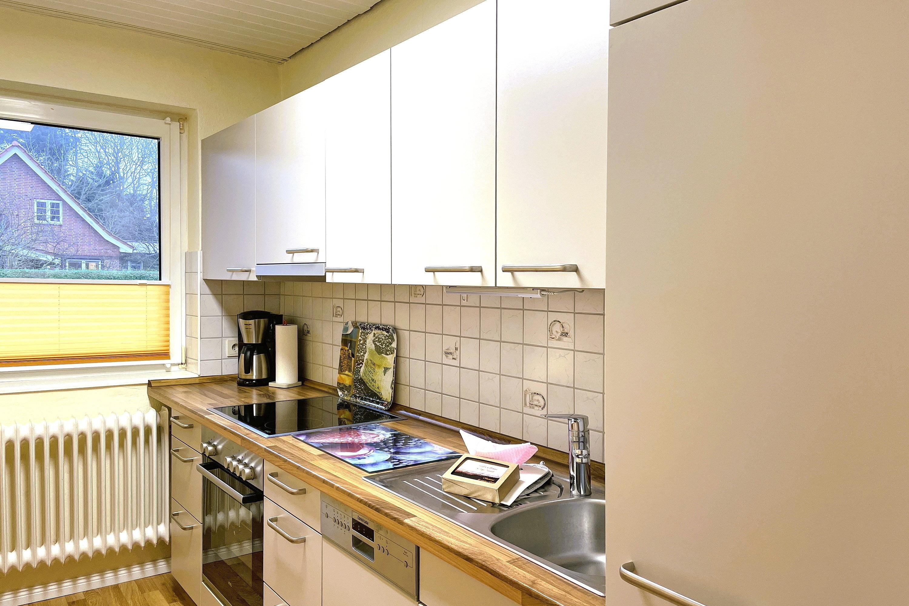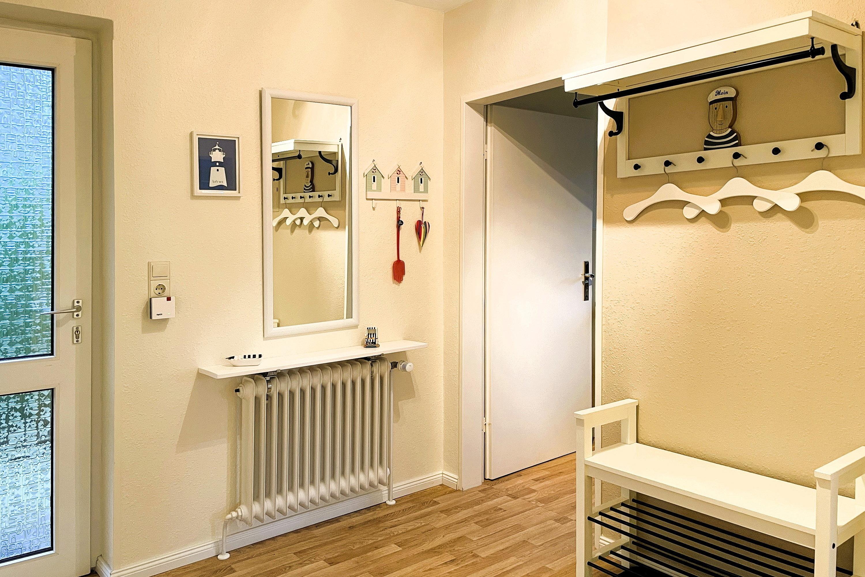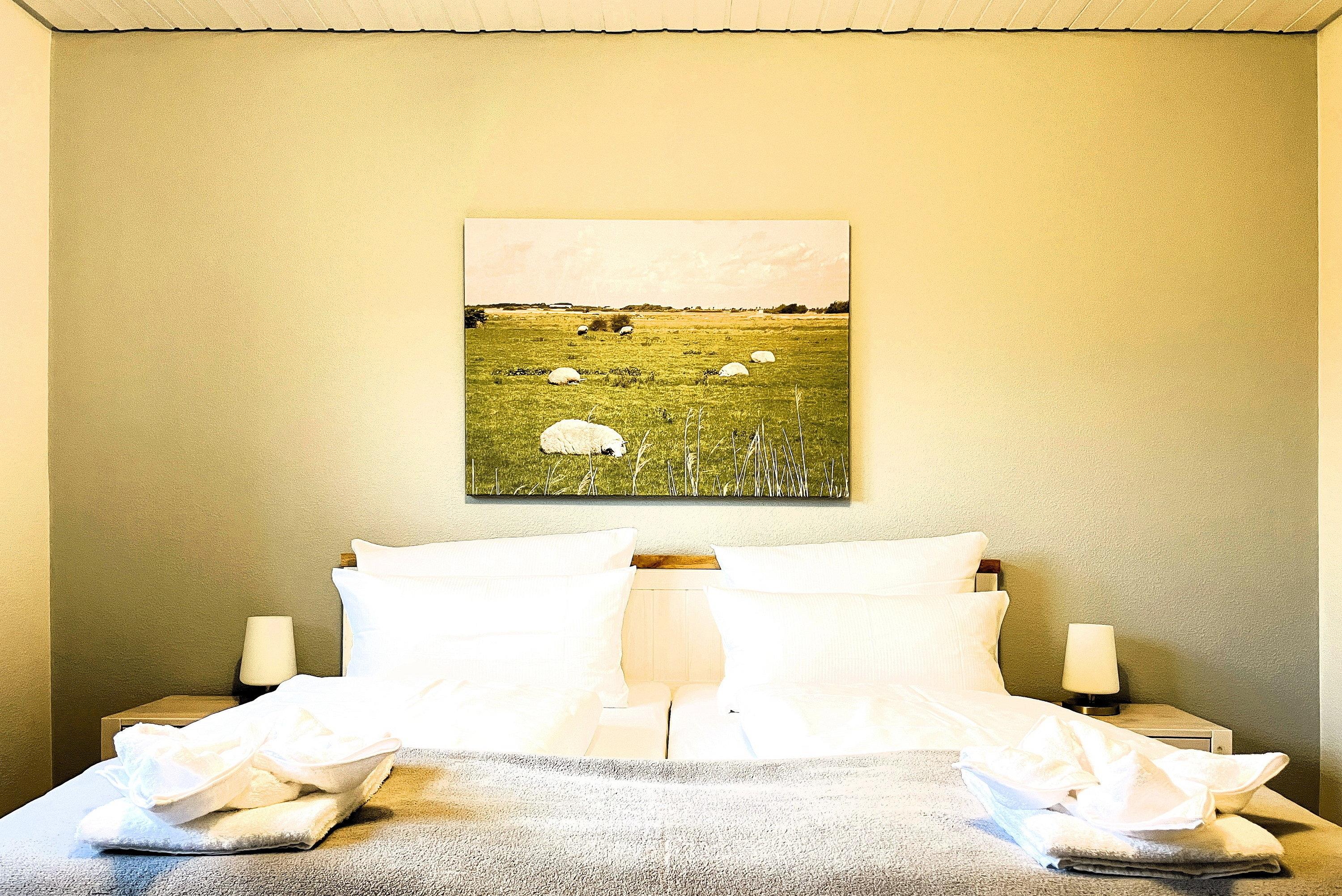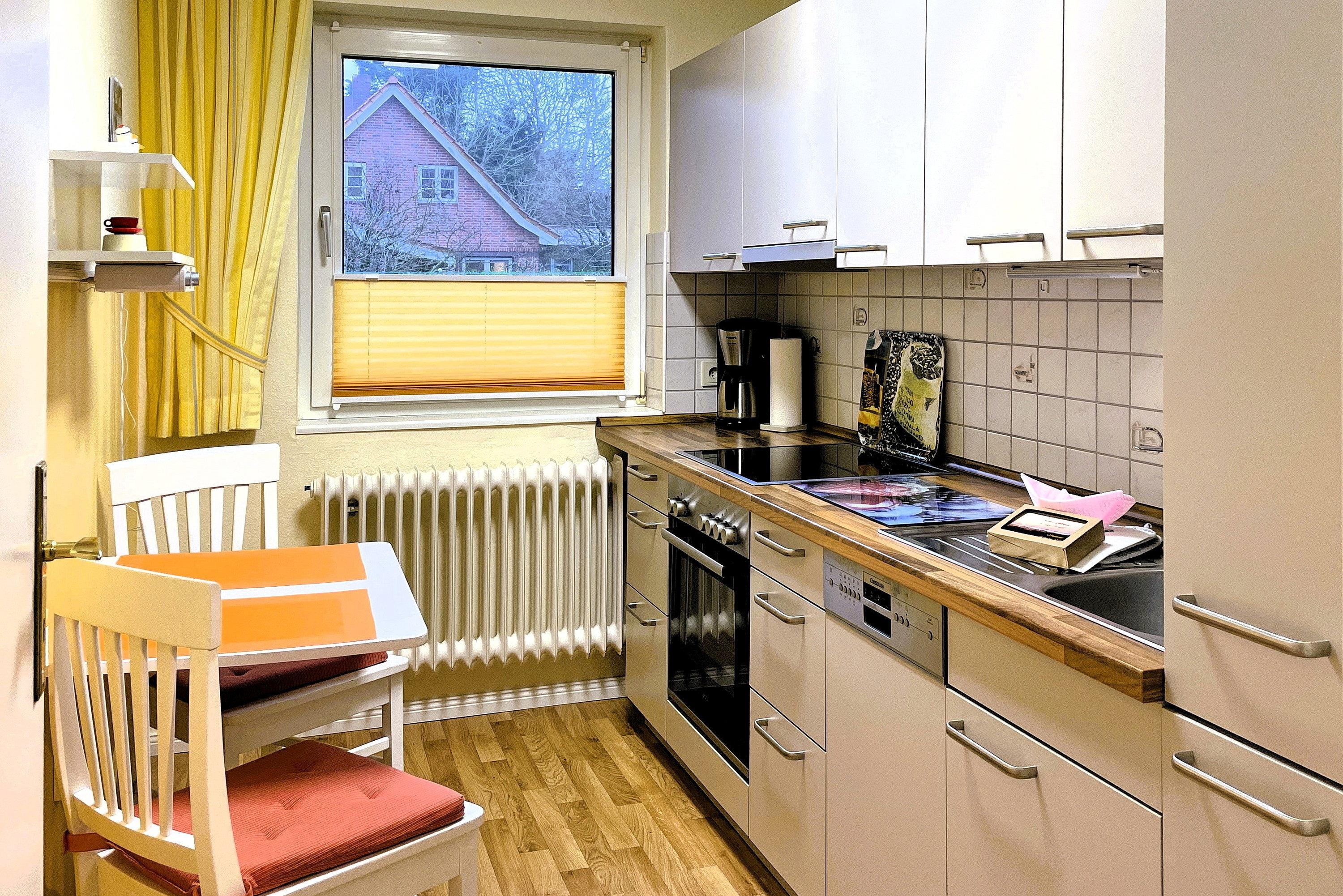 Entdecken Sie Ihr gemütliches Inselrefugium in der Ferienhaus Inselglück auf Föhr. Diese charmante Unterkunft bietet auf ca. 50 qm reichlich Platz für zwei Erwachsene, die ein eigenes "Häuschen" schätzen. Über einen privaten Eingang betreten Sie die Wohnung und werden sofort von einem freundlichen Ambiente empfangen. Der lichtdurchflutete Wohnraum bildet das Herzstück der Unterkunft und besticht durch eine hochwertige Schlafcouch sowie eine weiße Essecke, die zu gemütlichen Mahlzeiten einlädt. Von hier aus gelangen Sie direkt in den Gemeinschaftsgarten mit Ihrer eigenen Terrasse, wo Sie entspannen und die frische Nordseeluft genießen können. Die separate Küche ist gut ausgestattet und lässt keine Wünsche offen. Hier finden Sie alles, was Sie für die Selbstversorgung benötigen, sowie eine kleine Sitzecke für schnelle Mahlzeiten. Im praktischen Badezimmer erwarten Sie eine Dusche und ein Waschmaschine zur kostenfreien Nutzung. Das Schlafzimmer ist im nordischen Stil gehalten und bietet ein komfortables Doppelbett sowie inseltypische Accessoires, die das Föhr-Feeling unterstreichen. Erleben Sie einen unvergesslichen Wohlfühlurlaub in Ihrem eigenen Föhrer Refugium. Unser Inselglück vereint Komfort, Privatsphäre und Charme der Nordseeinsel – perfekt für Ihren nächsten Inselurlaub zu Zweit.