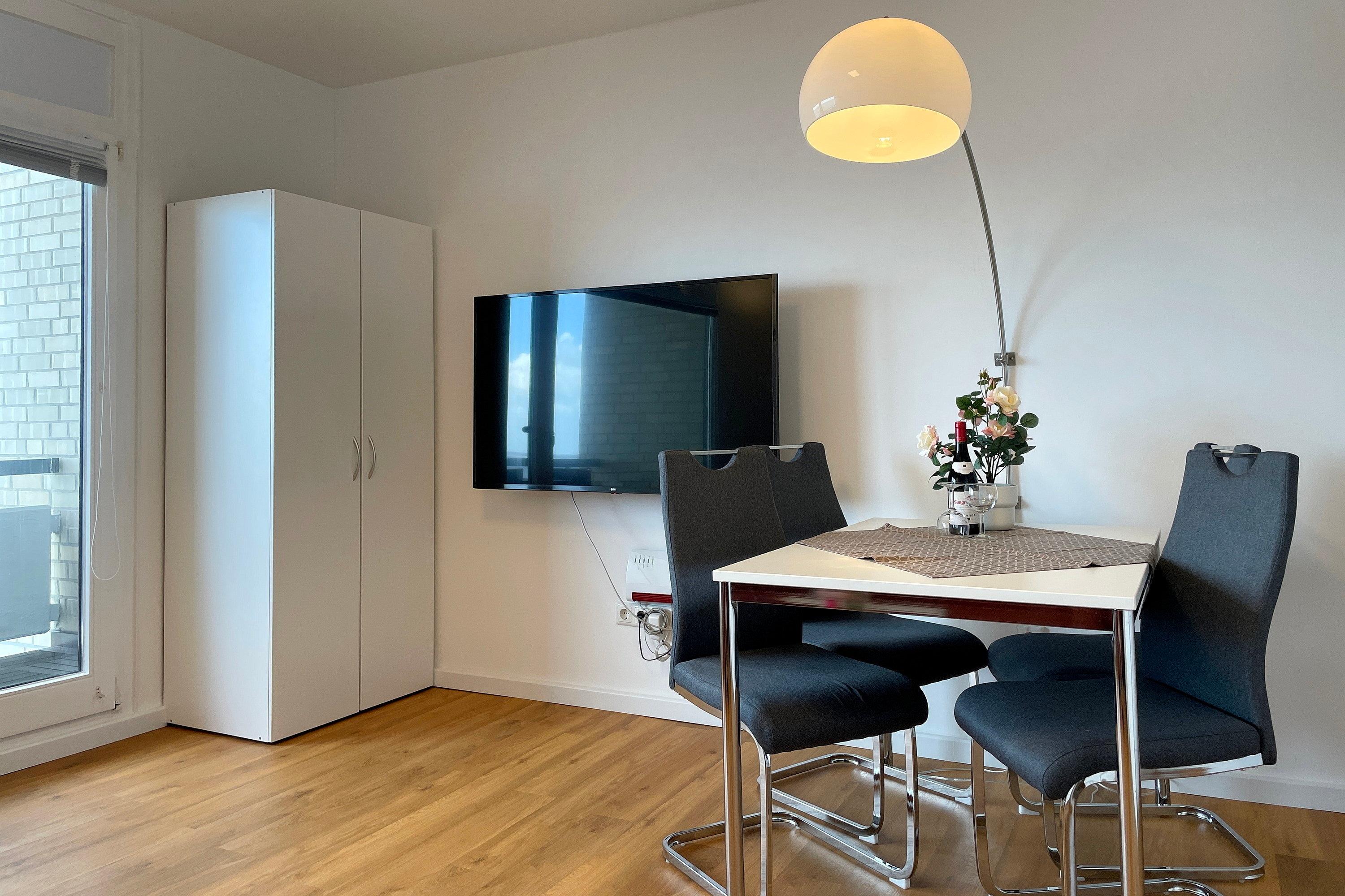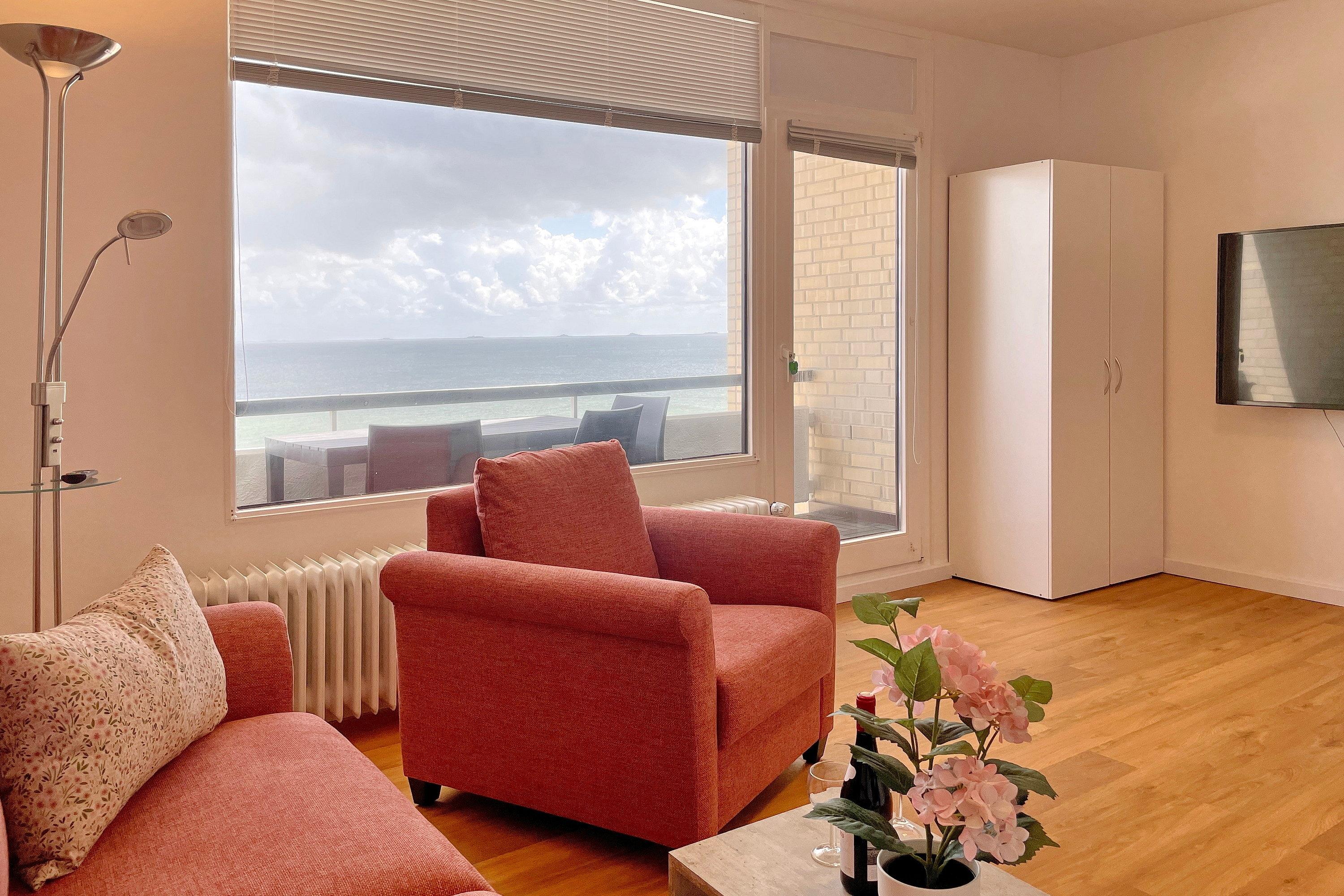 Unsere Irma 28 erstrahlt seit Juni 2023 in ganz neuem Glanz und lädt zu herrlichen Urlaubstagen ein. Die 37 qm große Wohnung ist ideal für 2 Personen geeignet oder für eine kleine Familie mit Kindern bis zu 14 Jahren. Das lichtdurchflutete Wohnzimmer mit integrierter Küchenzeile und Essgruppe ist modern eingerichtet und bietet WLAN, Flachbild-TV und eine bequeme Schlafcouch mit integriertem Lattenrost und Matratze (160 x 200 cm). Sie können sogleich eine Wohlfühl-Atmosphäre spüren. Von hier aus gelangen Sie auf den Balkon, von dem aus Sie einen grandiosen Blick auf die Nordsee und den Strand genießen können. Das Schlafzimmer mit zwei Einzelbetten (90 x 200 cm) und das Duschbad mit Fenster sind klein, aber fein. Schauen Sie sich gleich die Bilder unserer Irma 28 an und überzeugen Sie sich selbst: Eine attraktive Ferienwohnung erwartet Sie!