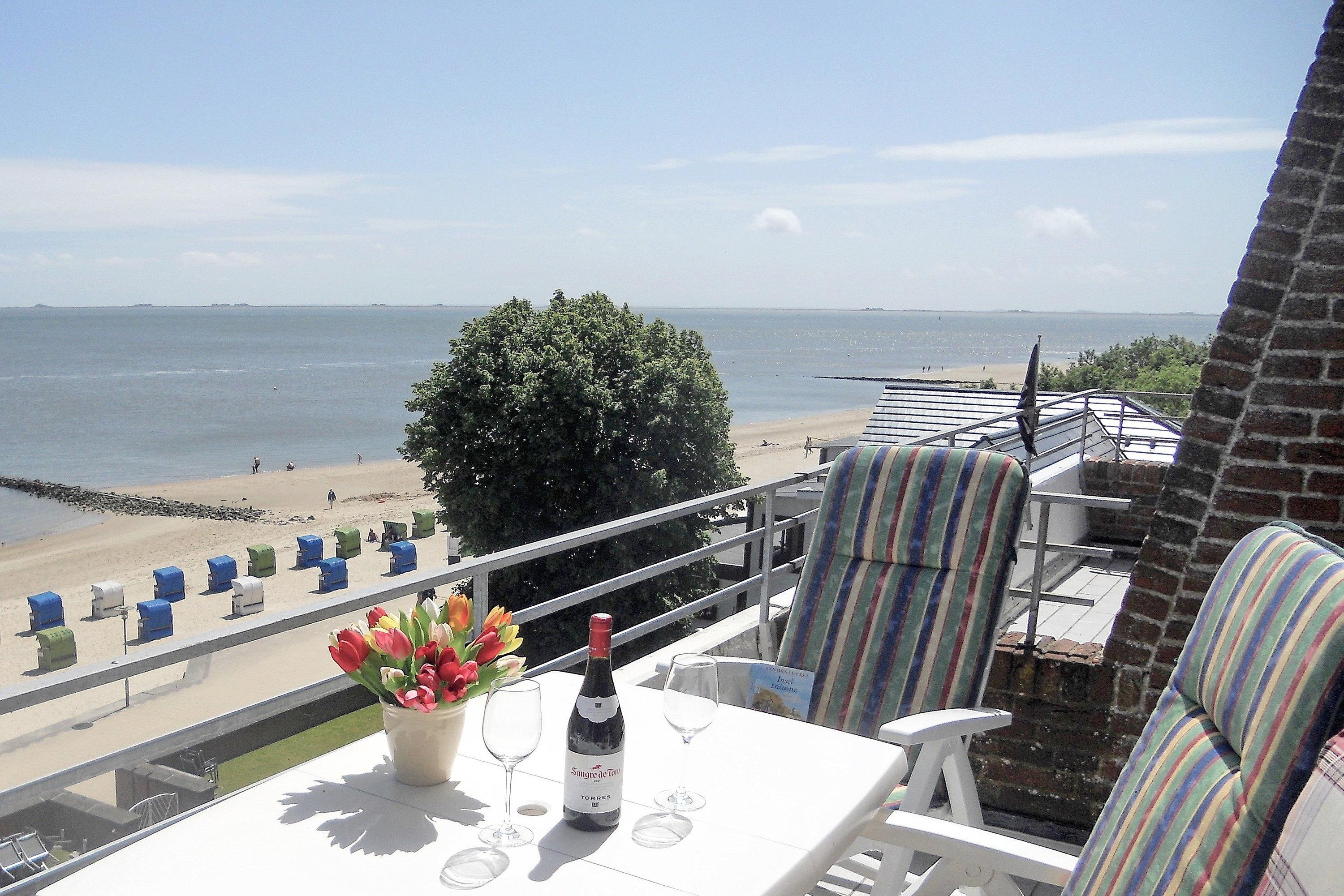 Die Föhrer Nordseebrise und die traumhafte Aussicht auf das Wattenmeer mit seinem wechselnden Schauspiel von Ebbe und Flut können Sie in unseren Wohnungen des Hauses Klaar Kiming am Sandwall in Wyk bereits nach dem Aufstehen vom Balkon aus genießen..