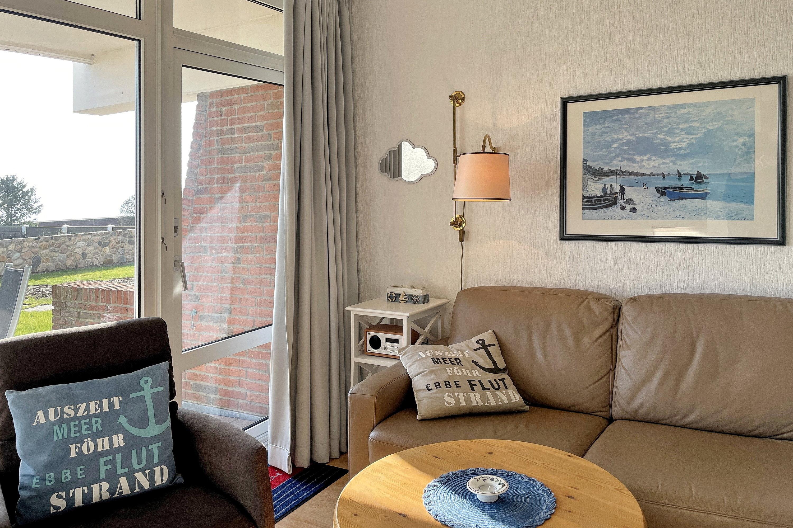 Im ruhigeren Abschnitt des belebten Sandwalls befindet sich das Haus Klaar Kiming direkt vor der Strandpromenade. In wenigen Minuten sind Sie mitten im Geschehen und können die vielen freundlichen Cafés und Restaurants besuchen, in den kleinen Geschäften bummeln gehen oder sich im Aqua Föhr vergnügen. Im Haus befindet sich eine Waschmaschine und Trockner, die gegen eine geringe Gebühr zur gemeinschaftlichen Nutzung bereitsteht. Vom Keller aus gelangen Sie durch einen zweiten Eingang (Ostern bis Ende Oktober) auch direkt an die Promenade und den Strand. Die Wohnungen bieten hier einen herrlichen Blick über das Meer und Sie können die Fähren, die Möwen und Ebbe und Flut vom Balkon oder der Terrasse aus beobachten.