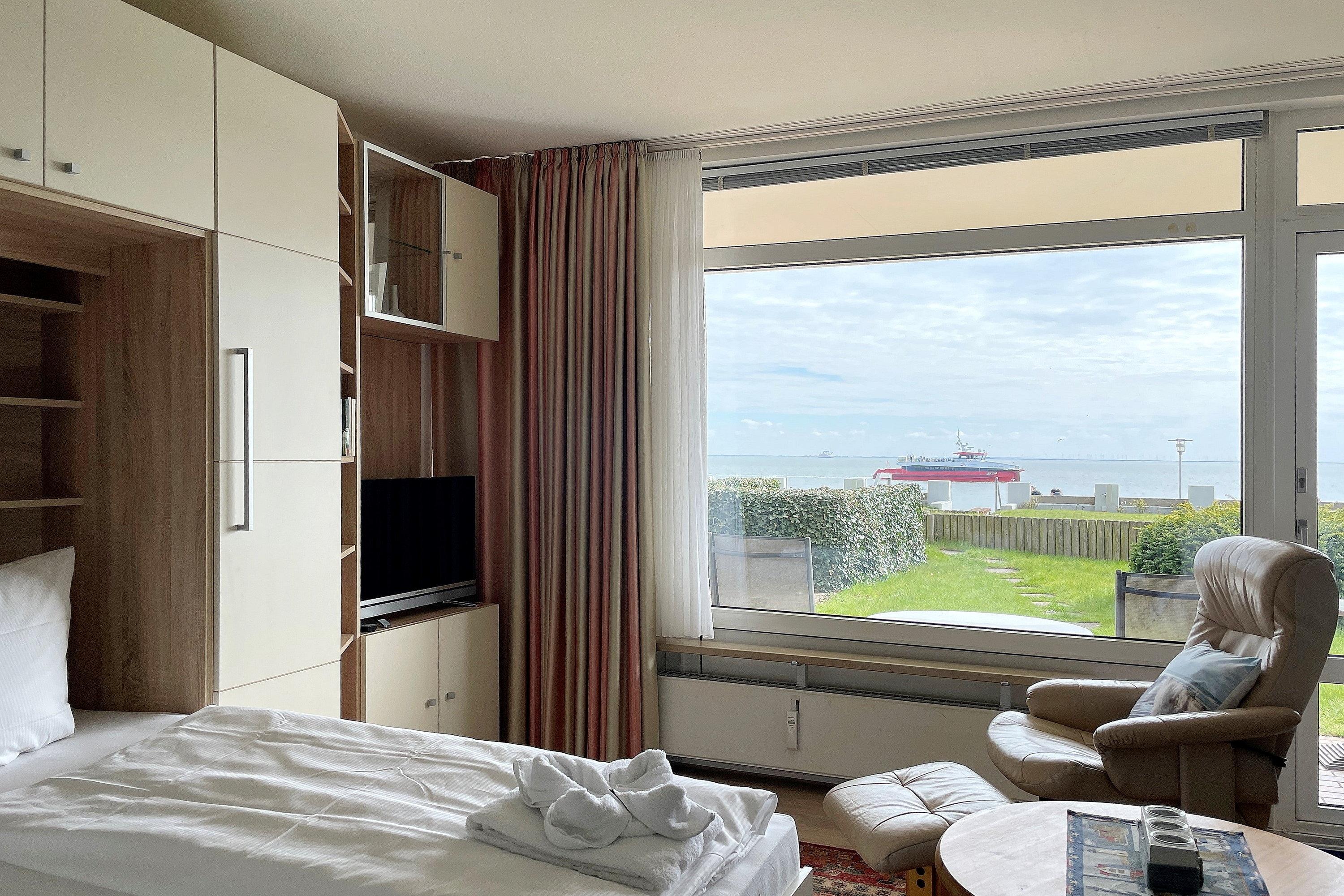 Genießen Sie den traumhaften Meerblick direkt von der Wohnung oder der eigenen Terrasse aus. Das Haus Klaar Kiming am Sandwall in Wyk bietet zudem einen eigenen Zugang zur Strandpromenade.
