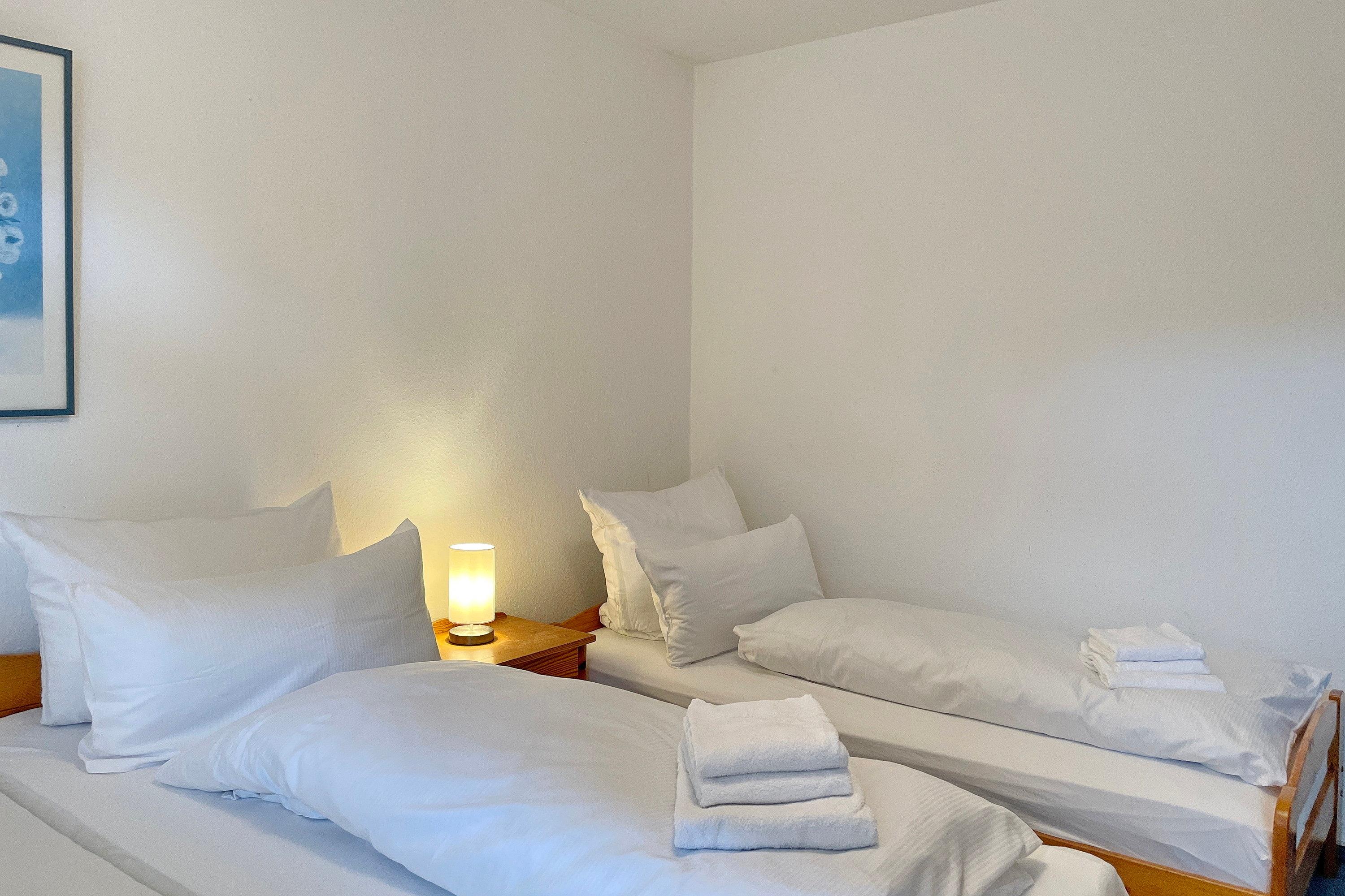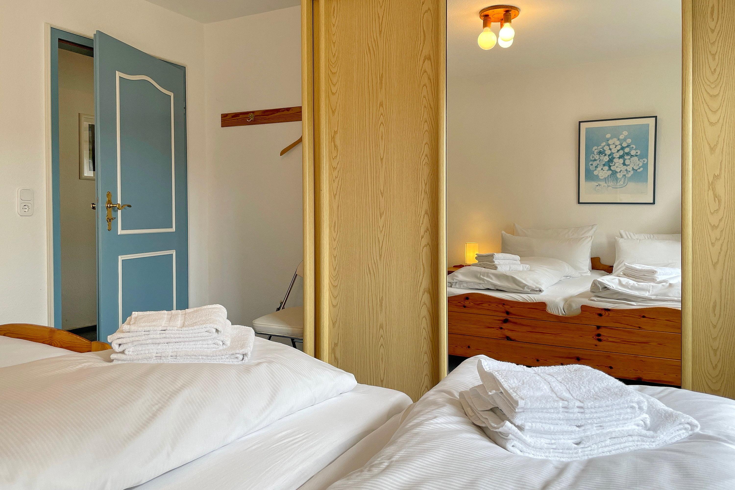 Die behagliche Erdgeschosswohnung Manuela Sieck EG bietet Platz für 4 Personen. Das geräumige Wohnzimmer mit Flachbild-TV, WLAN, CD-Player mit Kassettenfach und einer kleinen Auswahl an Büchern verfügt über eine moderne Sitzgruppe bestehend aus zwei Sofas und einem Lesesessel ist maritim eingerichtet. Hier befindet sich ein gemütliches Doppelschrankbett (160x 200 cm). Die Wohnküche mit Essplatz für 4 Personen, Ceranfeldherd, Backofen, Kühlschrank mit Gefrierfach, Geschirrspüler und Mikrowelle ist gut ausgestattet. Geruhsame Nächte verspricht das Schlafzimmer mit Doppelbett (180x190 cm) und einem Einzelbett (90x190cm) sowie dem geräumigen Kleiderschrank. Das kleine Duschbad mit Fenster ist funktional. Genießen Sie den maritimen Charme dieser Wohnung und verbringen Sie herrliche Urlaubstage. Wunderbar eignet sich dieses Domizil auch für zwei befreundete Familien, die gerne zusammen in Urlaub fahren möchten, dabei aber auch Ihre eigene Ruhezone besitzen möchten. Wir freuen uns auf Ihren Anruf!