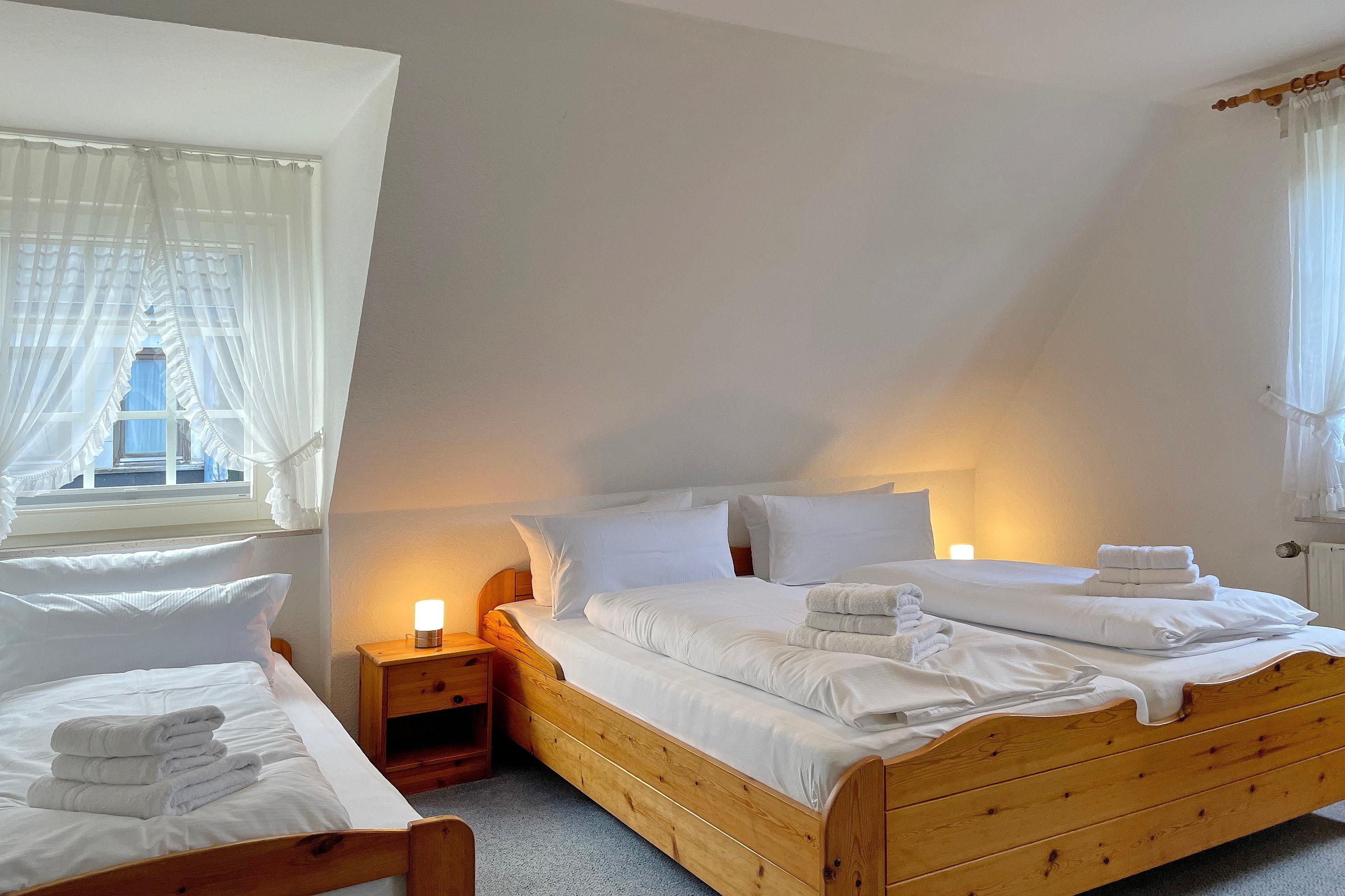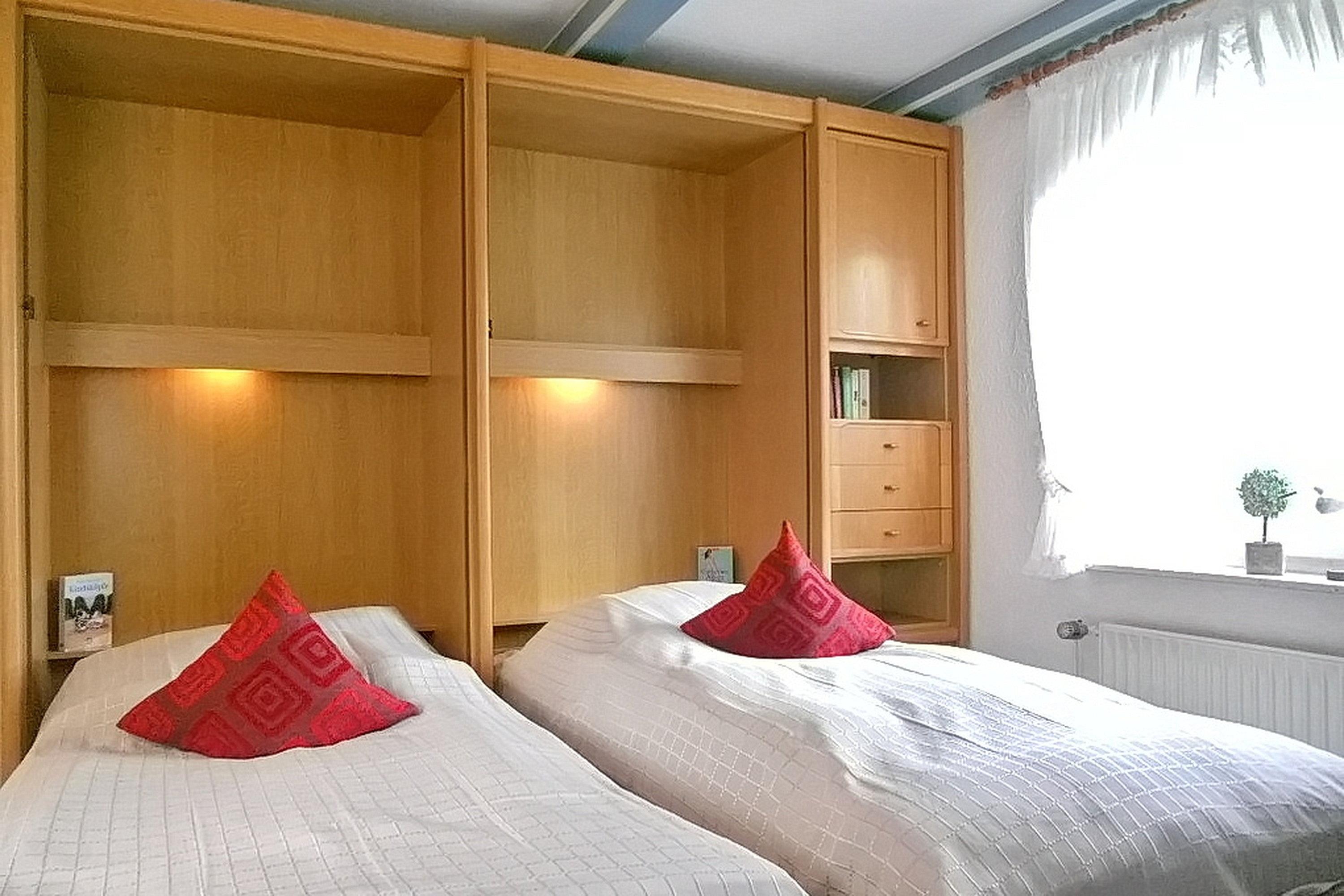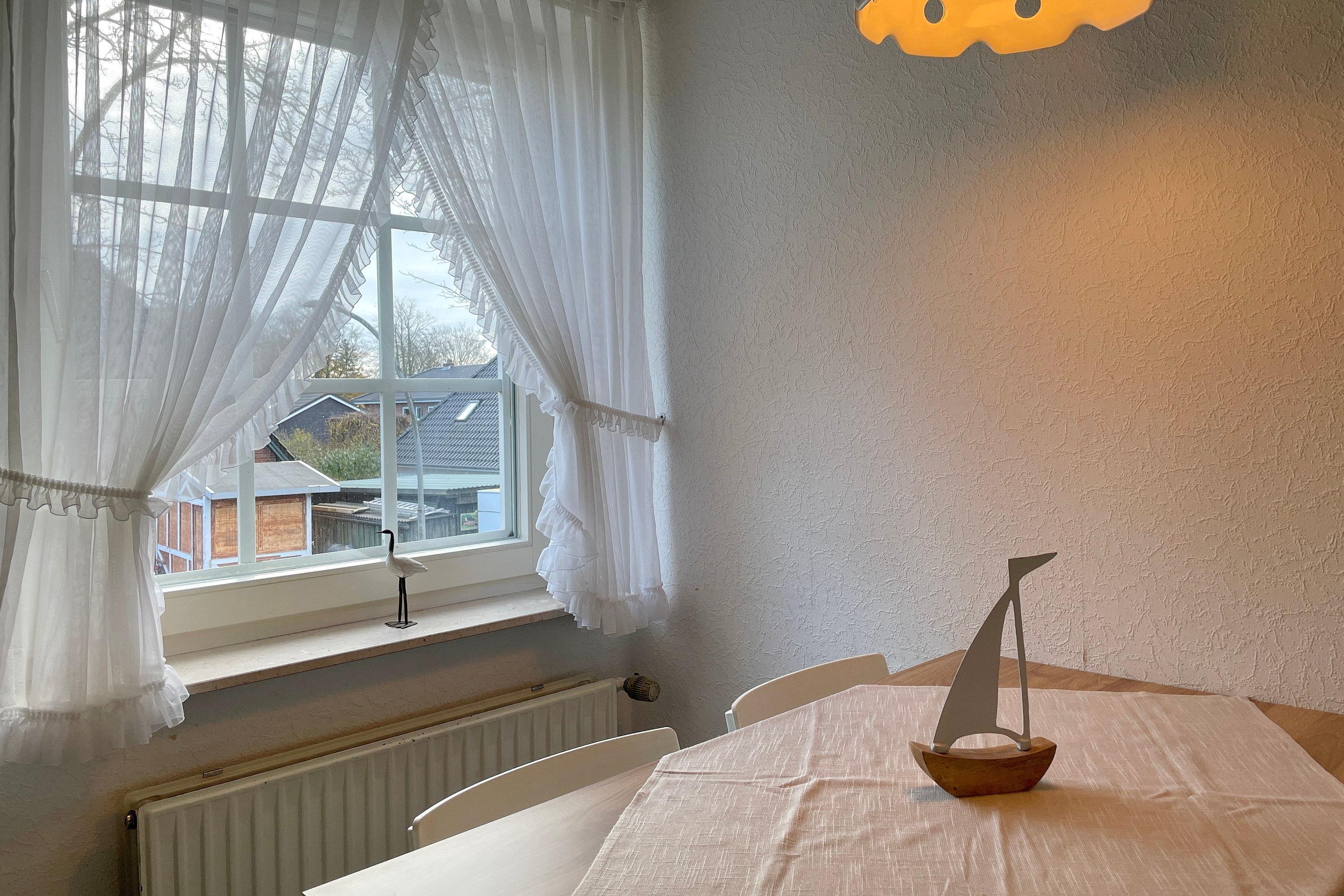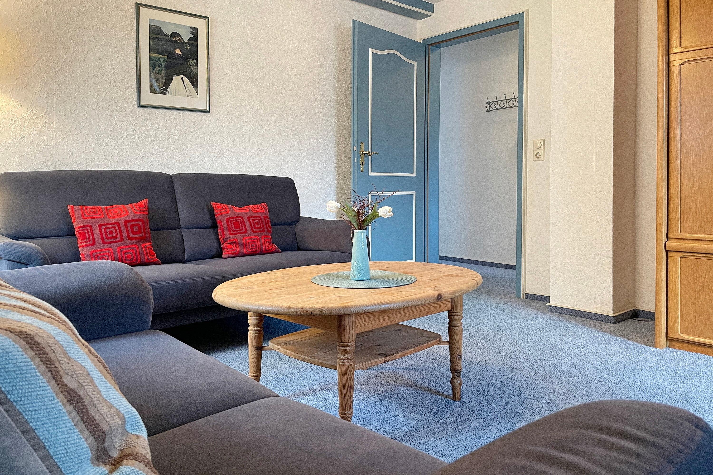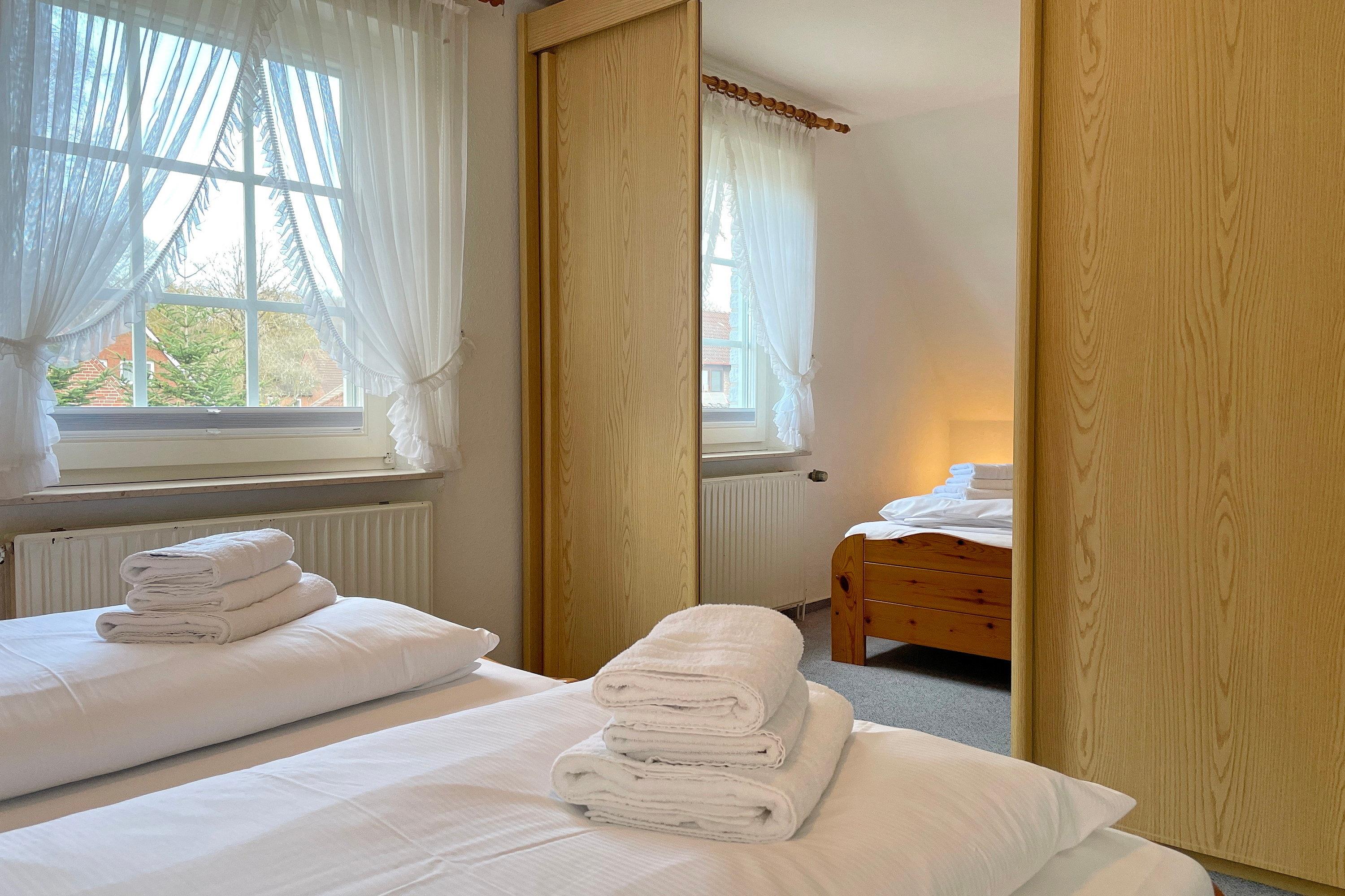 Die Obergeschosswohnung Manuela Sieck OG bietet bis zu 4 Personen schöne Urlaubstage. Das freundlich gestaltete Wohnzimmer mit zwei hochwertigen Sofas, WLAN, Flachbild-TV und zwei einzelnen Schrankbetten (je 90x 200 cm) ist lichtdurchflutet und lädt zu geselligen Abenden ein. Die Wohnküche mit integriertem Essplatz, Ceranfeldherd mit Backofen, Geschirrspüler, Kühlschrank mit Gefrierfach und Mikrowelle ist gut ausgestattet, so dass das Kochen Spaß macht. Ein geräumiges Bad mit Fenstern und ein zusätzliches WC, ebenfalls mit Fenster, sind hell gefliest. Nach einem erlebnisreichen Urlaubstag können Sie ruhige Träume im Schlafzimmer genießen, welches mit Doppelbett (180x200cm), geräumigen Kleiderschrank und einem zusätzlichen Gästebett (90x190cm)ausgestattet ist. Der individuelle und maritime Charme der Wohnung macht dieses Domizil bei seinen Gästen sehr beliebt. Wir freuen uns auf Ihren Anruf!