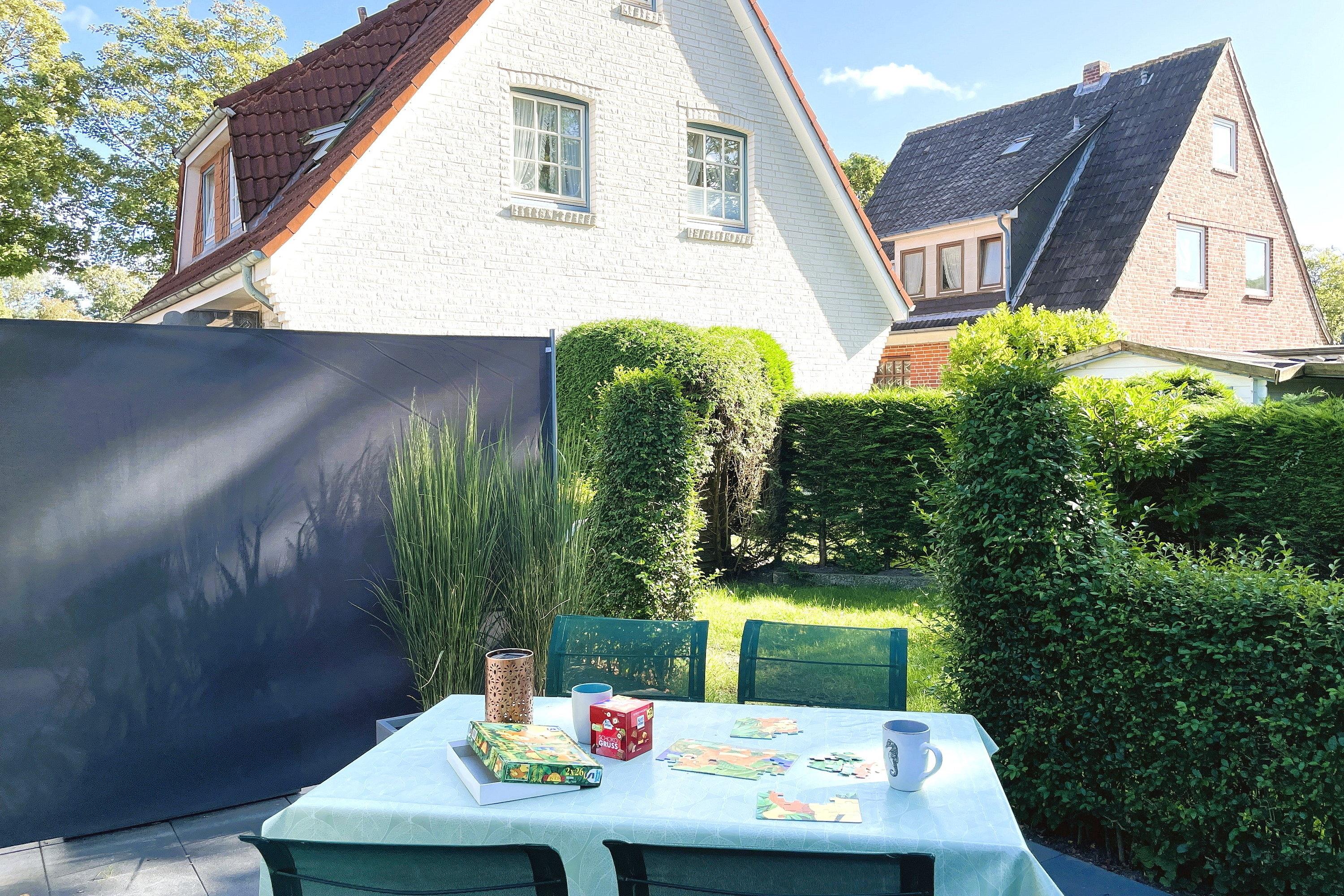 Im Halligweg 14a befindet sich in ruhiger Lage dieses schöne Ferienhaus mit zwei Wohnungen für je 4 bis 5 Personen (davon ein Kind, dass maximal 12 Jahre ist). Hier können Sie herrliche Urlaubstage verbringen. Das Friesenmuseum und das Aqua Föhr, unser Meerwasserwellenbad mit Fitnessstudio und Sauna sowie verschiedenen Angeboten von Kuranwendungen sind in unmittelbarer Nähe ebenso das Wäldchen mit dem Abenteuerspielplatz Löwenhöhle, der bei Kindern besonders beliebt ist. Die Wyker Innenstadt erreichen Sie ebenfalls in wenigen Minuten. Das Ferienhaus Manuela bietet weiterhin eine Waschmaschine und einen Trockner (gegen Gebühr) zur gemeinschaftlichen Nutzung an sowie eine gemeinsame Nutzung eines Fahrradunterstellplatzes. Im Garten gibt es zwei kleine Terrassen, die durch einen Sichtschutz voneinander getrennt werden können (eine Zuordnung zu einer Wohnung gibt es nicht).