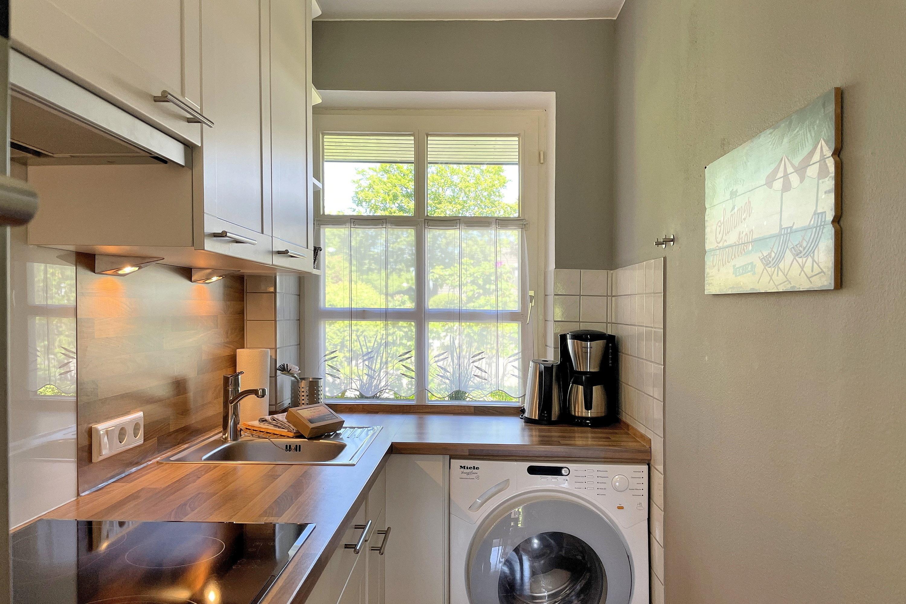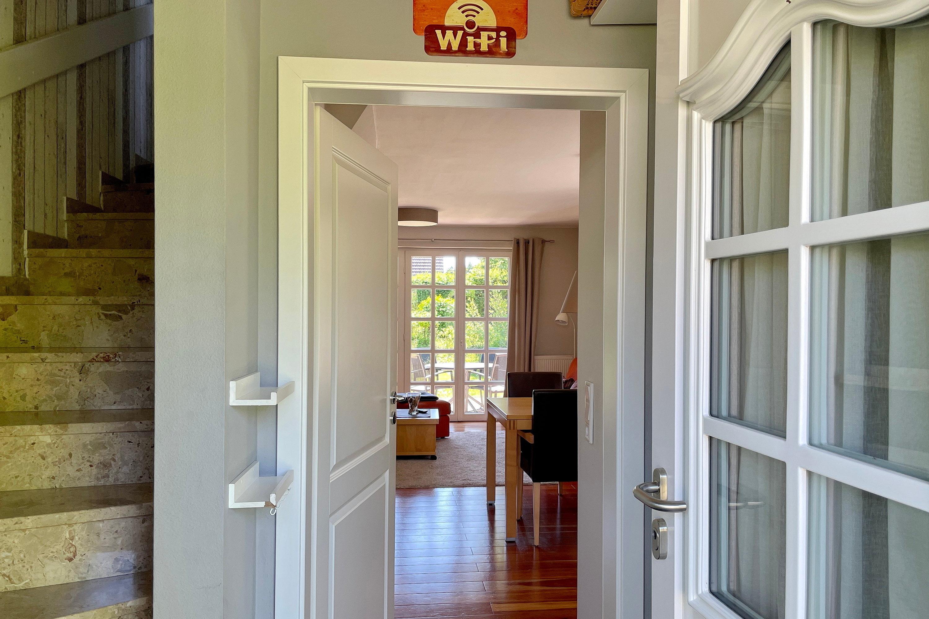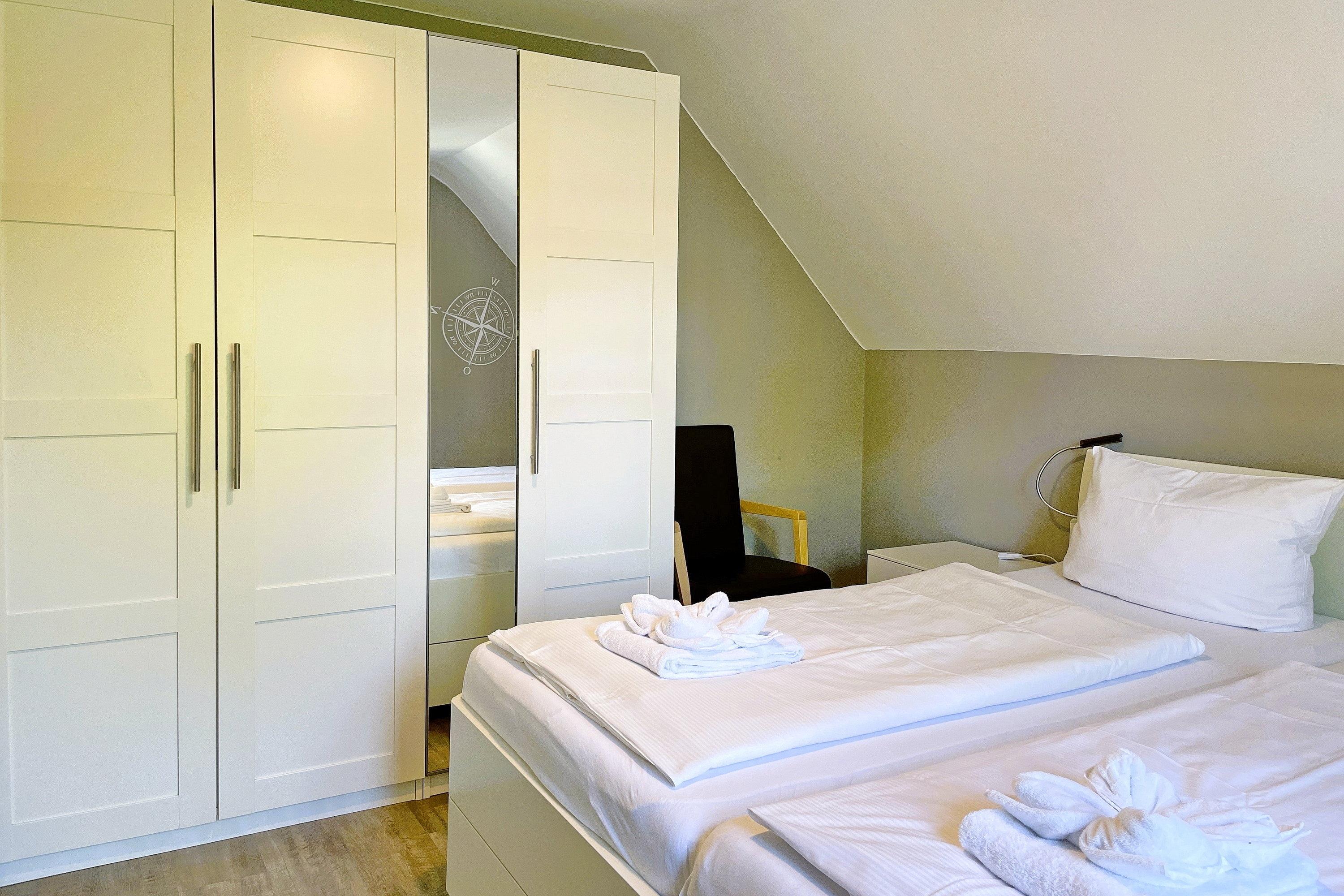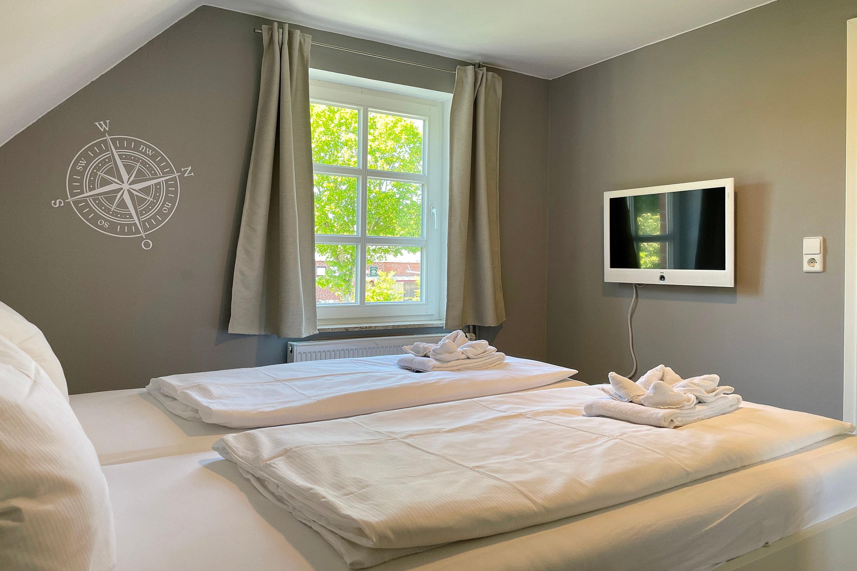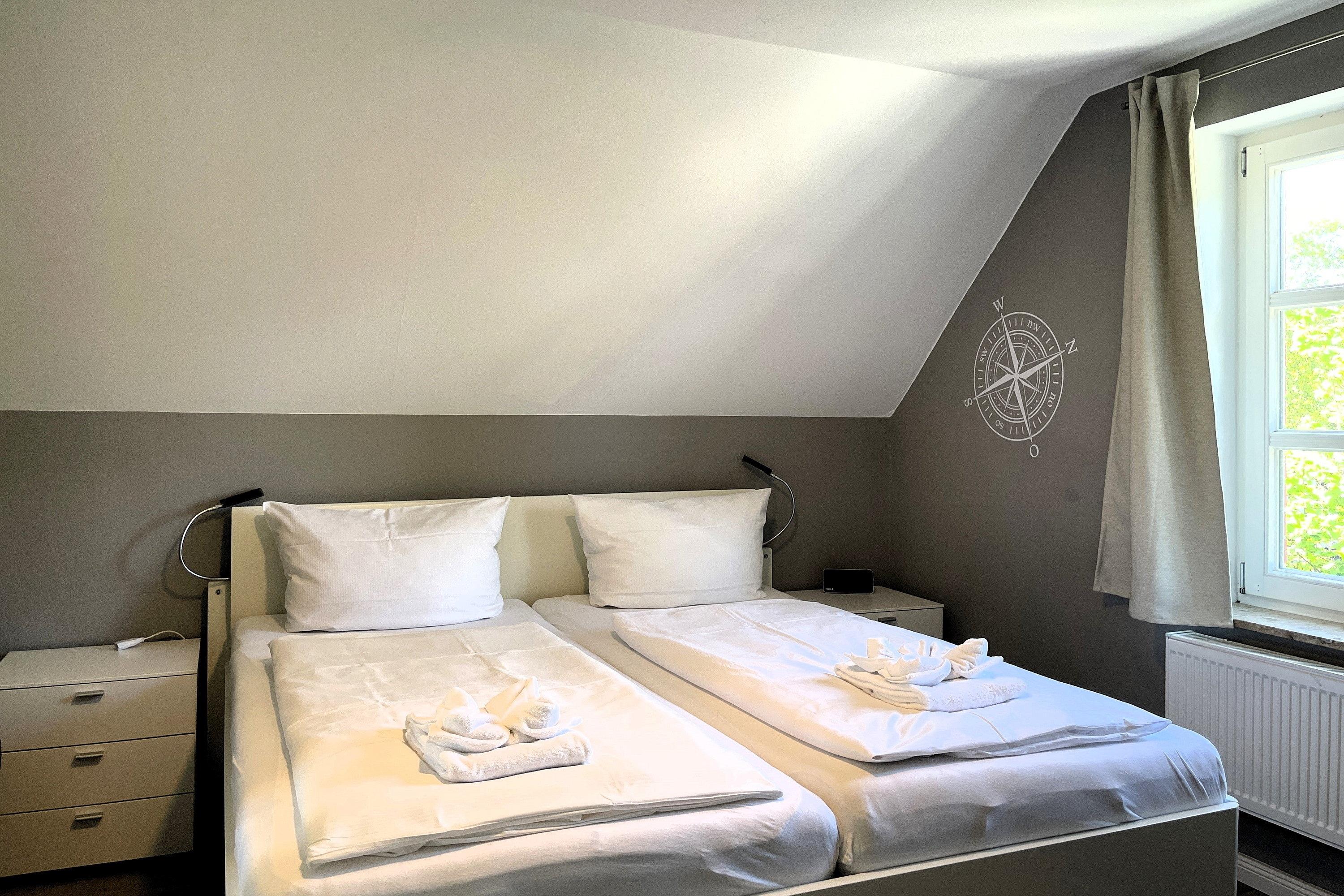 Herzlich willkommen in unserem Reihenendhaus "Meine Insel", Ihrem perfekten Rückzugsort für Paare und Familien. Auf ca. 60 qm bietet die Nichtraucher-Wohnung Platz für 1 bis 4 Gäste und besticht durch eine gemütliche Ausstattung mit Inselflair. Im Erdgeschoss erwartet Sie ein heller Wohnbereich mit integrierter Essecke sowie eine offene, gut ausgestattete Küche mit Backofen, Ceranherd, Spülmaschine und einer kostenfreien Waschmaschine – ideal für einen längeren Urlaub. Es stehen ein Flachbildfernseher (3 im gesamten Haus, davon 2 Smart-TVs) und ein Internetradio (mit Spotify-Connect) zur Verfügung. Vom Wohnzimmer gelangen Sie direkt auf die teilüberdachte Südwest-Terrasse, die in den Sommermonaten mit Gartenmöbeln, Sonnenschirm und Strandkorb zum Sonnen und Relaxen einlädt während Kinder sich im angrenzenden Gemeinschaftsgarten austoben und sich am Spielgerät mit Schaukel erfreuen können. Über eine Treppe erreichen Sie die Schlafbereiche und das Bad. Das Elternschlafzimmer ist mit einem komfortablen Doppelbett (180 cm x 200 cm mit 2 Einzelmatratzen) ausgestattet, während das Kinderreich mit zwei Einzelbetten (90 cm x 200 cm) , einer Auswahl an Gesellschaftsspielen und Büchern sowie eine Spielkiste (Lego/Playmobil) kleine Gäste begeistert. Hier befindet sich auch ein gemütliches Tagesbett für eine kleine Auszeit. Das moderne Badezimmer verfügt über eine Dusche, einen Handtuchheizkörper und ein Fenster, das für Tageslicht und Frischluft sorgt. Ihr Auto können Sie direkt auf dem eigenen Parkplatz abstellen.