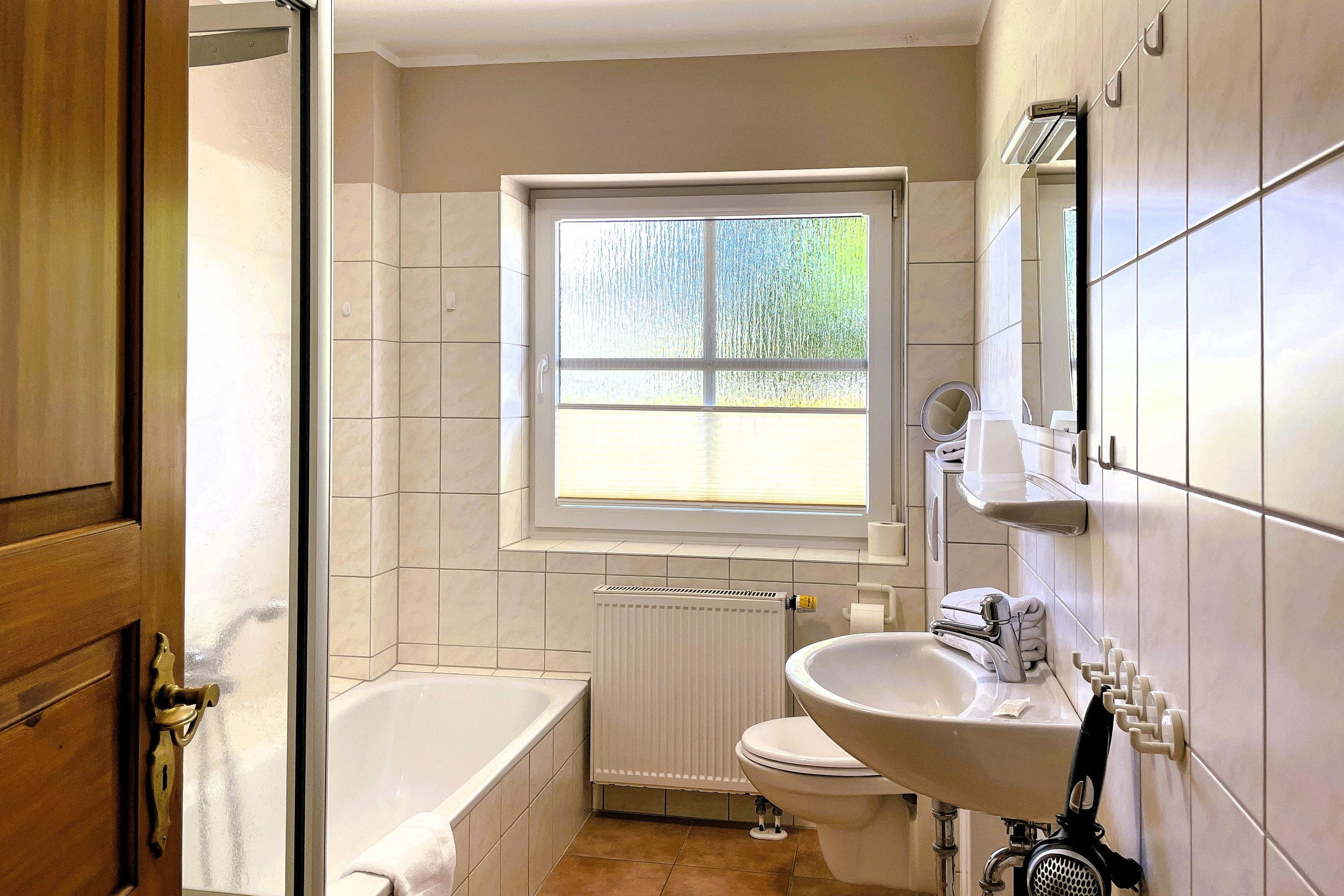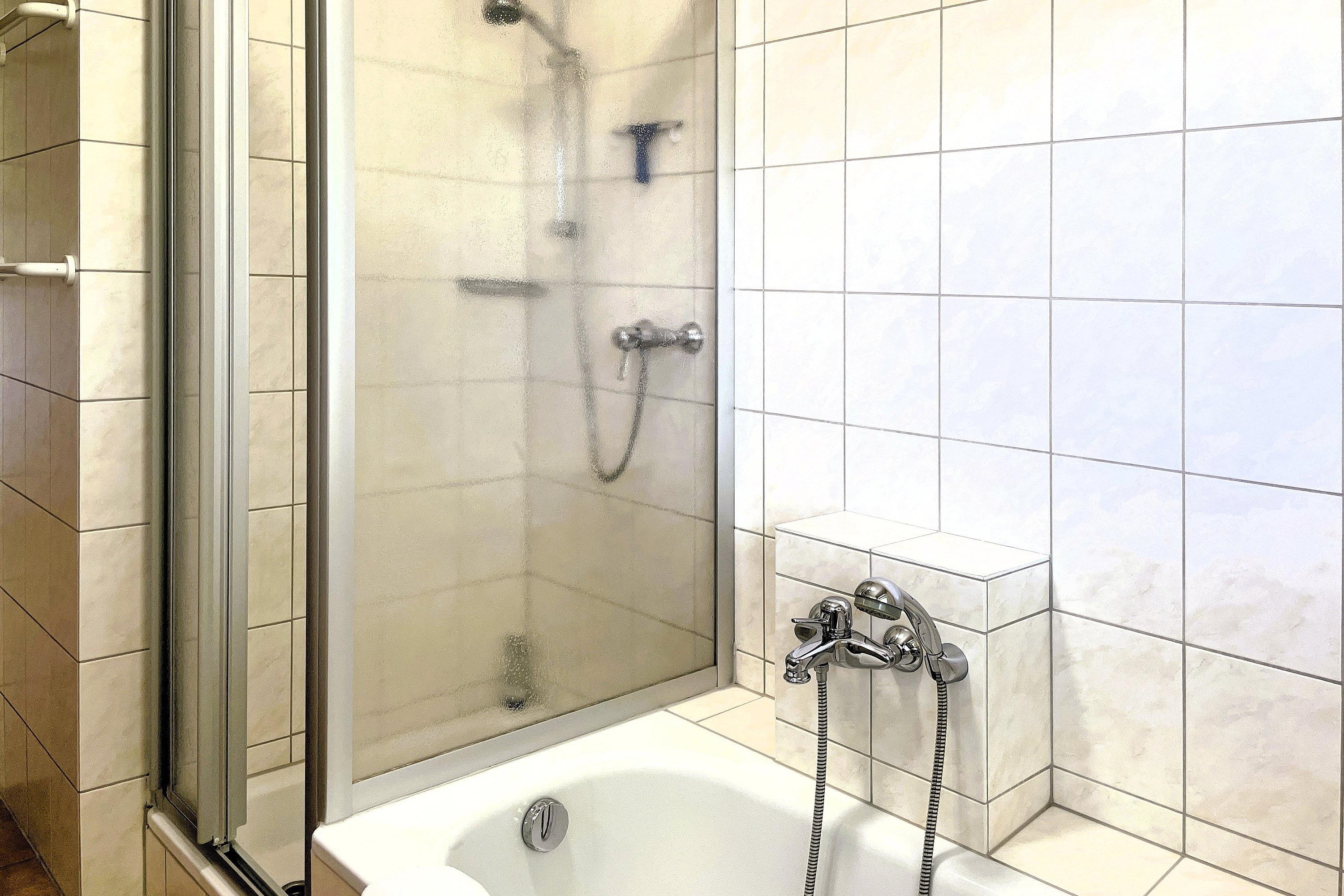 Badeværelse med bruser og badekar