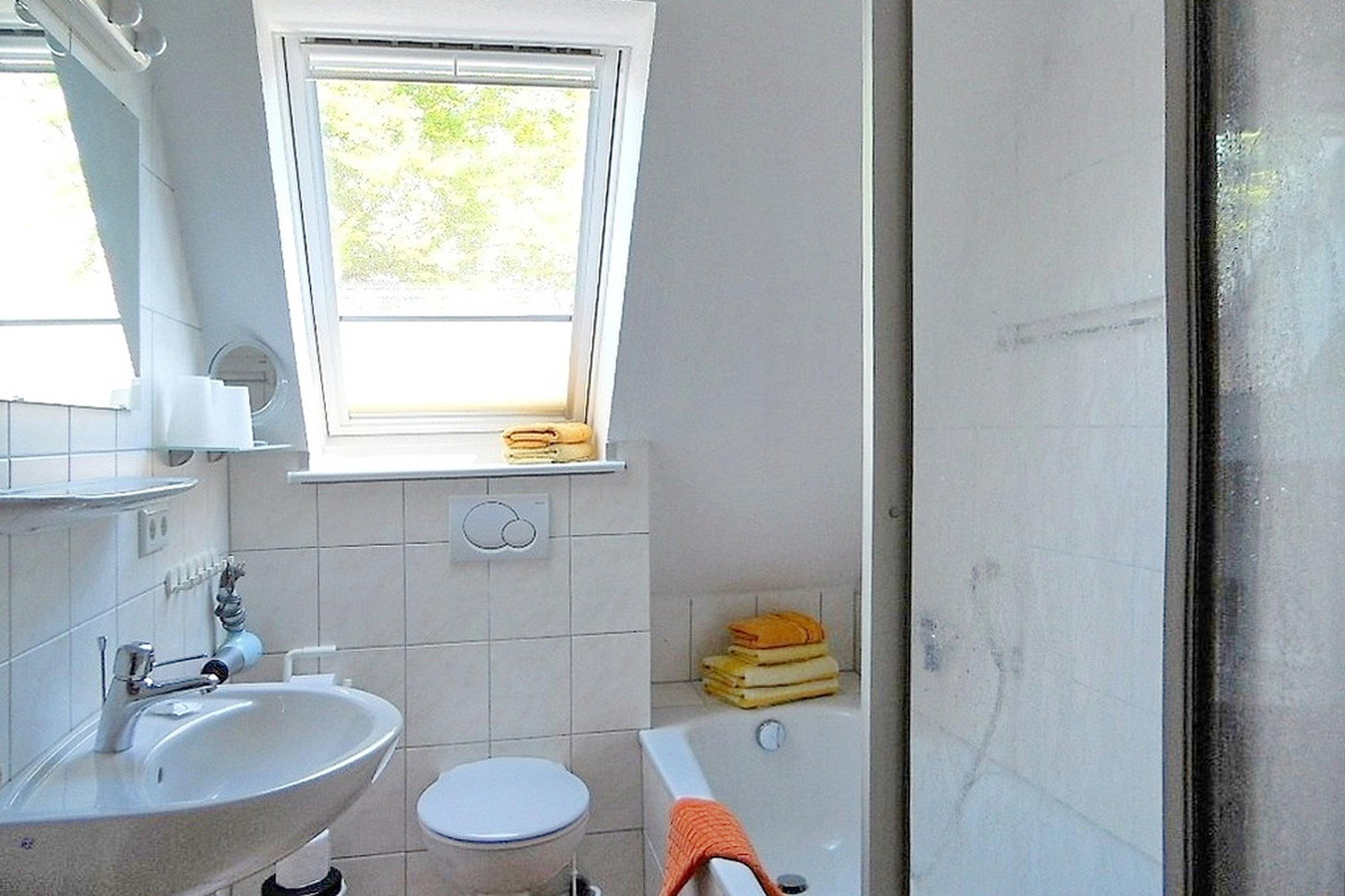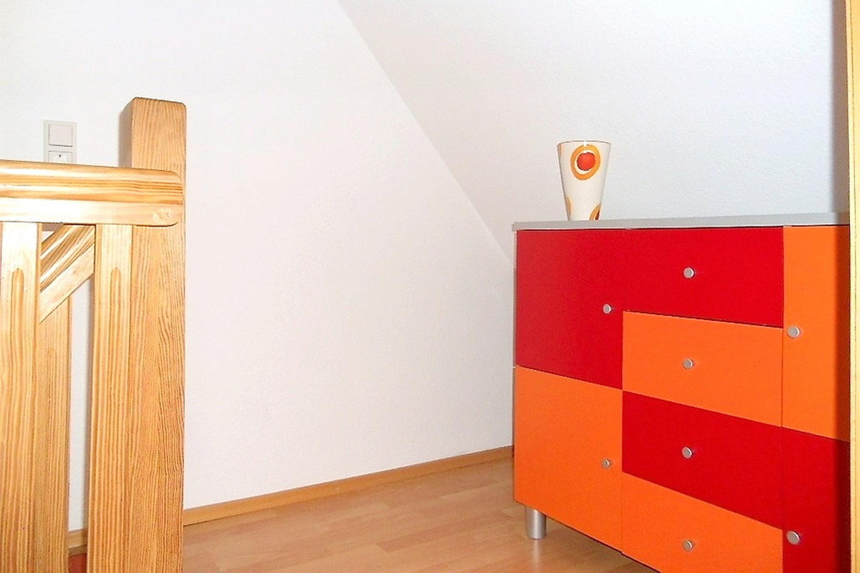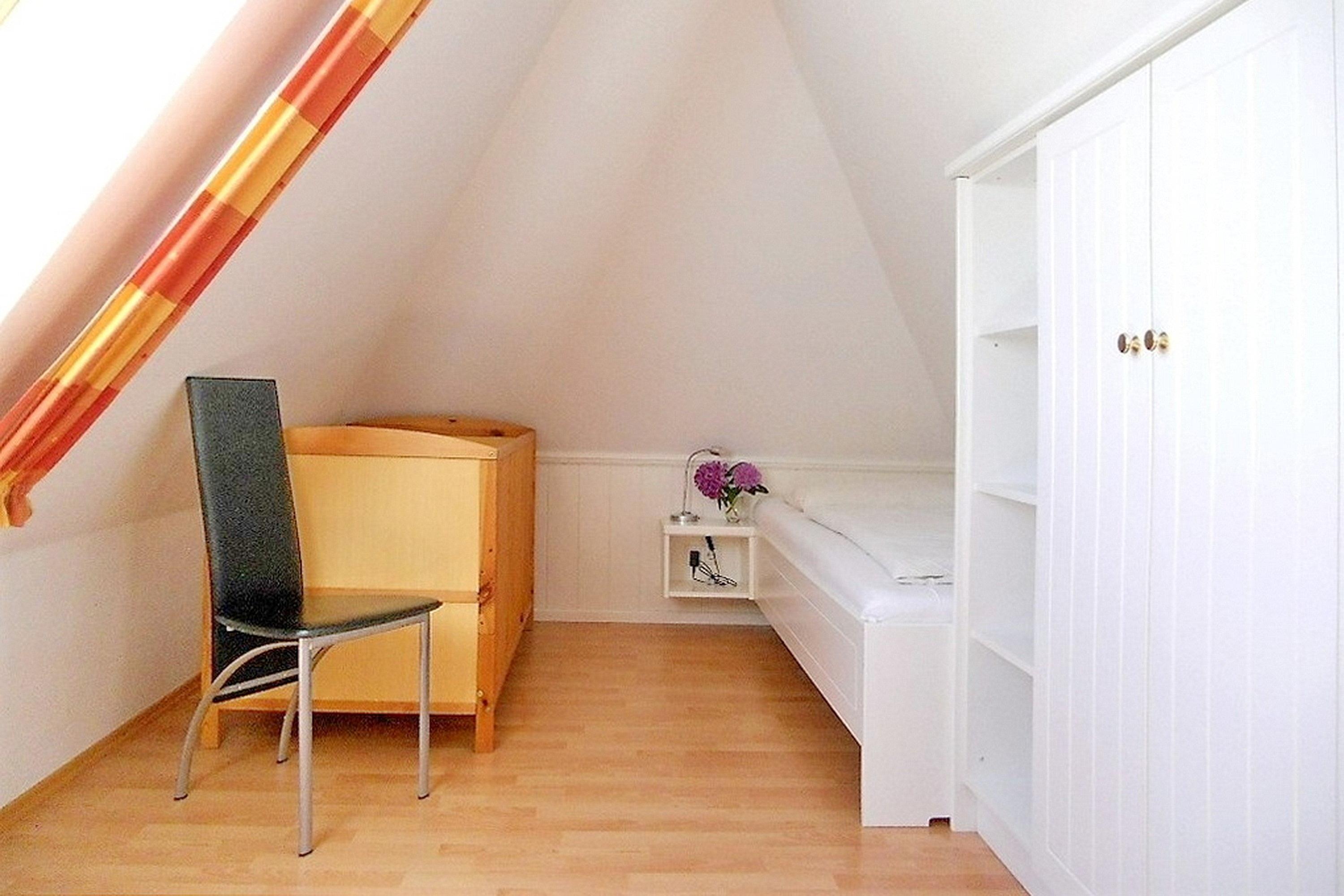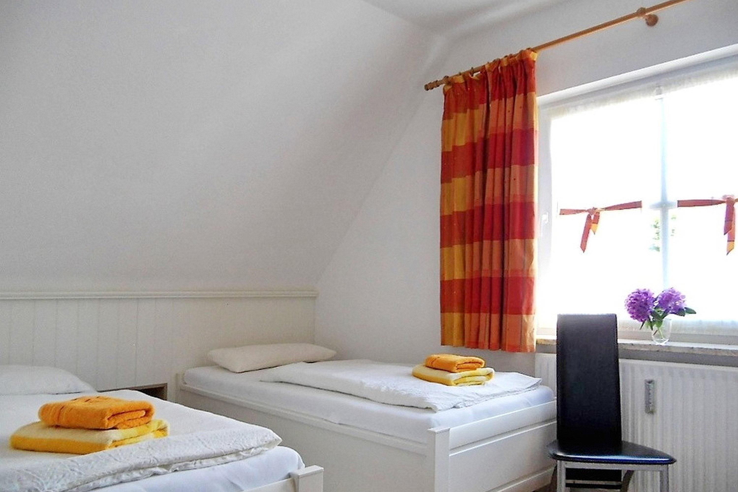 Mitten in Wyk liegt in ruhiger Lage unser Domizil Rugstieg 8 mit 4 Ferienwohnungen für 2 bis 5 Gäste. Die Wohnungen sind allergiker- und kinderfreundlich eingerichtet. Die Wohnung 3 befindet sich im 1. Obergeschoss des Hauses und wirkt sehr einladend. Der lichtdurchflutete Wohnraum mit integriertem Essbereich und der angrenzenden sehr gut ausgestatteten Küche ist geschmackvoll eingerichtet und verfügt über WLAN, Telefon mit Flat ins dt. Festnetz, Flachbild-TV, Blueray-Player und Stereoanlage. Von hier gelangen Sie auf den herrlichen Balkon und können die Ruhe mit Blick auf den Garten und des nahe gelegenen Waldes genießen. Im ersten Obergeschoss befindet sich des Weiteren ein Schlafzimmer mit 2 Einzelbetten und Kleiderschrank und ein Badezimmer mit Badewanne und separater Dusche. Über eine Treppe gelangen Sie in das zweite Obergeschoss mit einem Schlafzimmer mit Doppelbett. Von diesem Zimmer gelangen Sie in das Kinderzimmer mit einem Einzelbett und einem Kinderbettchen. Alle Schlafzimmerfenster lassen sich extra verdunkeln und sorgen für ruhige und entspannte Nächte. Die Eigentümer haben diese Wohnung mit liebevollen Accessoires und harmonisch aufeinander abgestimmten Möbeln zu einem sehr schönen Urlaubsdomizil gemacht. Im Untergeschoss des Hauses befindet sich eine Sauna mit einigen Fitnessgeräten sowie Waschmaschine und Trockner zur gemeinsamen kostenfreien Nutzung. Das gepflegte Haus mit dem idyllischen Garten liegt nah am Stadtwäldchen mit dem Abenteurespielplatz Löwenhöhle entfernt und lädt somit Jung und Alt zum Spazierengehen und Verweilen ein. In ca. 10 Gehminuten erreichen Sie den Strand und das Meer sowie die Fußgängerzone mit zahlreichen Cafés, kleinen Geschäften und Restaurants.