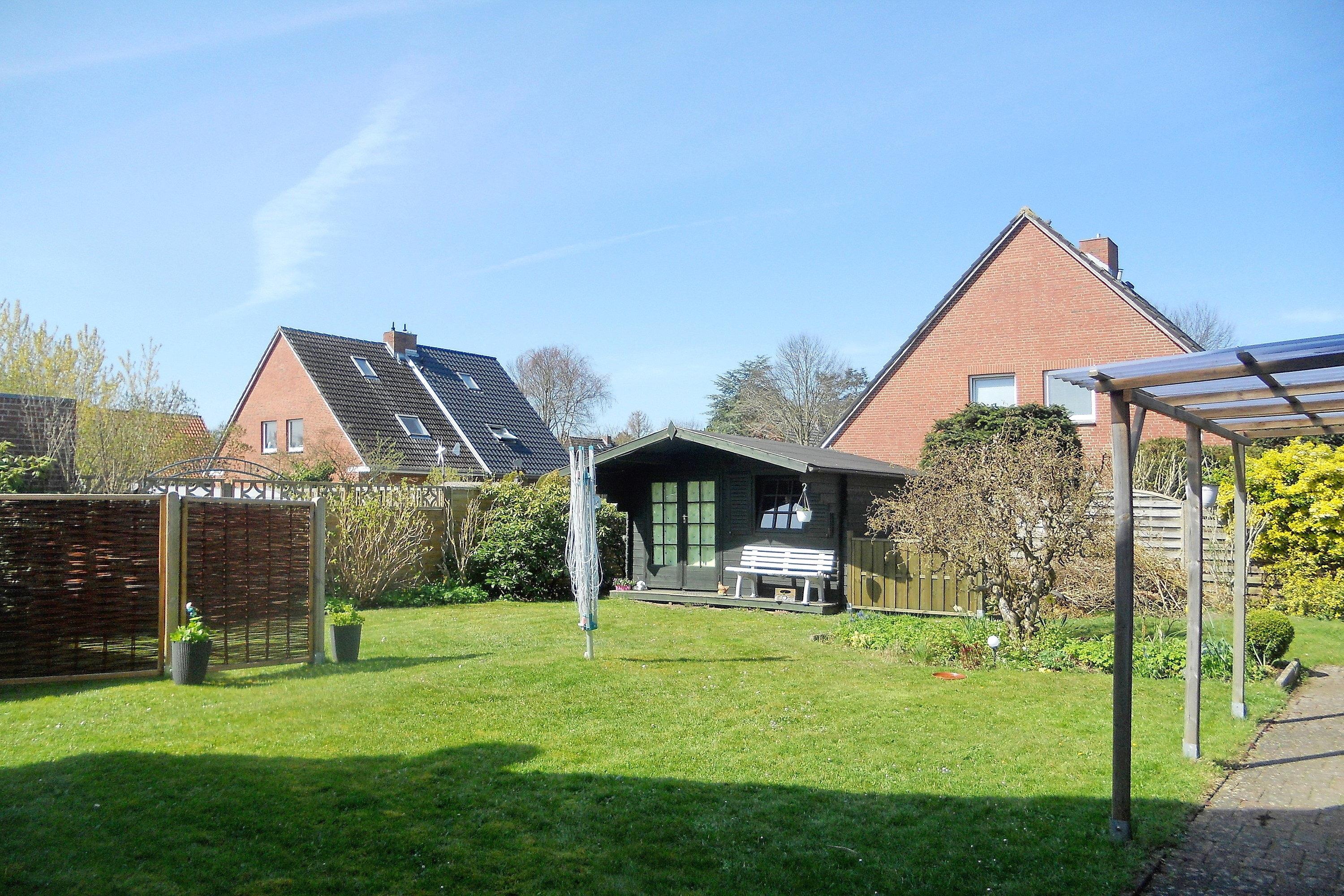 Zur Wohnung Sonnenblick gehört im gemeinschaftlich nutzbarem Garten ein eigener Freisitz mit Gartenmöbel. Unter einer kleinen Überdachung können die Räder abgestellt werden und Ihre Strandtücher auf einer Leine für den nächsten Tag zum Trocknen aufgehängt werden. Einen eigenen Parkplatz gibt es nicht, doch an der Straße bieten sich in der Regel genügend Parkmöglichkeiten.
