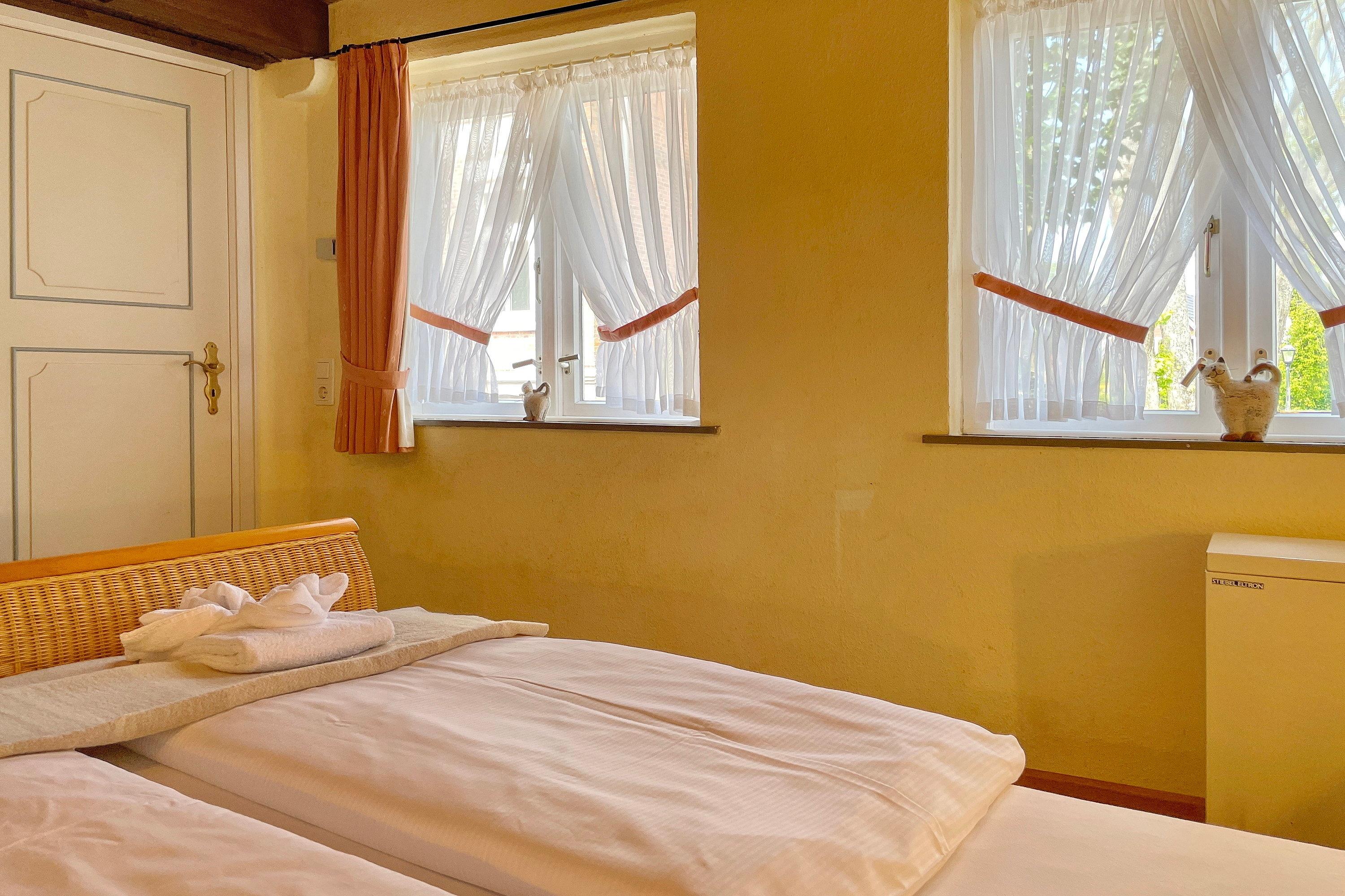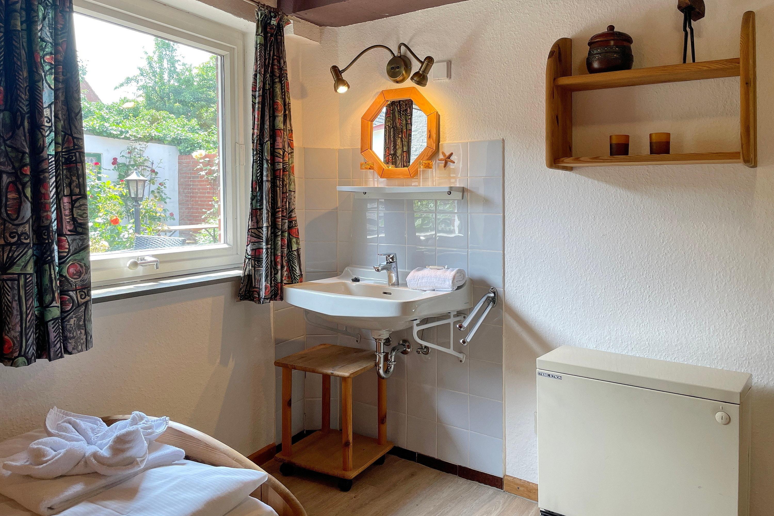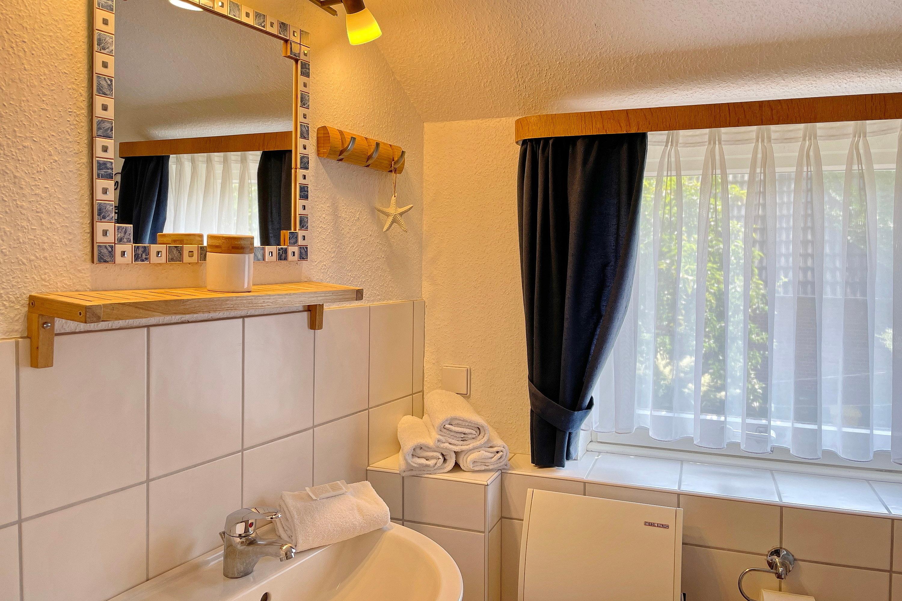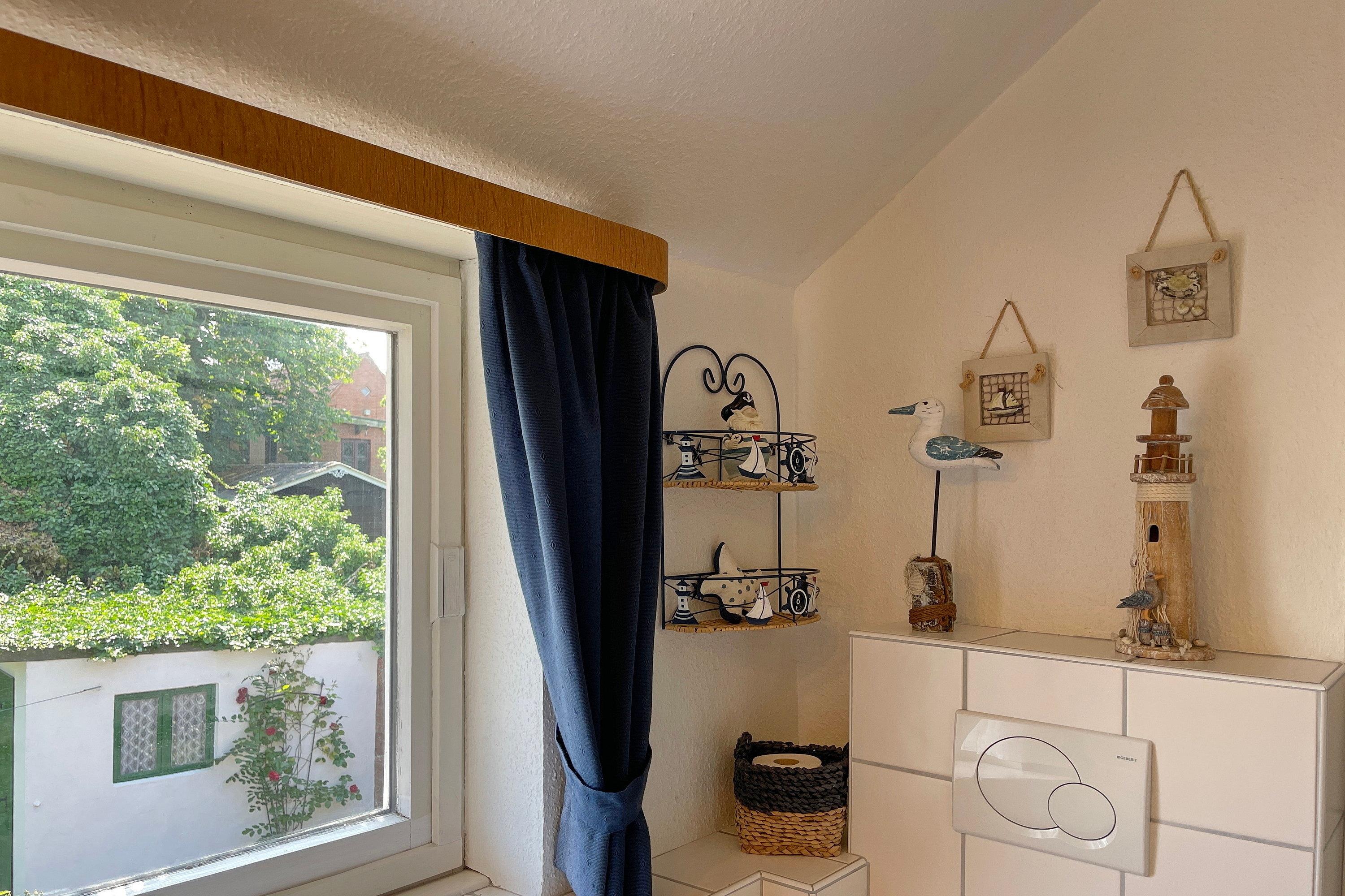 In der Hafenstaße im Herzen von Wyk liegt das gemütliche Haus Stamp, nur wenige Minuten vom Strand und vom Hafen entfernt. Alle wichtigen Versorgungseinrichtungen wie Bäckereien und Supermärkte befinden sich in unmittelbarer Umgebung, ebenso wie die Fußgängerzone und die Strandpromenade mit Boutiquen, Cafés, Kino, Restaurants und vielem mehr! Das Domizil Stamp ist ein reetgedecktes Friesenhaus für 6 Personen und heißt Sie mit seinem friesischen Charme Willkommen. Erleben Sie die friesische Gemütlichkeit und Gastfreundschaft in Ihrem Domizil. Im Erdgeschoss befinden sich 2 Schlafräume, eines mit Doppelbett (140 x 200 cm), das andere mit 2 Einzelbetten (80 x200 cm) und einem zusätzlichem Waschbecken. Das gemütliche Wohnzimmer mit WLAN, Musikanlage und Flachbild-TV lädt zum Entspannen ein und wirkt behaglich. Die Wohnküche mit Essplatz, Geschirrspüler, Backofen, Mikrowelle, Kaffeemaschine und vielem mehr führt Sie auf die Terrasse und den Garten, wo Sie herrliche Sonnenstunden im Sommer verbringen können. Eine kleine Besonderheit stellt die altfriesische Durchreiche ins Wohnzimmer dar. Auf beiden Etagen befindet sich ein Duschbad, das funktional und liebevoll gestaltet wurde. Das dritte Schlafzimmer mit einem Doppelbett (180 x 200cm) und einem zusätzlichem Kojenbett (80 x 180 cm) erreichen Sie über die Treppe, die zum ersten Obergeschoss führt. Hier gibt es weiterhin einen zusätzlichen Wohnraum mit einem weiteren Kojenbett (80x180cm), der sich hervorragend eignet, wenn Sie sich einmal zurückziehen möchten.