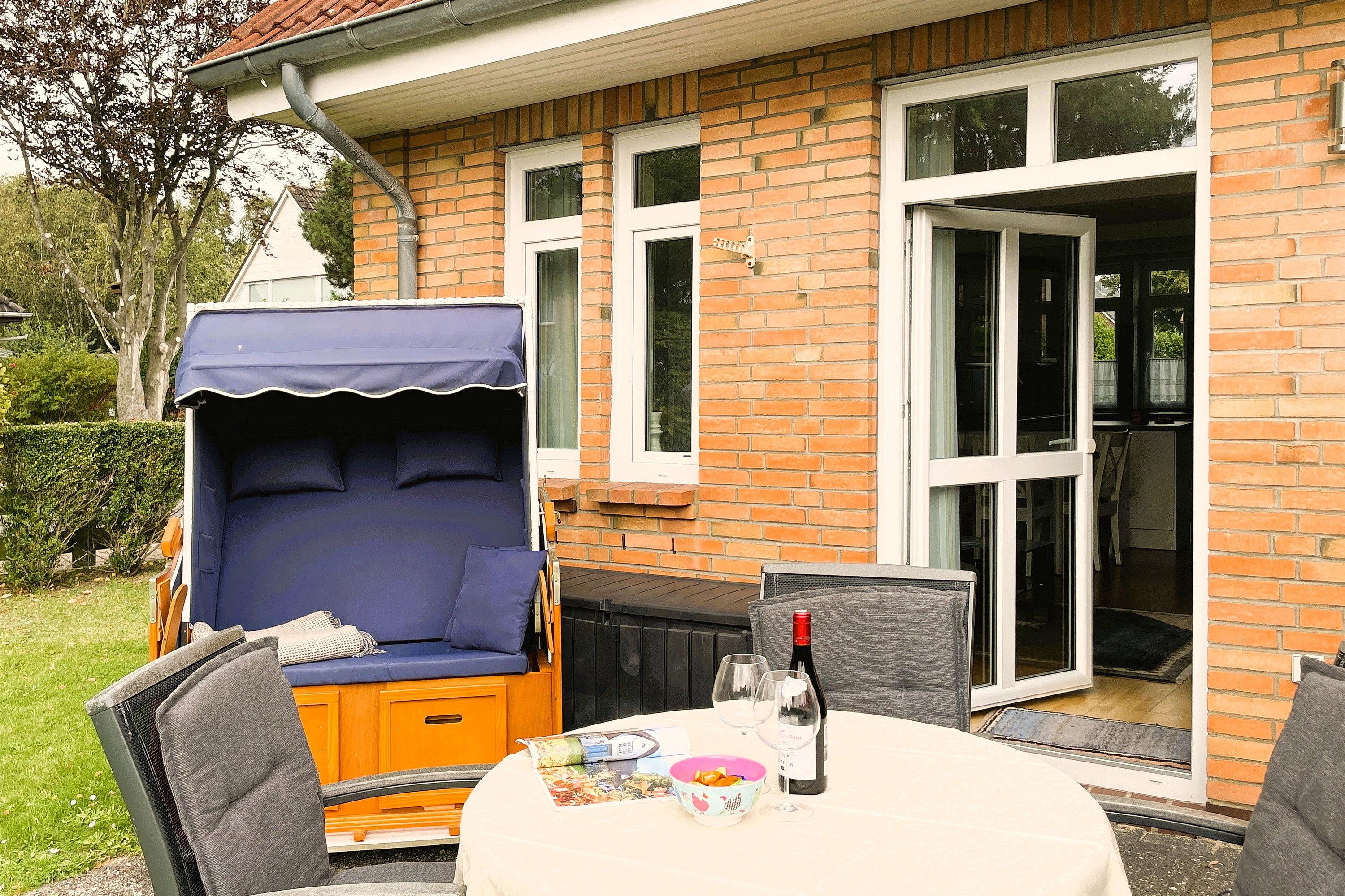 In der Helgoländer Straße 9 befindet sich in ruhiger Lage unweit des Wyker Stadtwaldes mit dem Abenteuerspielplatz Löwenhöhle das Haus Stünkel mit seinen 2 Haushälften. Beide Domizile sind jeweils für bis zu 6 Personen ausgerichtet und hochwertig ausgestattet. Der Carport befindet sich direkt vor dem Haus und die Terrassen mit Gartenmöbeln und Strandkorb (von ca. April bis Oktober) befinden sich auf der Rückseite des Hauses und sind jeweils vom Wohnraum aus zu betreten. Der gemeinschaftliche Garten ist eingezäunt, so dass Sie Ihre Kinder unbesorgt draußen spielen lassen können. Es fehlt an Nichts und kurze Wege zum Strand, Abenteuerspielplatz und Einkauf runden dieses schöne Objekt ab. In unserer allergikerfreundlichen Haushälfte Stünkel rechts (ca.92 m) können Sie herrliche Urlaubstage verbringen. Das Haus wurde für sechs Personen konzipiert. Beim Bau wurde auf ökologische Kriterien besonders geachtet, Holz, Kork und Marmor bilden den Fußbodenbelag. Das helle Erdgeschoss unterteilt sich in einer vollausgestatteten Küche mit Ceranfeldherd, Backofen, Geschirrspüler und vielem mehr. Hier angrenzend befindet sich die gemütliche Essgruppe und dem hübschen Wohnraum mit WLAN, Flachbild-TV, Blueray- Player und Kamin. Von hier gelangen Sie auf die schöne, gepflegte Südterasse mit Gartenmöbeln und Strandkorb ( ca. von April bis Oktober) und gemeinschaftlichem Garten. Des Weiteren befindet sich im Erdgeschoss ein hellgefliestes Duschbad. Über eine breite Treppe gelangen Sie in das Obergeschoss mit einem Badezimmer mit Dusche, einer Waschmaschine sowie einem Trockner, die Ihnen zur kostenfreien Nutzung zur Verfügung stehen. Hier befinden sich 3 Schlafräume, die für erholsame Nächte sorgen. Eines ist mit einem Doppelbett (180x200 cm) und Kleiderschrank ausgestattet und das zweite verfügt über zwei Einzelbetten (90x200cm) und Kleiderschrank. Der dritte Schlafraum mit Kleiderschrank und Etagenbett (90x190cm) besitzt zusätzlich einen Schreibtisch. Das Haus eignet sich hervorragend für Familien!