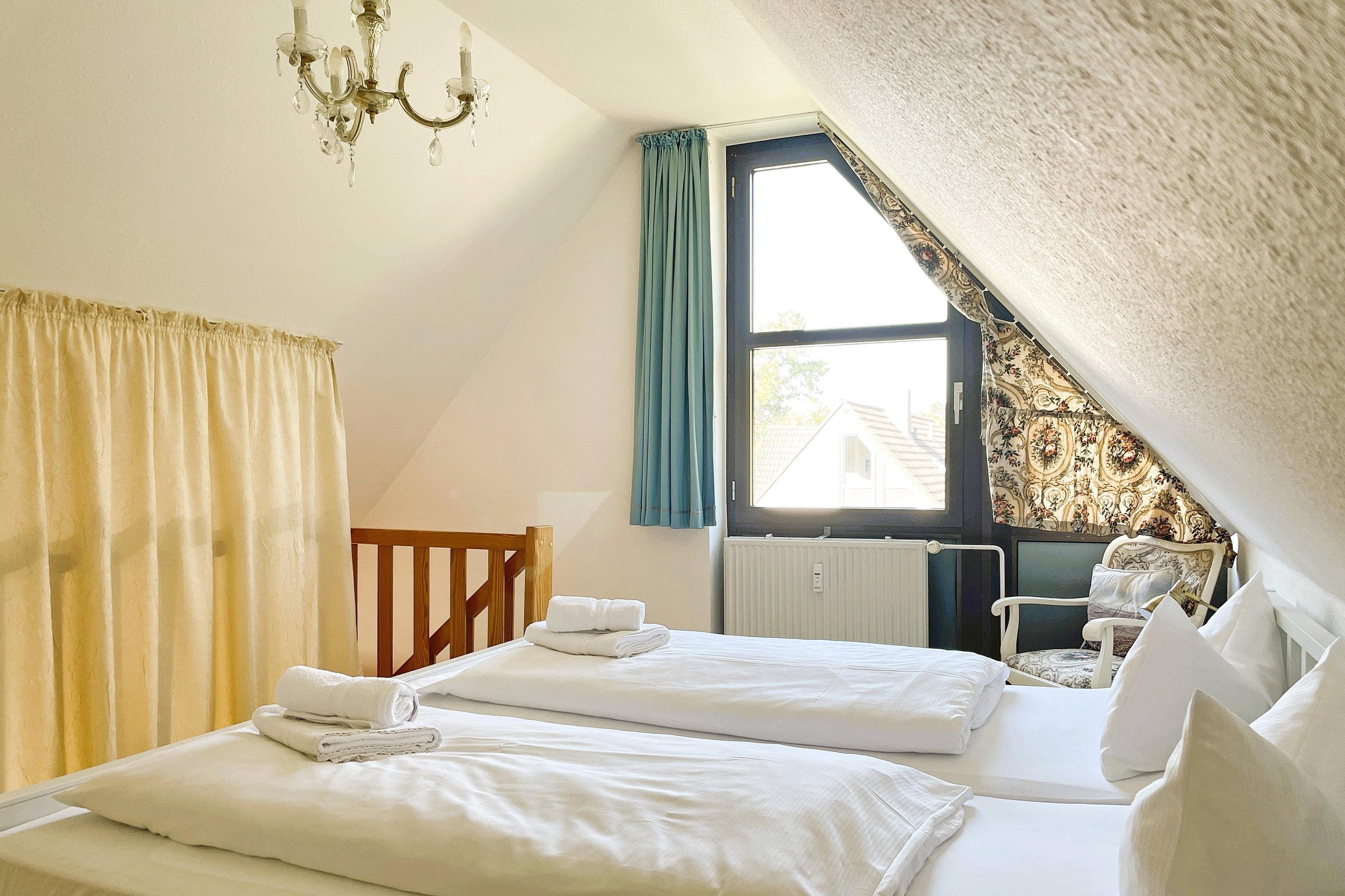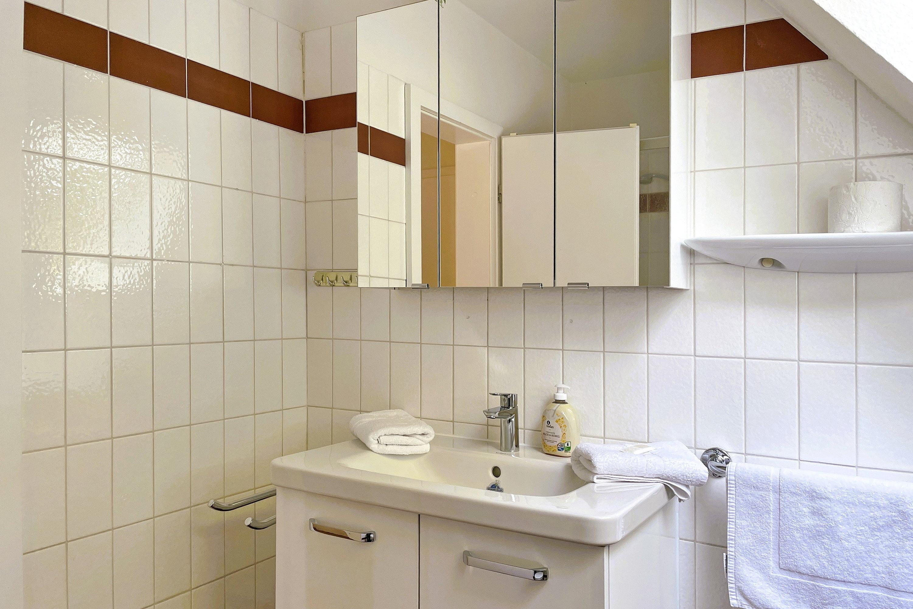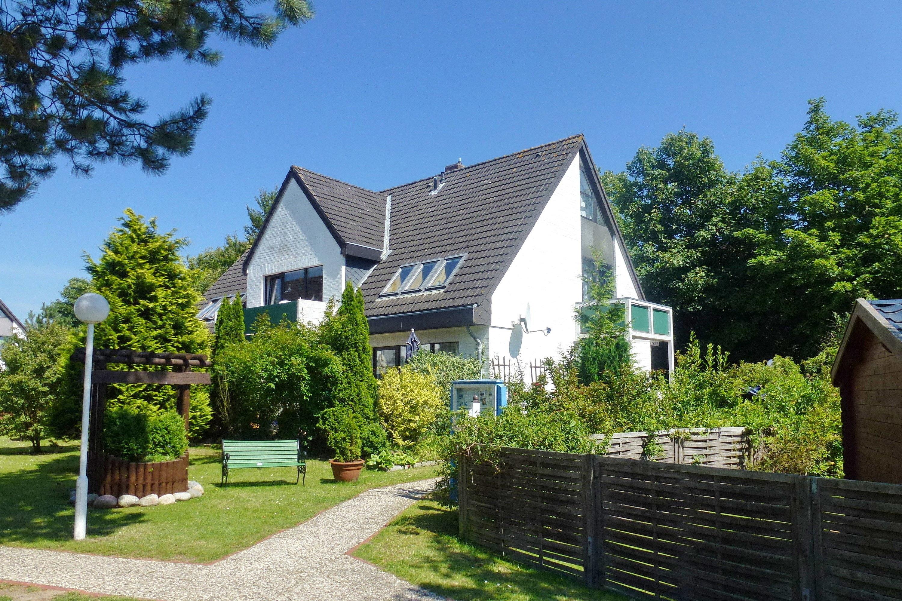 In der Gmelinstraße direkt am Südstrand befindet sich die gepflegte Ferienwohnungsanlage Südstranddomizil nur wenige Schritte vom Nordsee-Kurpark entfernt. Unsere Wohnung Südstranddomizil (60 qm) liegt im ersten Obergeschoss des Hauses und eignet sich für bis zu 4 Personen. Vom Flur aus gelangen Sie in das erste Schlafzimmer mit zwei Einzelbetten und Kleiderschrank, das hellgeflieste Bad mit Fenster und Badewanne sowie in das Wohnzimmer. Der lichtdurchflutete Wohnbereich mit offener Balkenlage, gemütlicher Essecke und einladender Couchgarnitur mit Radio, WLAN und Flachbild-TV lädt zum Verweilen ein. Im Wohnzimmer integriert befindet sich auch die gut ausgestattete Küchenzeile mit Ceranfeldherd und Backofen, Mikrowelle, Kühlschrank, Geschirrspüler, Kaffeemaschine und Wasserkocher. Von hier gelangen Sie auf den Balkon, der zum Sonnenbaden einlädt. Über dem Wohnbereich befindet sich eine offene Schlafgalerie mit einem Doppelbett. Wählen Sie selbst, ob Sie den Vorhang vor dem Gelände zuziehen möchten (siehe Fotos). Gerade bei jungen Familien ist die Anlage sehr beliebt, da die Häuser nachhinten versetzt zur Straße angeordnet sind und sich zwischen der Wohnanlage und der Straße noch der Parkplatz erstreckt. Der gemeinschaftlich nutzbare Außenbereich bietet die Möglichkeit Fahrräder abzustellen und Kinder können sich auf der Wiese unbeschwert austoben. Ein Bäcker, Restaurants wie die Schlemmerkate, der Chinese oder das beliebte Pfannkuchenhaus, ein Lebensmittelladen, die Bushaltestelle und natürlich der schöne Südstrand und das Meer sind fußläufig erreichbar, wobei Sie doch ein wenig Abseits des trubeligen Zentrums Ihren Urlaub genießen können. Waschmaschine und Trockner stehen im Keller gegen eine geringe Gebühr zur gemeinschaftlichen Nutzung zur Verfügung.