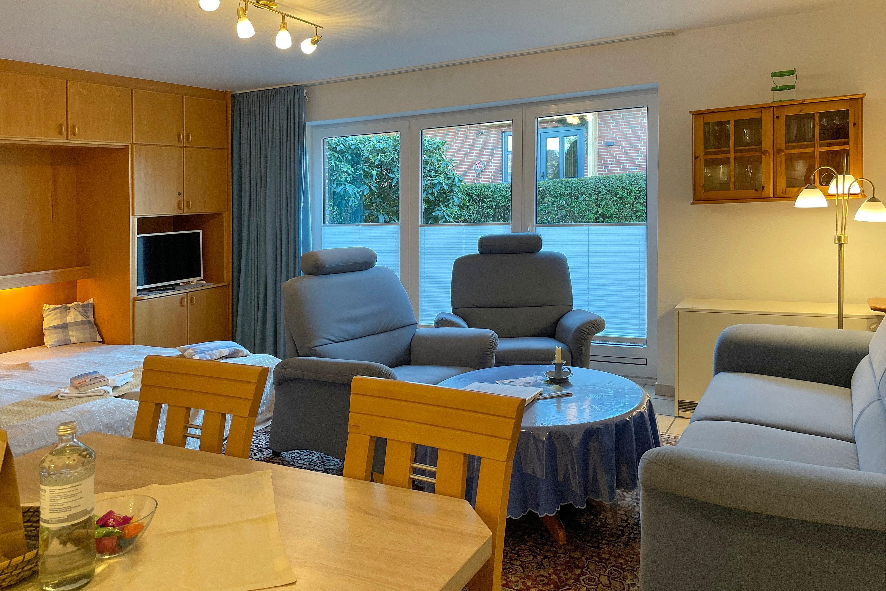 In zentrale und ruhiger Lage befindet sich die Anlage Gästehäuser Lindemann mit seinen 6 Ferienwohnungen auf einem 2000 qm großen und gepflegten Grundstück. Verbringen Sie Ihren Urlaub in einer der freundlich eingerichteten ca. 42 qm großen Ferienwohnungen, die alle sehr ähnlich eingerichtet sind und einen erholsamen Urlaub für 2 Personen anbieten. Das Wohnzimmer mit integrierter Essecke und Küchenzeile ist gemütlich eingerichtet und mit Flachbild-TV, Wlan und Telefon ausgestattet. Von hier aus gelangen Sie auf die Terrasse, die in den Sommermonaten mit Gartenmöbeln ausgestattet ist. Die neu eingebaute Küchenzeile mit Mikrowelle, Geschirrspüler, Ceranfeldherd und Kühlschrank mit Gefrierfach lädt zum Kochen ein. Weiterhin erreichen Sie über den Flur das Badezimmer mit Dusche, Fenster und Doppelwaschtisch sowie ein Schlafzimmer mit 2 Einzelbetten (90 x 200 cm) und Kleiderschrank. Das im Wohnzimmer befindliche Schrankbett (180 x200 cm) dient als Ausweichmöglichkeit, falls Sie getrennt schlafen möchten. Die Wohnungen eignen sich auch hervorragend für befreundete Pärchen, die zusammen Ihren Urlaub verbringen, doch gerne ein wenig Privatsphäre dabei haben möchten.