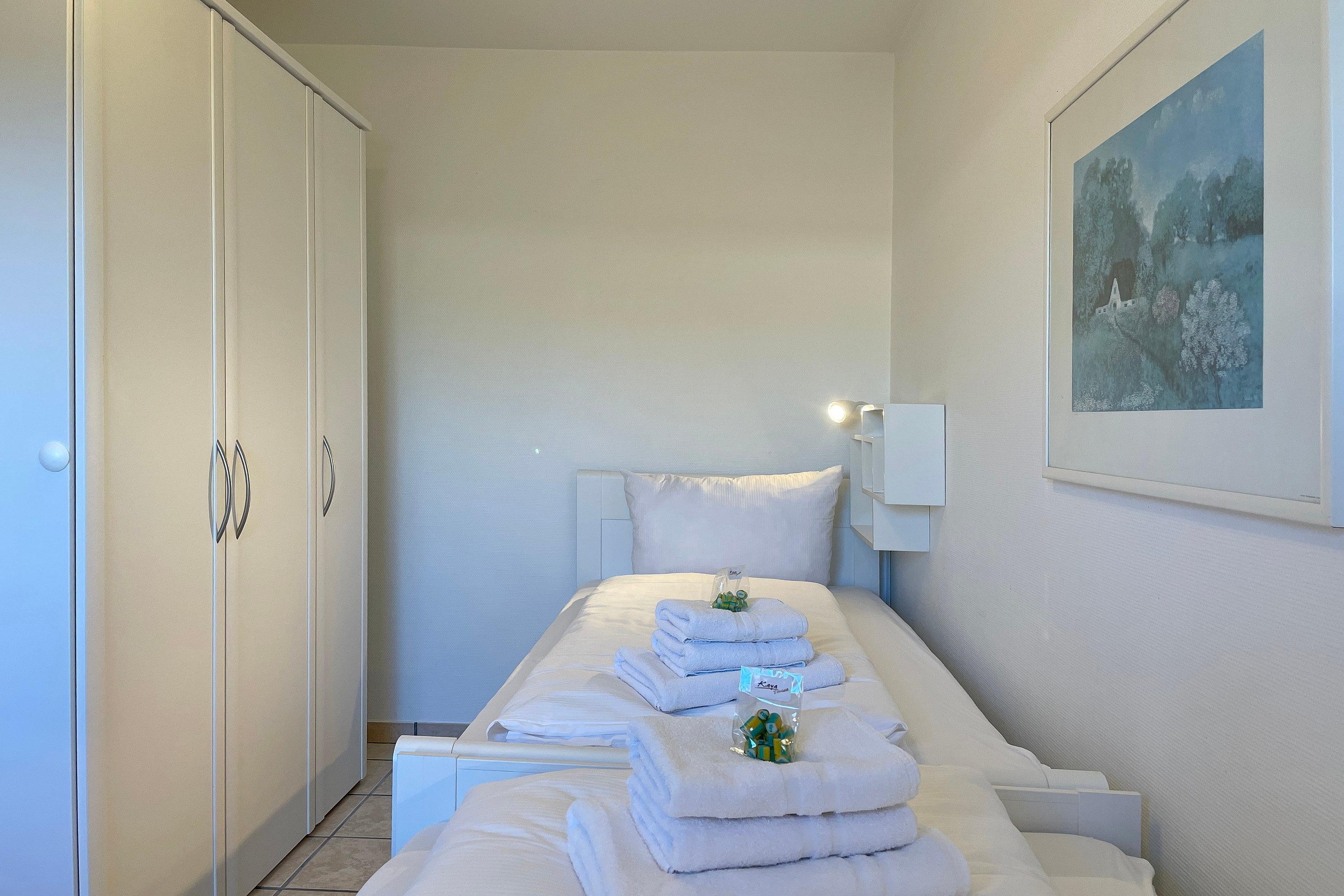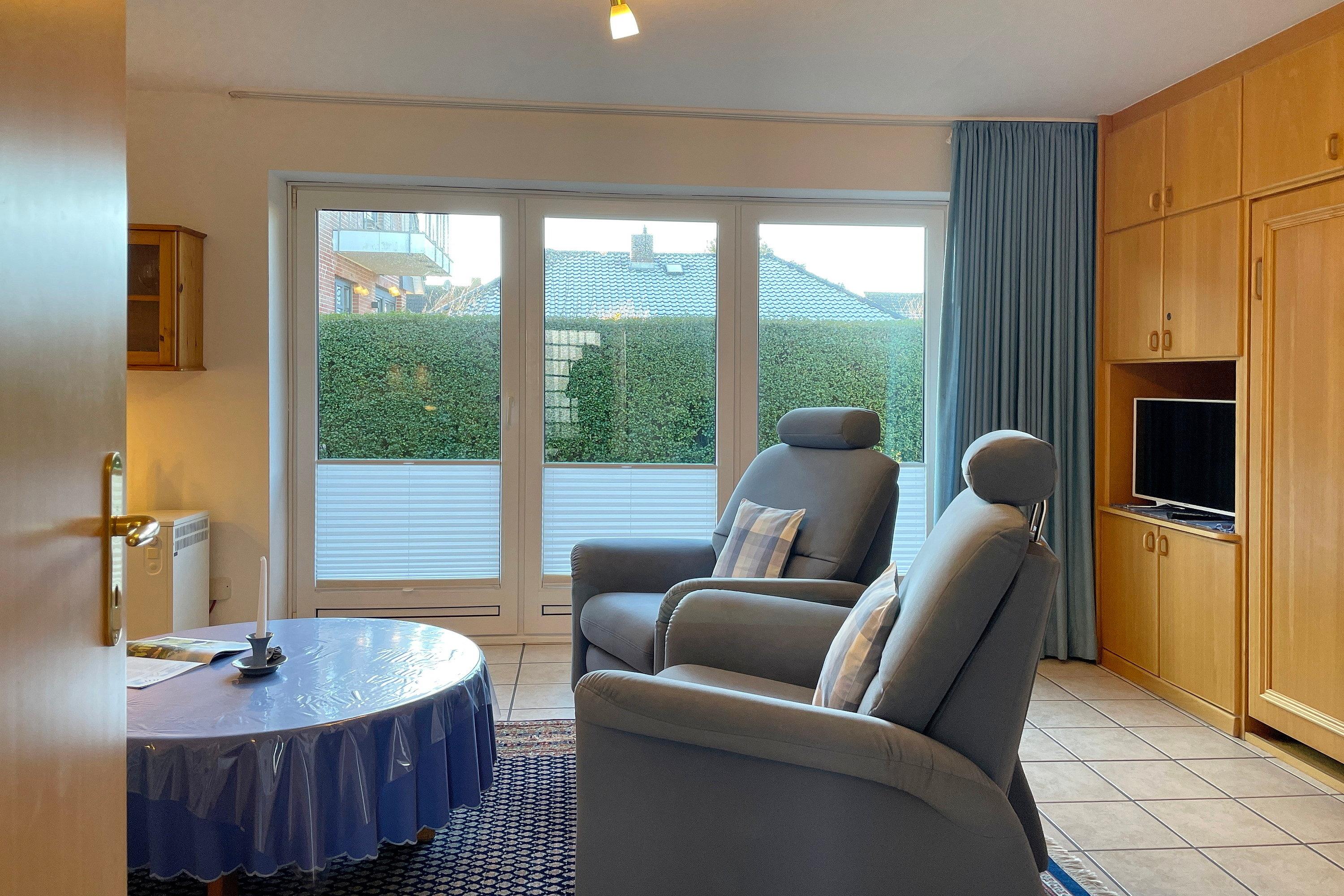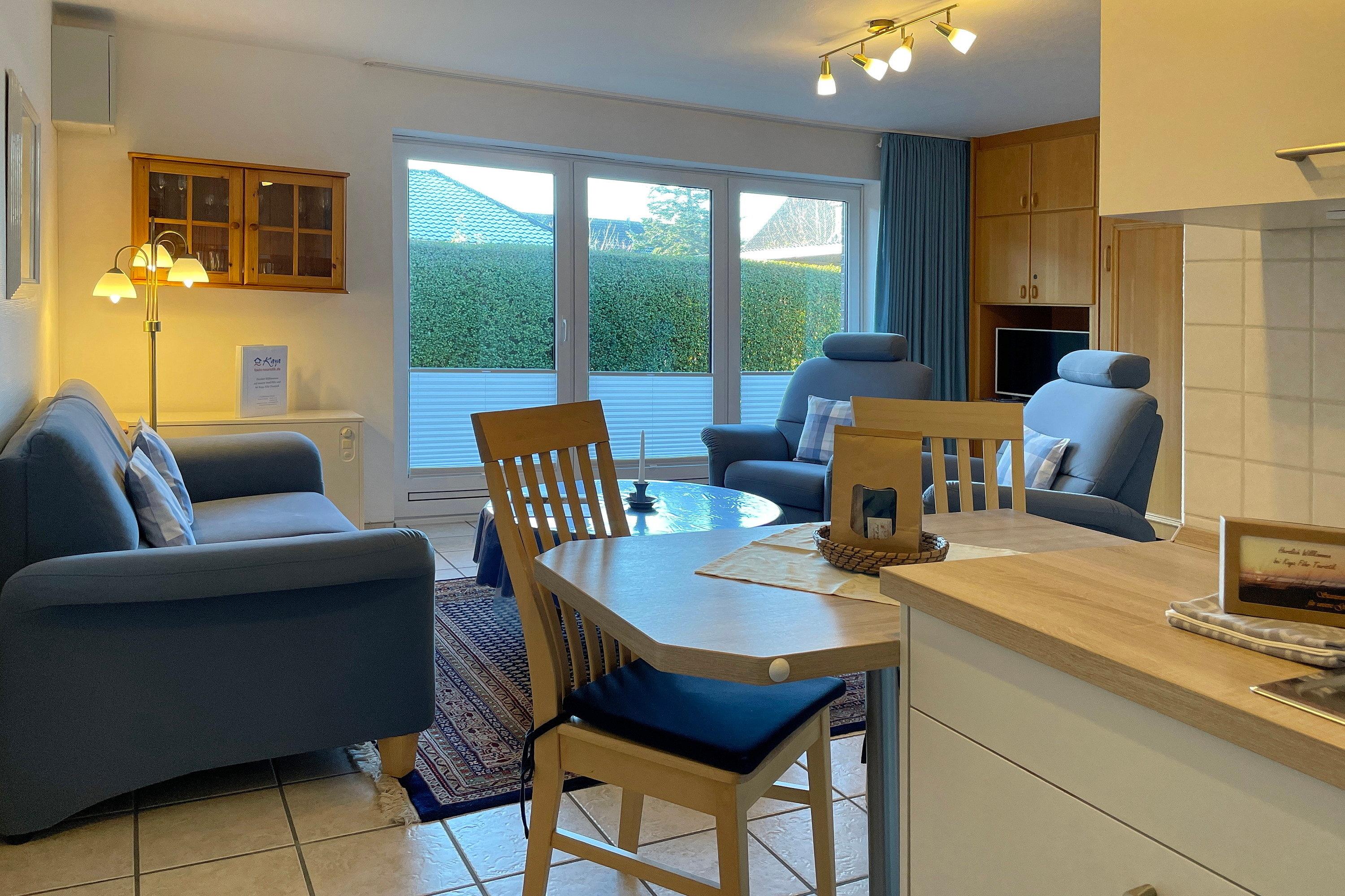 In zentrale und ruhiger Lage befindet sich die Anlage Gästehäuser Lindemann mit seinen 6 Ferienwohnungen auf einem 2000 qm großen und gepflegten Grundstück. Verbringen Sie Ihren Urlaub in einer der freundlich eingerichteten ca. 42 qm großen Ferienwohnungen, die alle sehr ähnlich eingerichtet sind und einen erholsamen Urlaub für 2 Personen anbieten. Das Wohnzimmer mit integrierter Essecke und Küchenzeile ist gemütlich eingerichtet und mit Flachbild-TV, Wlan und Telefon ausgestattet. Von hier aus gelangen Sie auf die Terrasse, die in den Sommermonaten mit Gartenmöbeln ausgestattet ist. Die neu eingebaute Küchenzeile mit Mikrowelle, Geschirrspüler, Ceranfeldherd und Kühlschrank mit Gefrierfach lädt zum Kochen ein. Weiterhin erreichen Sie über den Flur das Badezimmer mit Dusche, Fenster und Doppelwaschtisch sowie ein Schlafzimmer mit 2 Einzelbetten (90 x 200 cm) und Kleiderschrank. Das im Wohnzimmer befindliche Schrankbett (180 x200 cm) dient als Ausweichmöglichkeit, falls Sie getrennt schlafen möchten. Die Wohnungen eignen sich auch hervorragend für befreundete Pärchen, die zusammen Ihren Urlaub verbringen, doch gerne ein wenig Privatsphäre dabei haben möchten. Sie finden in unmittelbarer Nähe alles, was Sie benötigen vom Einkaufladen, über den Bäcker, zu gemütlichen Cafés und Restaurants bis zur Wyker Innenstadt. Strand ud Meer sind auch nicht weit entfernt und jederzeit einen Spaziergang wert. Ein gemeinschaftlicher Parkplatz am Haus und eine gemeinschaftlich, nutzbare Waschmaschine runden das Angebot ab.