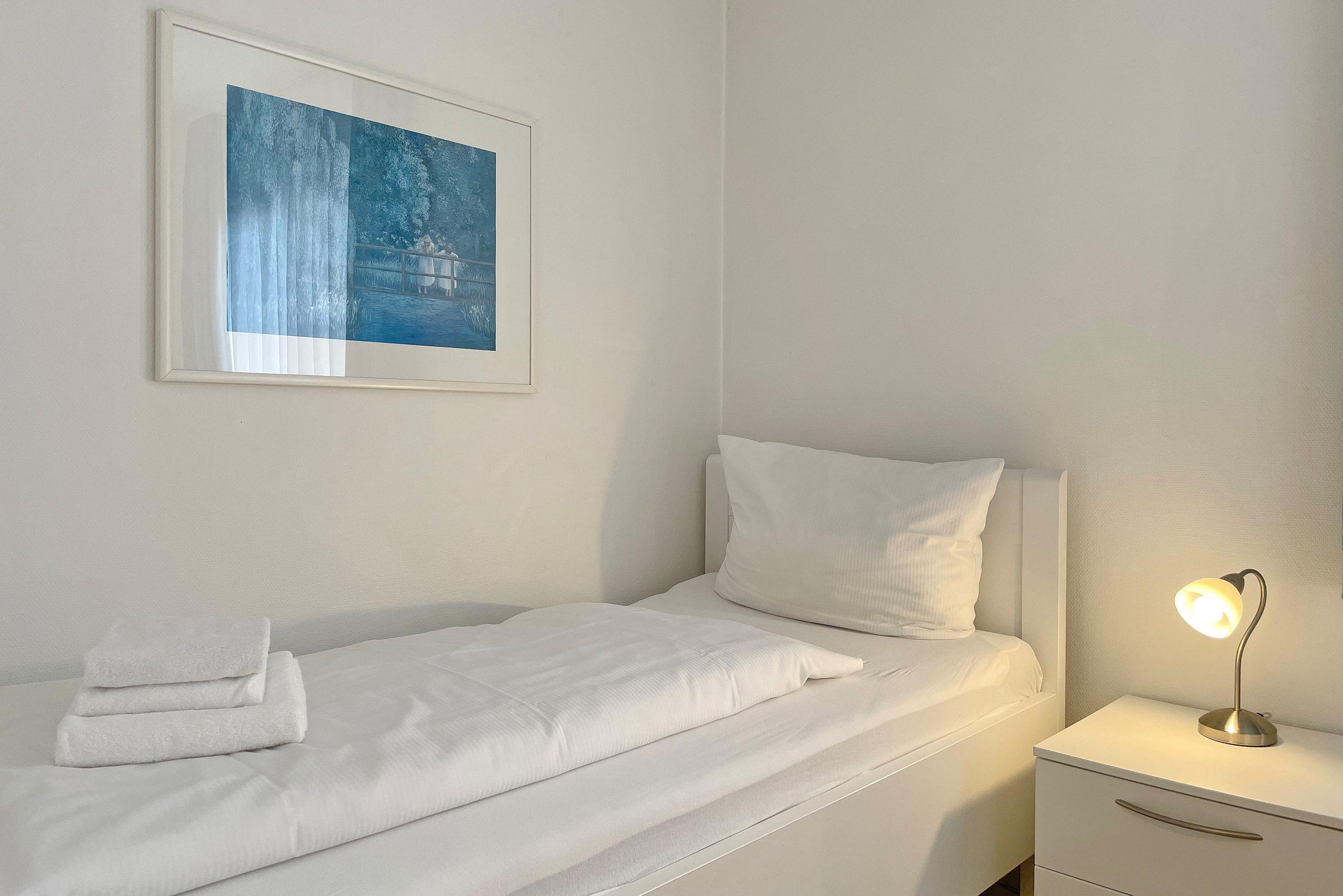 In zentrale und ruhiger Lage befindet sich die Anlage Gästehäuser Lindemann mit seinen 6 Ferienwohnungen auf einem 2000 qm großen und gepflegten Grundstück. Verbringen Sie Ihren Urlaub in einer der freundlich eingerichteten ca. 42 qm großen Ferienwohnungen, die alle sehr ähnlich eingerichtet sind und einen erholsamen Urlaub für 2 Personen anbieten. Das Wohnzimmer mit integrierter Essecke und Küchenzeile ist gemütlich eingerichtet und mit Flachbild-TV, W-Lan und Telefon ausgestattet. Von hier aus gelangen Sie auf die Terrasse, die in den Sommermonaten mit Gartenmöbeln ausgestattet ist. Die neu eingebaute Küchenzeile mit Mikrowelle, Geschirrspüler, Ceranfeldherd und Kühlschrank mit Gefrierfach lädt zum Kochen ein. Weiterhin erreichen Sie über den Flur das Badezimmer mit Dusche, Fenster und Doppelwaschtisch sowie ein Schlafzimmer mit 2 Einzelbetten (90 x200 cm) und Kleiderschrank. Das im Wohnzimmer befindliche Schrankbett (180 x 200 cm) dient als Ausweichmöglichkeit, falls Sie getrennt schlafen möchten. Die Wohnungen eignen sich auch hervorragend für befreundete Pärchen, die zusammen Ihren Urlaub verbringen, doch gerne ein wenig Privatsphäre dabei haben möchten. Sie finden in unmittelbarer Nähe alles, was Sie benötigen vom Einkaufladen, über den Bäcker, zu gemütlichen Cafés und Restaurants bis zur Wyker Innenstadt. Strand und Meer sind auch nicht weit entfernt und jederzeit einen Spaziergang wert. Ein gemeinschaftlicher Parkplatz am Haus und eine gemeinschaftlich, nutzbare Waschmaschine runden das Angebot ab.