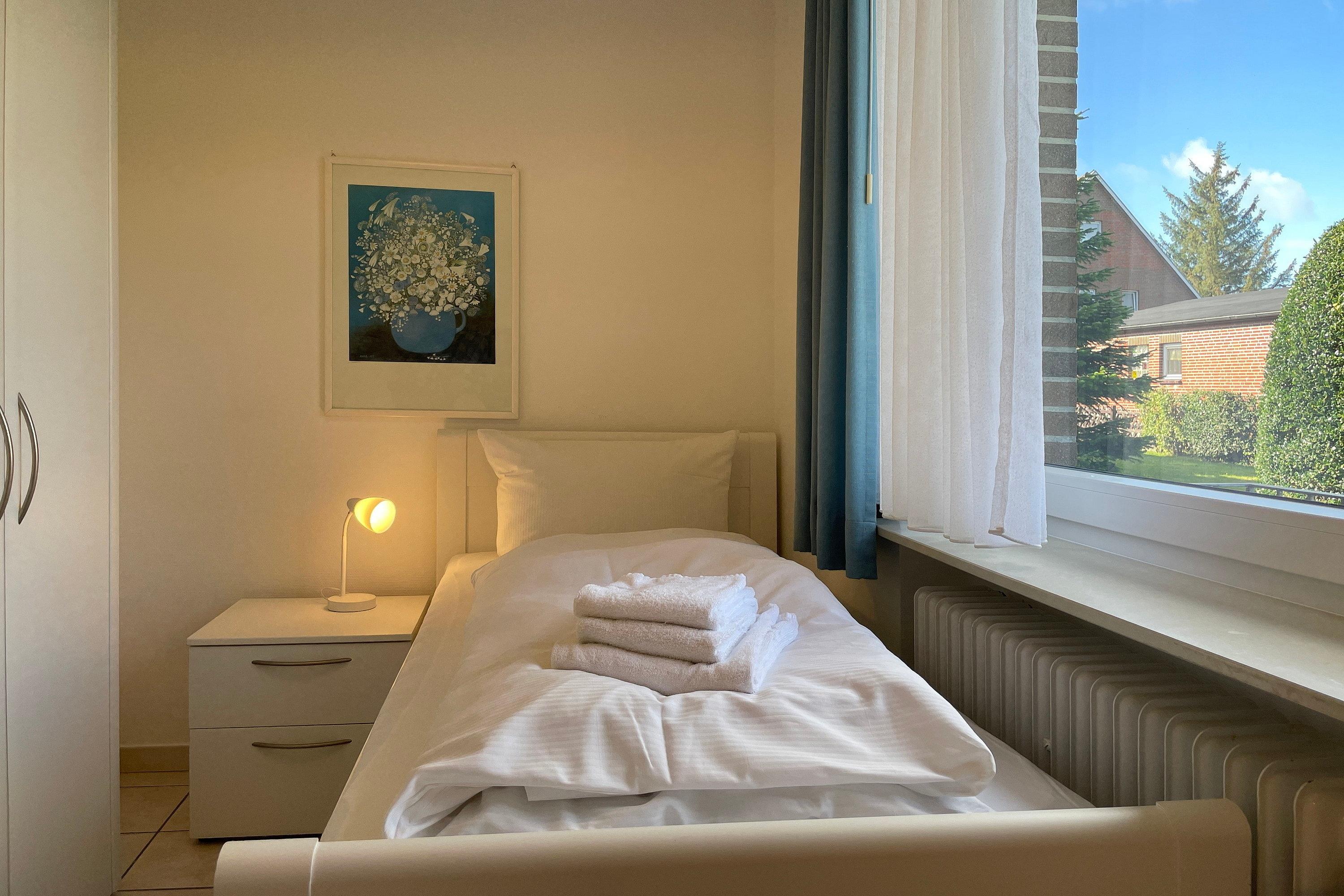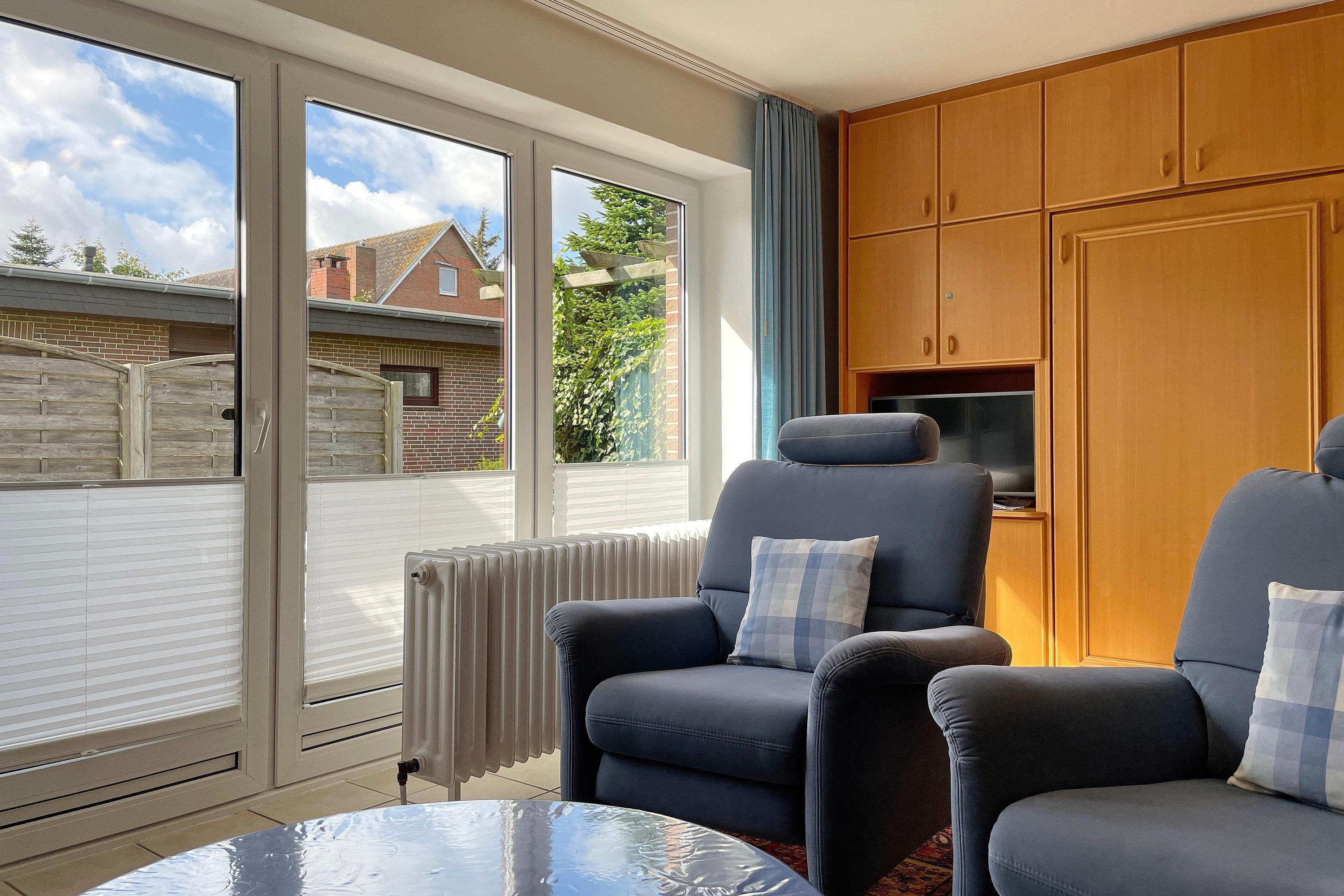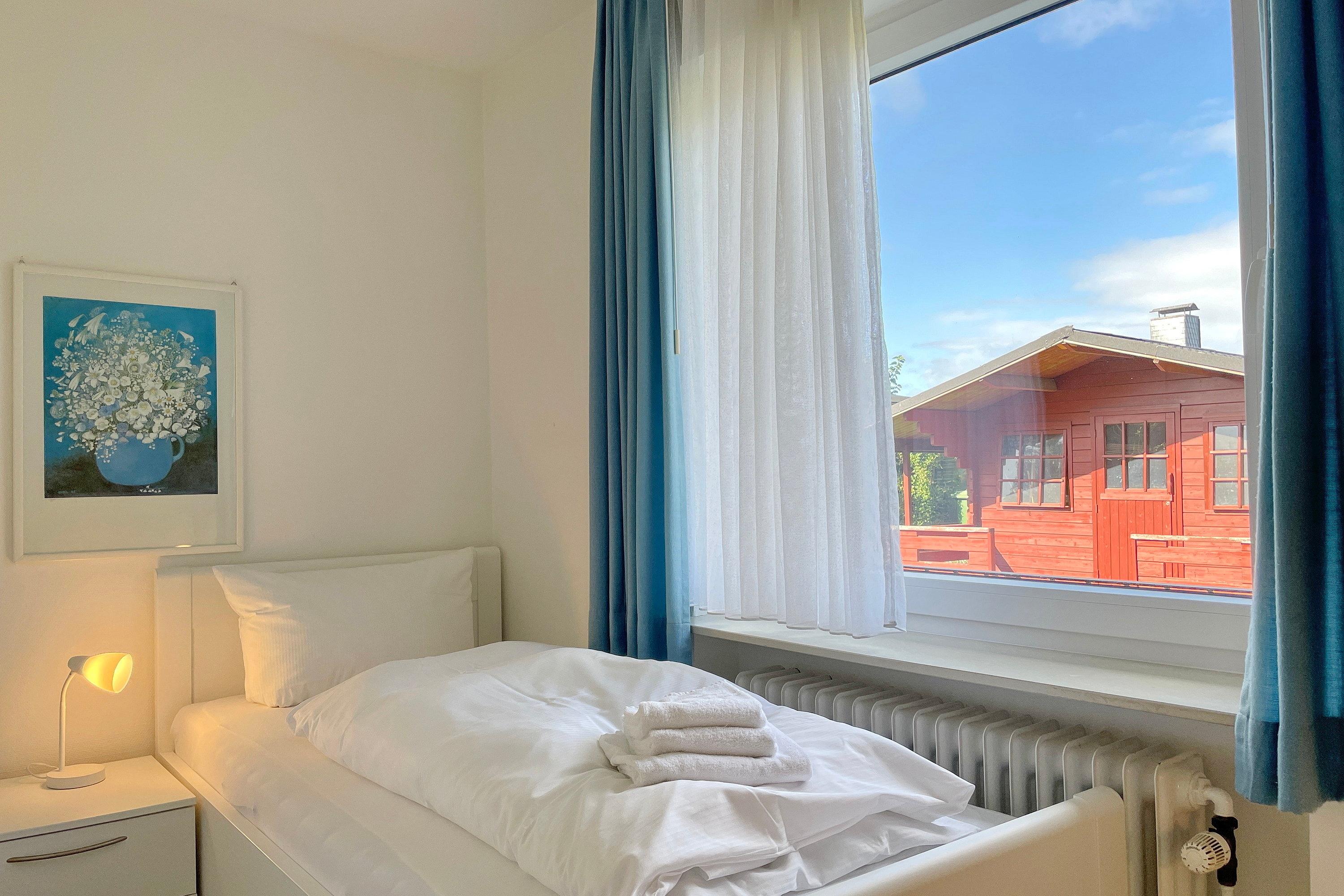 In zentrale und ruhiger Lage befindet sich die Anlage Gästehäuser Lindemann mit seinen 6 Ferienwohnugen auf einem 2000 qm großen und gepflegten Grundstück. Verbringen Sie Ihren Urlaub in einer der freundlich eingerichteten ca. 42 qm großen Ferienwohnungen, die alle sehr ähnlich eingerichtet sind und einen erholsamen Urlaub für 2 Personen anbieten. Das Wohnzimmer mit integrierter Essecke und Küchenzeile ist gemütlich eingerichtet und mit Flachbild-TV, WLAN und Telefon ausgestattet. Von hier aus gelangen Sie auf die Terrasse, die in den Sommermonaten mit Gartenmöbeln ausgestattet ist. Die neu eingebaute Küchenzeile mit Mikrowelle, Geschirrspüler, Ceranfeldherd und Kühlschrank mit Gefrierfach lädt zum Kochen ein. Weiterhin erreichen Sie über den Flur das Badezimmer mit Dusche, Fenster und Doppelwaschtisch sowie ein Schlafzimmer mit 2 Einzelbetten (90 x200 cm) und Kleiderschrank. Das im Wohnzimmer befindliche Schrankbett (180 x200 cm) dient als Ausweichmöglichkeit, falls Sie getrennt schlafen möchten. Die Wohnungen eignen sich auch hervorragend für befreundete Pärchen, die zusammen Ihren Urlaub verbringen, doch gerne ein wenig Privatsphäre dabei haben möchten. Sie finden in unmittelbarer Nähe alles, was Sie benötigen vom Einkaufladen, über den Bäcker, zu gemütlichen Cafés und Restaurants bis zur Wyker Innenstadt. Strand ud Meer sind auch nicht weit entfernt und jederzeit einen Spaziergang wert. Ein gemeinschaftlicher Parkplatz am Haus und eine gemeinschaftlich, nutzbare Waschmaschine runden das Angebot ab.