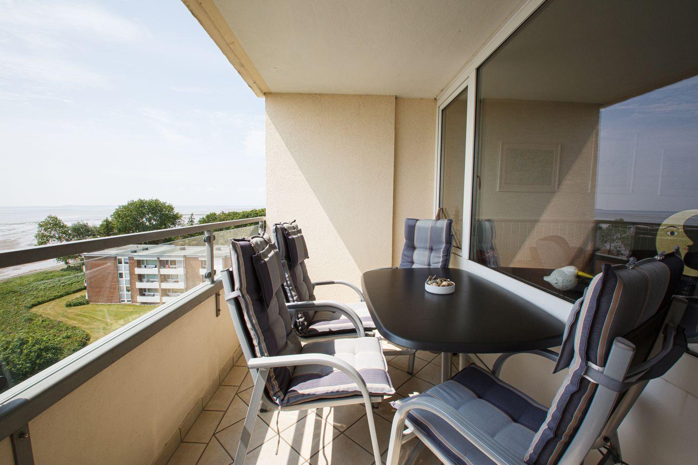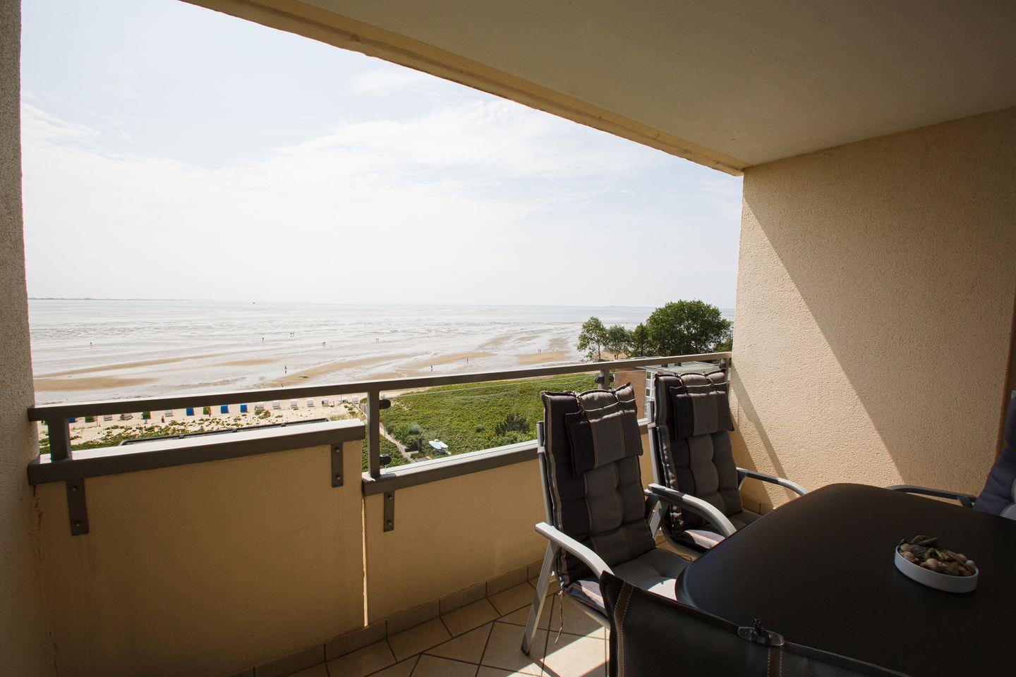 Meeresrauschen liegt im VI. OG im Haus Uthlande , ist ca. 55 qm groß und für 4 Personen eingerichtet. Sie besteht aus einem Wohnraum, zwei Schlafräumen, einer vom Wohnzimmer abgehenden Küchenzeile, einem Duschbad mit WC sowie einer Diele mit Abstellecke. Der vom Wohnzimmer aus zugängliche, überdachte Balkon hat volle Südlage und bietet einen herrlichen Blick zum Strand, zur Nordsee und den vorgelagerten Halligen. Balkonmöbel sind vorhanden. Der gesamte Wohn- und Schlafbereich ist mit Laminatboden ausgestattet. Ein Schlafraum verfügt über ein Doppelbett, der zweite Schlafraum über zwei Einzelbetten. Bei dieser Wohnung haben Sie Schwimmbadbenutzung im Hause und WLAN-Nutzung inklusive.