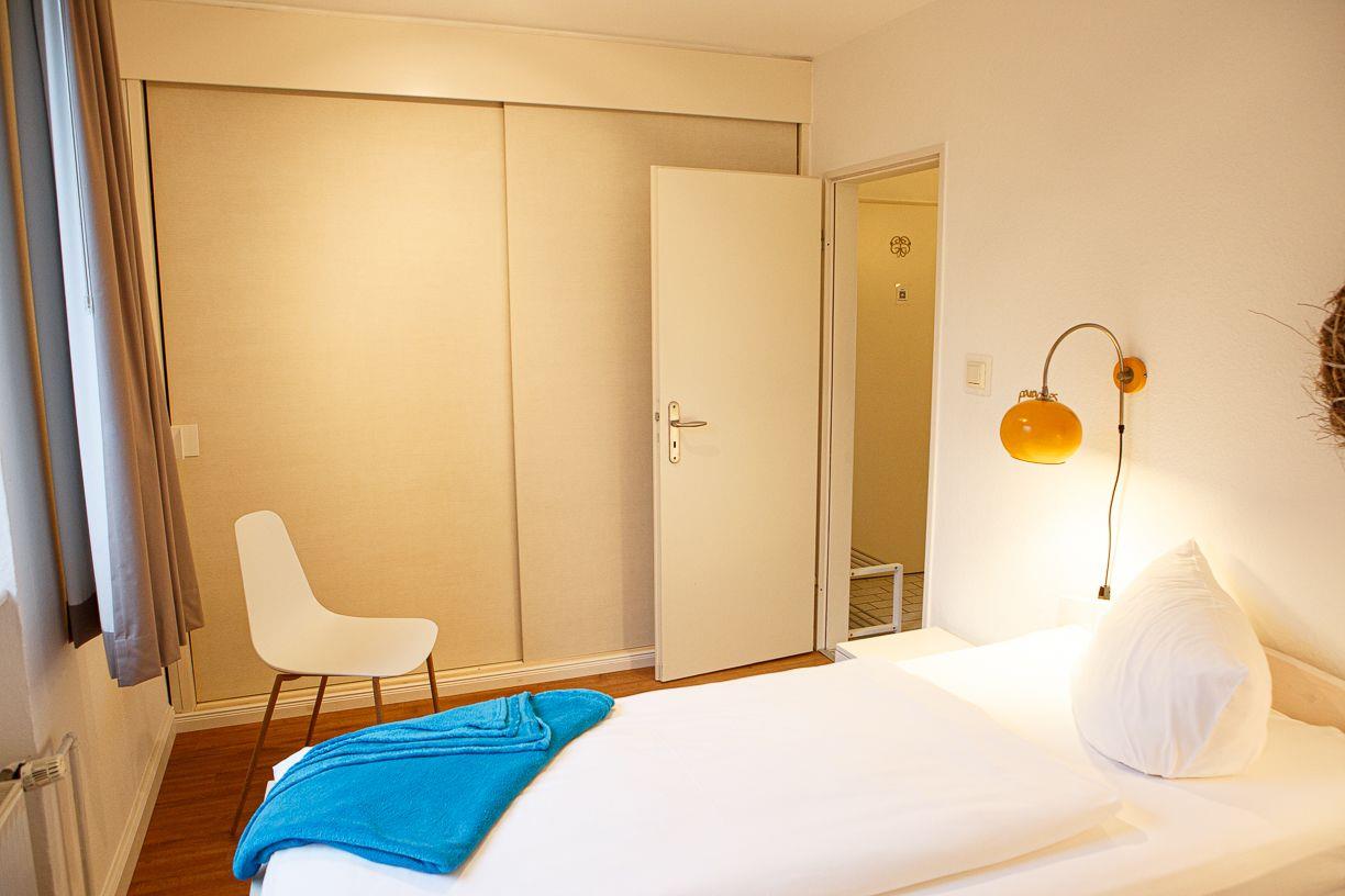 Die Wohnung verfügt über insgesamt 2 Zimmer, davon 1 Schlafzimmer mit einem gemütlichen Doppelbett und einem Schlafsofa im Wohnzimmer.