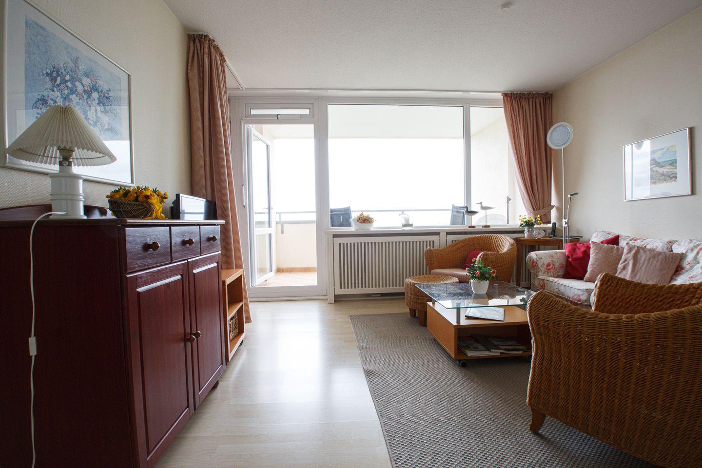 Ein traumhafter Blick erwartet Sie hier für einen traumhaften Urlaub. Die Wohnung befindet sich im 4.OG und ist hell und freundlich für bis zu vier Personen eingerichtet. Sie besteht aus einem gemütlichen Wohnzimmer mit Südbalkon. Es befinden sich zwei Schlafzimmern mit jeweils einem 160cm Doppelbett. Die Küchenzeile ist mit allen modernenen Geräten ausgestattet.Das neu renovieret Bad bietet eine Walkinn Dusche mit modernem Flair. Wohn- und Schlafbereiche sind mit Laminat ausgelegt, Küche und Bad sind gefliest. Die Wohnung ist sehr geschmackvoll und mit vielen kleinen Accessoires liebevoll eingerichtet.