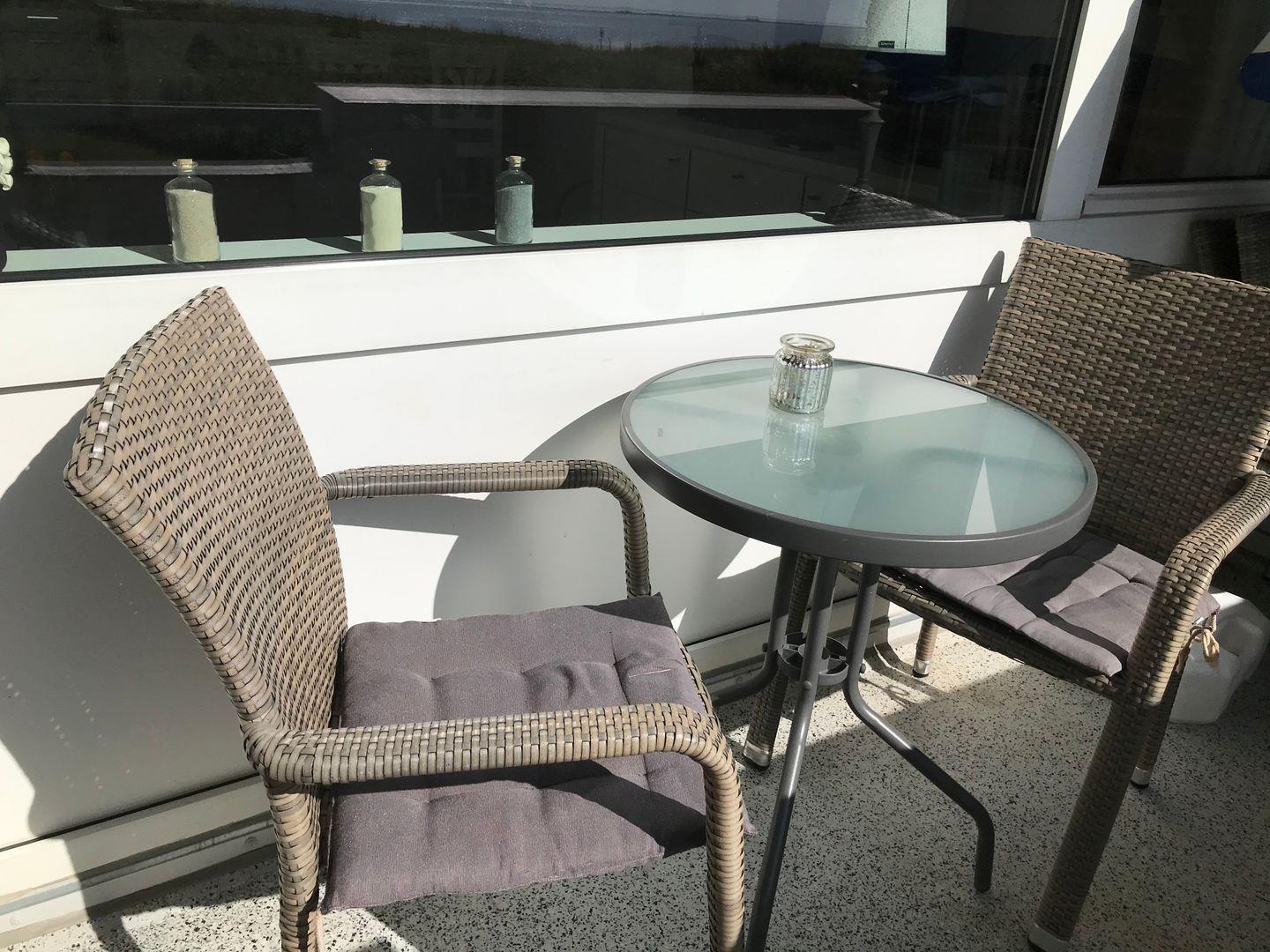 Im Obergeschoss können Sie von der gemütlichen Wohnküche direkt aufs Meer sehen und haben Zugang zum Balkon!