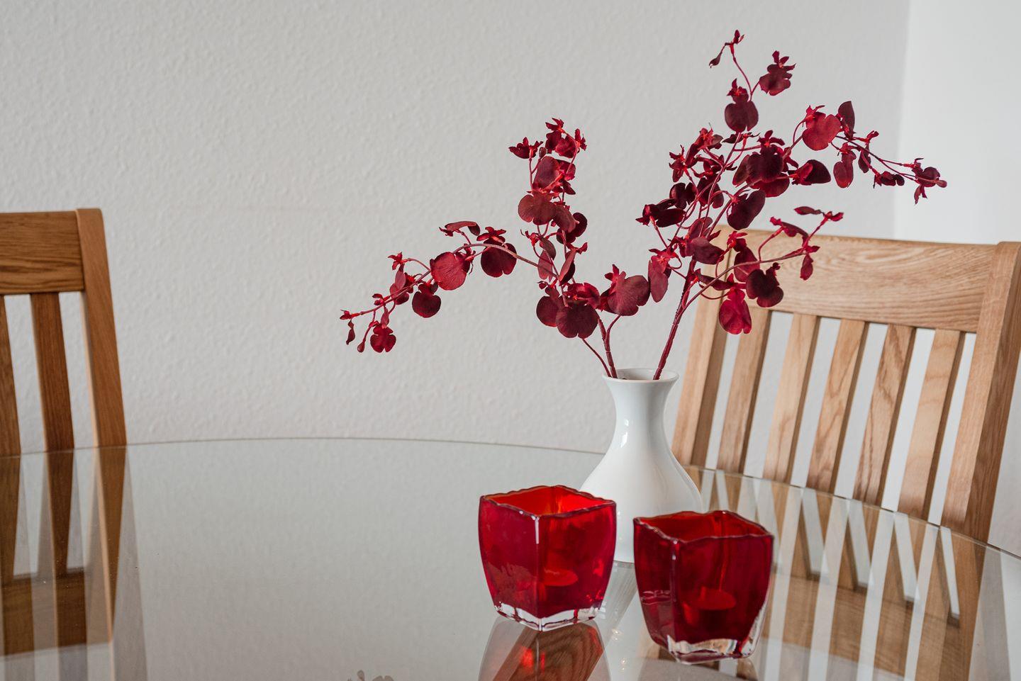 Der gesamte Wohn- und Schlafbereich ist mit Vinyl (Ahorn) ausgelegt, Küche und Bad sind gefliest. Die Wohnung ist hell und in warmen Brauntönen großzügig eingerichtet. Viele Kleinigkeiten, Bilder und die individuelle und liebevolle Einrichtung machen diese Wohnung zu einer Ferienwohnung zum Wohlfühlen.