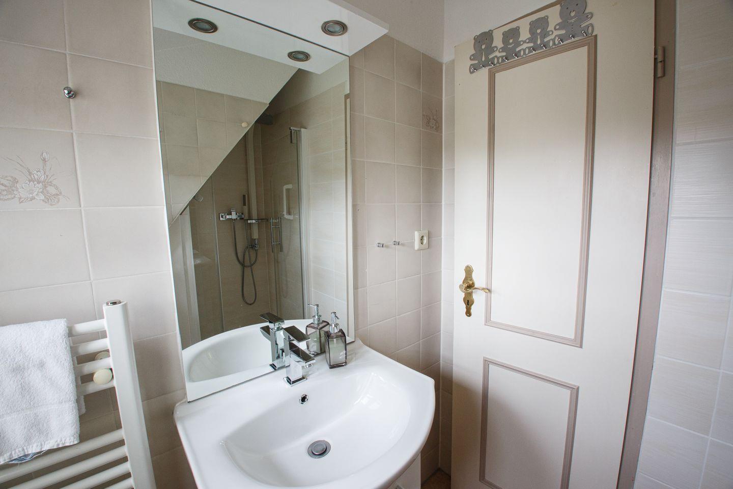Das Schlafzimmer ist mit Teppichboden ausgestattet und bietet eine erholsame Schlafmöglichkeit für zwei Personen. Die großen Fenster sind mit Sichtschutz versehen und bieten einen ruhigen Ausblick in den Garten. Das Badezimmer verfügt über eine Dusche mit Wanneneinstieg, WC, Waschbecken, Spiegel sowie einen Haartrockner. Hand- und Badetücher, Bettwäsche und Reinigungsmittel werden zur Verfügung gestellt. Selbstverständlich stehen Ihnen auch ein Staubsauger, ein Wäscheständer und ein Wäscheservice zur Verfügung.