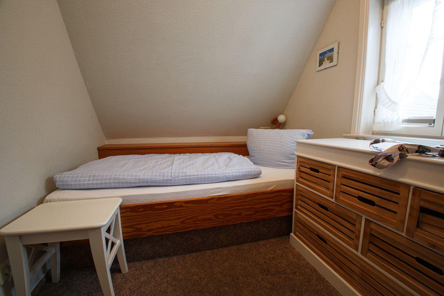 Unser Objekt befindet sich im Anbau eines urigen Fischerhauses mittem im Herzen Wyk`s. Im Erdgeschoß werden Sie von einem gemütlichen Sofa empfangen. Die Küchenzeile mit allen modernen Elektrogeräten rundet den Wohnküchenbereich ab. Das Schlafzimmer mit zwei einzelnen Betten und Bad befinden sich im Obergeschoß.