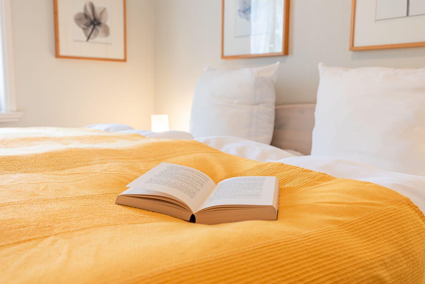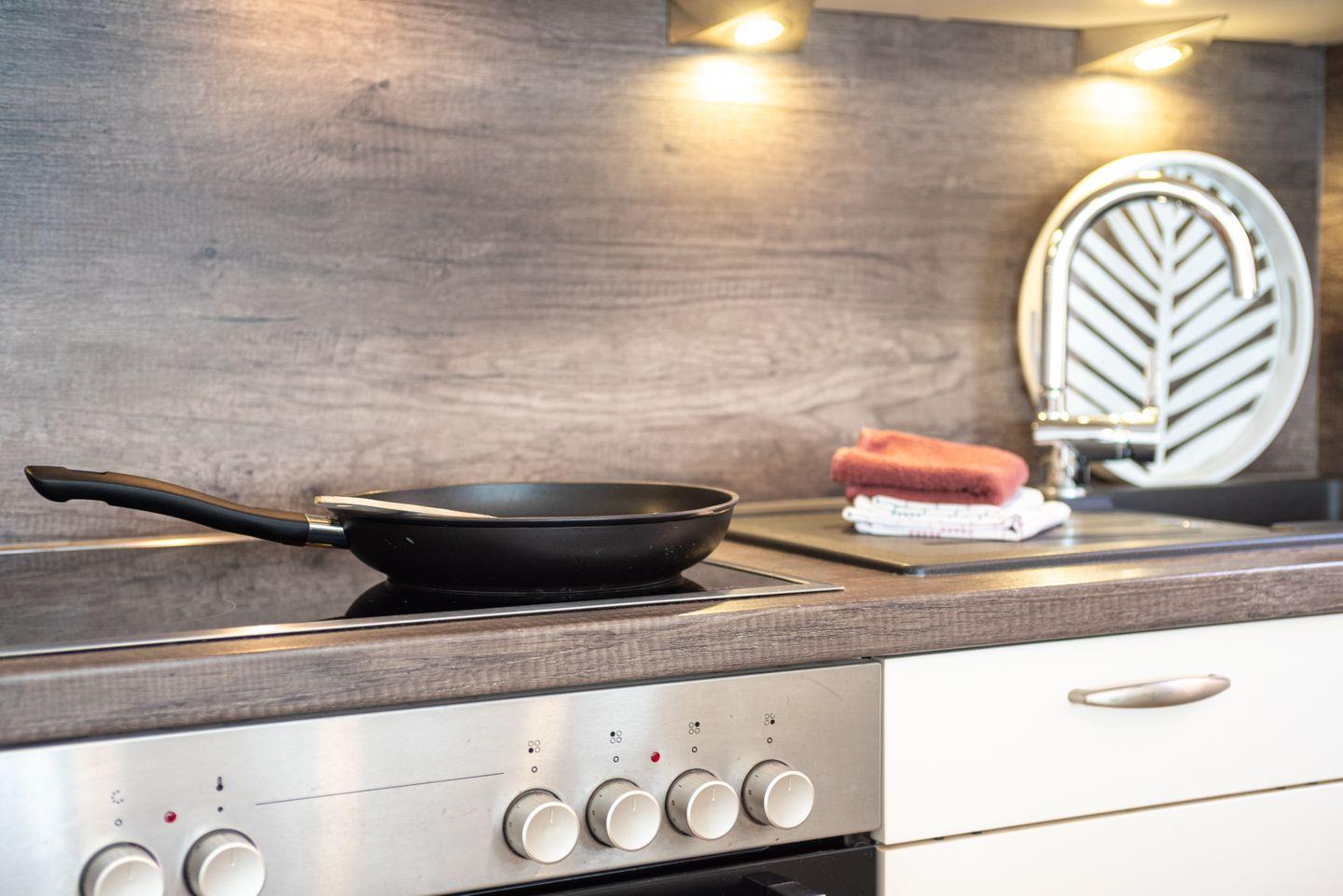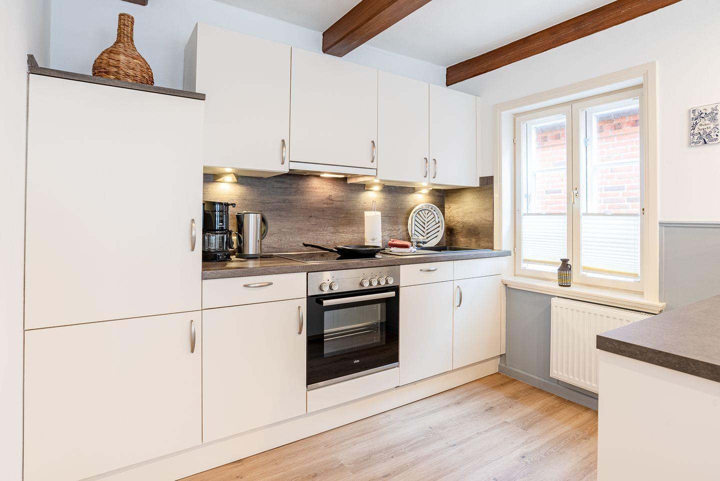 Die geschlossene Küche bietet einen Esstisch und ist umfassend ausgestattet: Zur Ausstattung zählen ein Ceranherd mit Elektrobackofen, eine Spülmaschine, Kühlschrank mit Gefrierfach, Mikrowelle, Wasserkocher, Kaffeemaschine, Toaster, Mixer, Eierkocher sowie zahlreiche Küchenutensilien und Gewürze. Für zusätzlichen Komfort stehen Bügeleisen, Bügelbrett und Wäscheständer bereit. Eine Erstausstattung mit Bettwäsche, Hand- und Geschirrhandtüchern ist im Service inbegriffen. Zimmerservice, Wäscheservice, Brötchen- und Einkaufsservice unterstützen Sie gerne im Alltag.