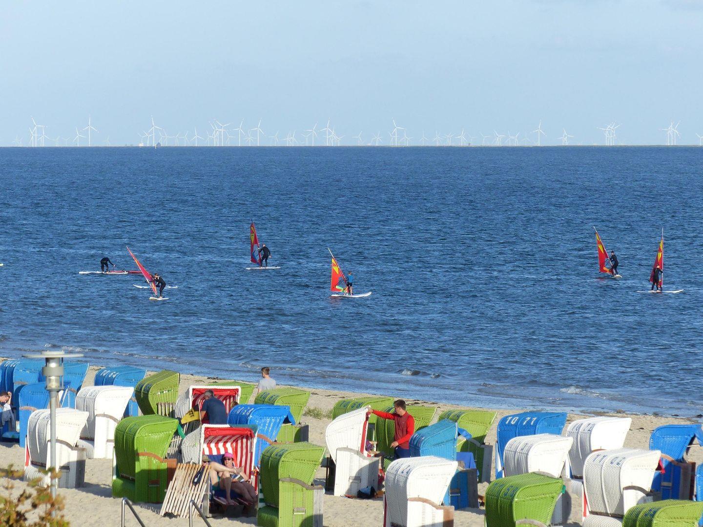 Die gemeinschftliche Terrasse ist mit Gartenmöbeln, Sonnenschirm und Zugang zum Garten mit Grillplatz und Gartenhaus ausgestattet. So lässt sich das nordfriesische Klima – unabhängig vom Wetter – ausgiebig genießen.