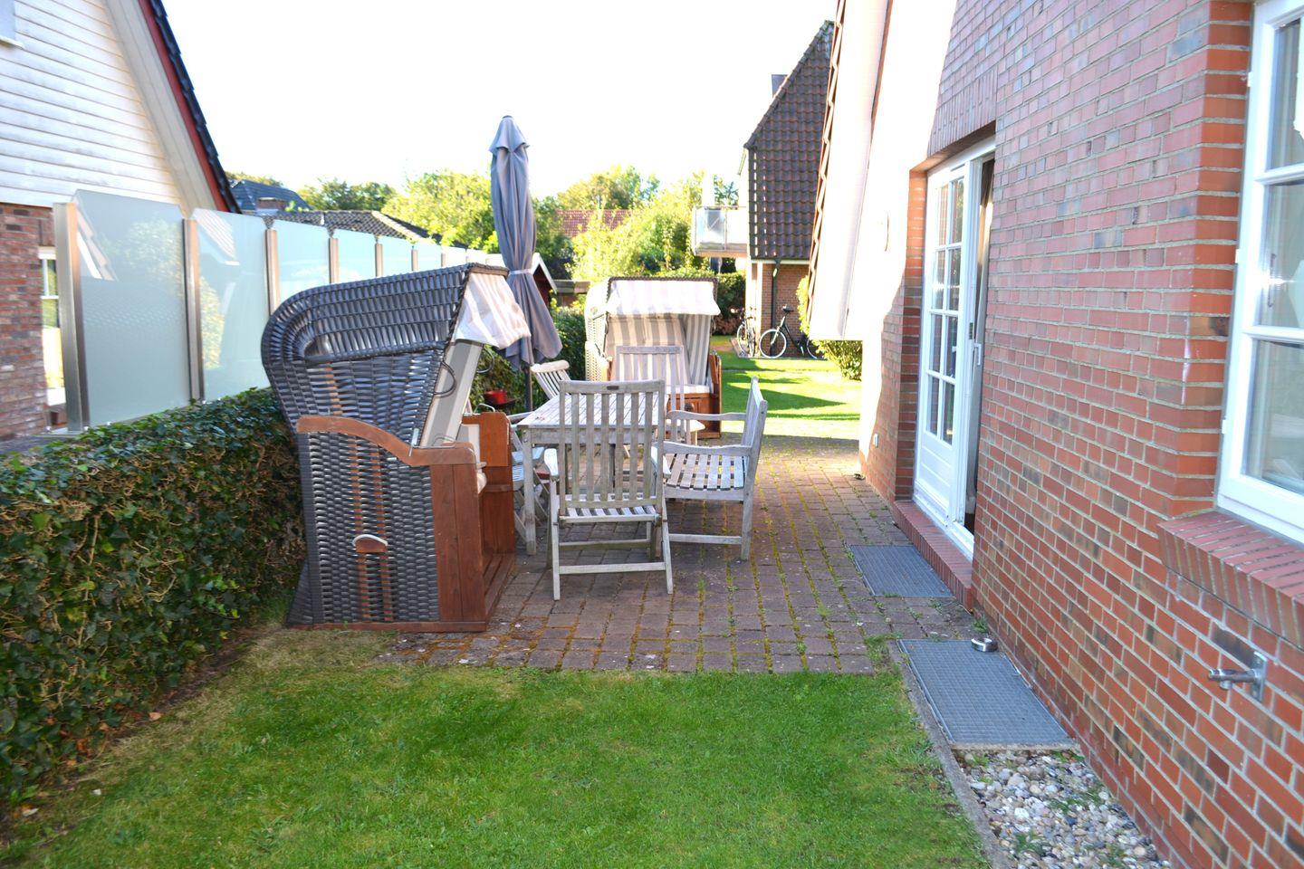 Ein PKW-Stellplatz ist auf dem Grundstück verfügbar. Des Weiteren steht den Gästen der Spielrasen/-garten zur freien Verfügung. Die ganze Familie kann auf der Terrasse die Mahlzeiten im Freien einnehmen und dabei vielleicht die frische Nordseebrise genießen; wir wünschen Ihnen bereits jetzt viel Spaß und gute Erholung!