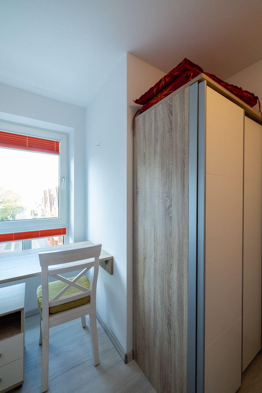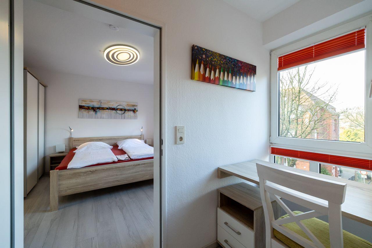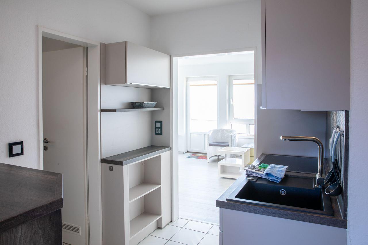 Die Wohnung selbst liegt im 2. Obergeschoss und ist über das Treppenhaus sowie über einen Fahrstuhl von Haus 17 zu erreichen. Besonders hervorzuheben ist der direkte Blick auf das Meer Richtung Osten. Hier lassen sich die eigenen Kinder beim Spielen beobachten.