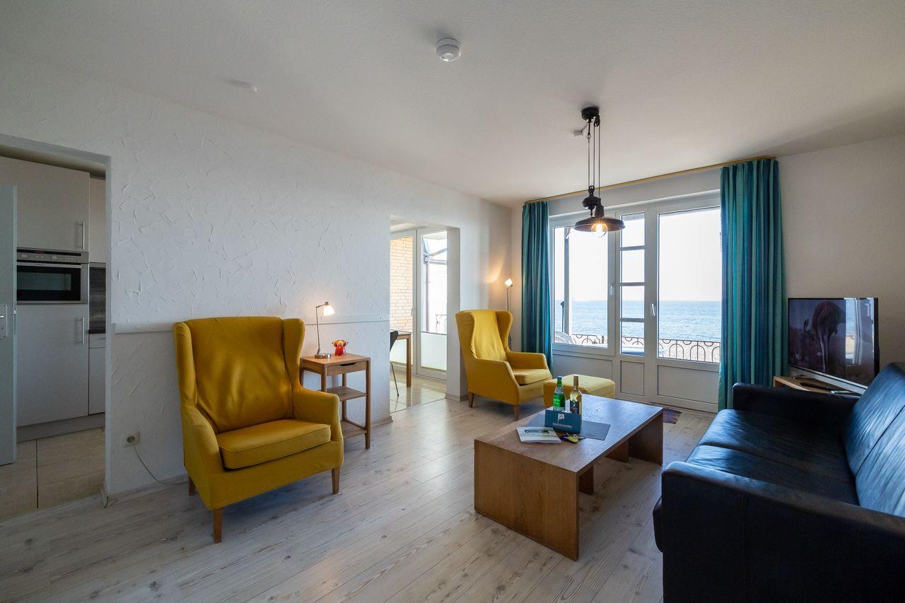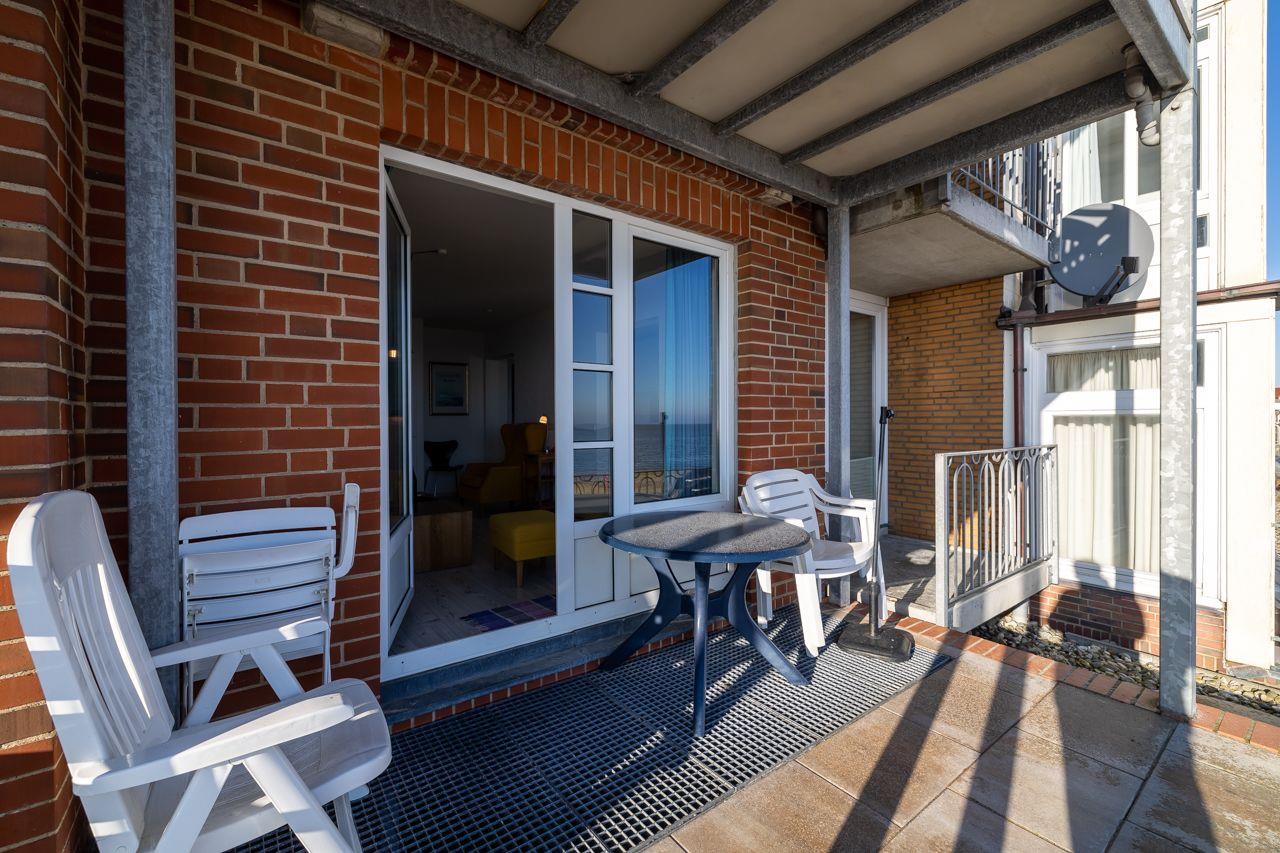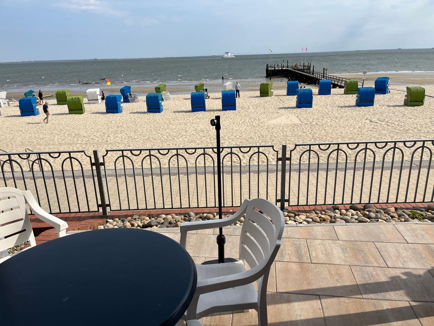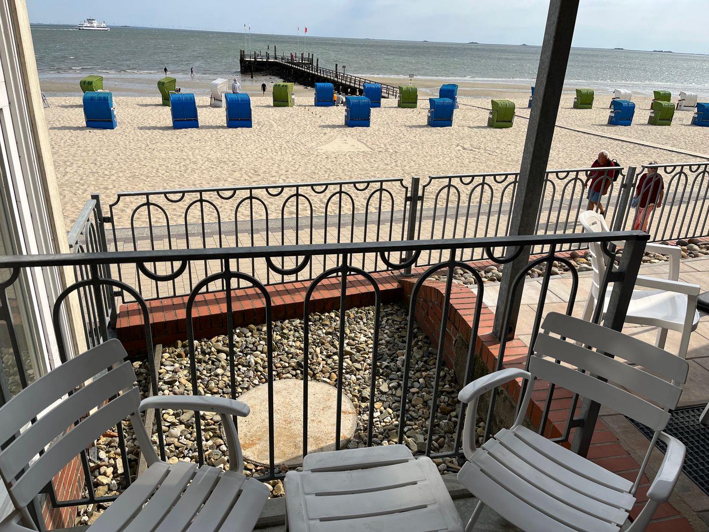Die Wohnung selbst liegt im Erdgeschoss/ Hochparterre. Besonders hervorzuheben ist der direkte Blick auf das Meer Richtung Osten. Hier lassen sich die Geschehnisse am Strand bestens beobachten.