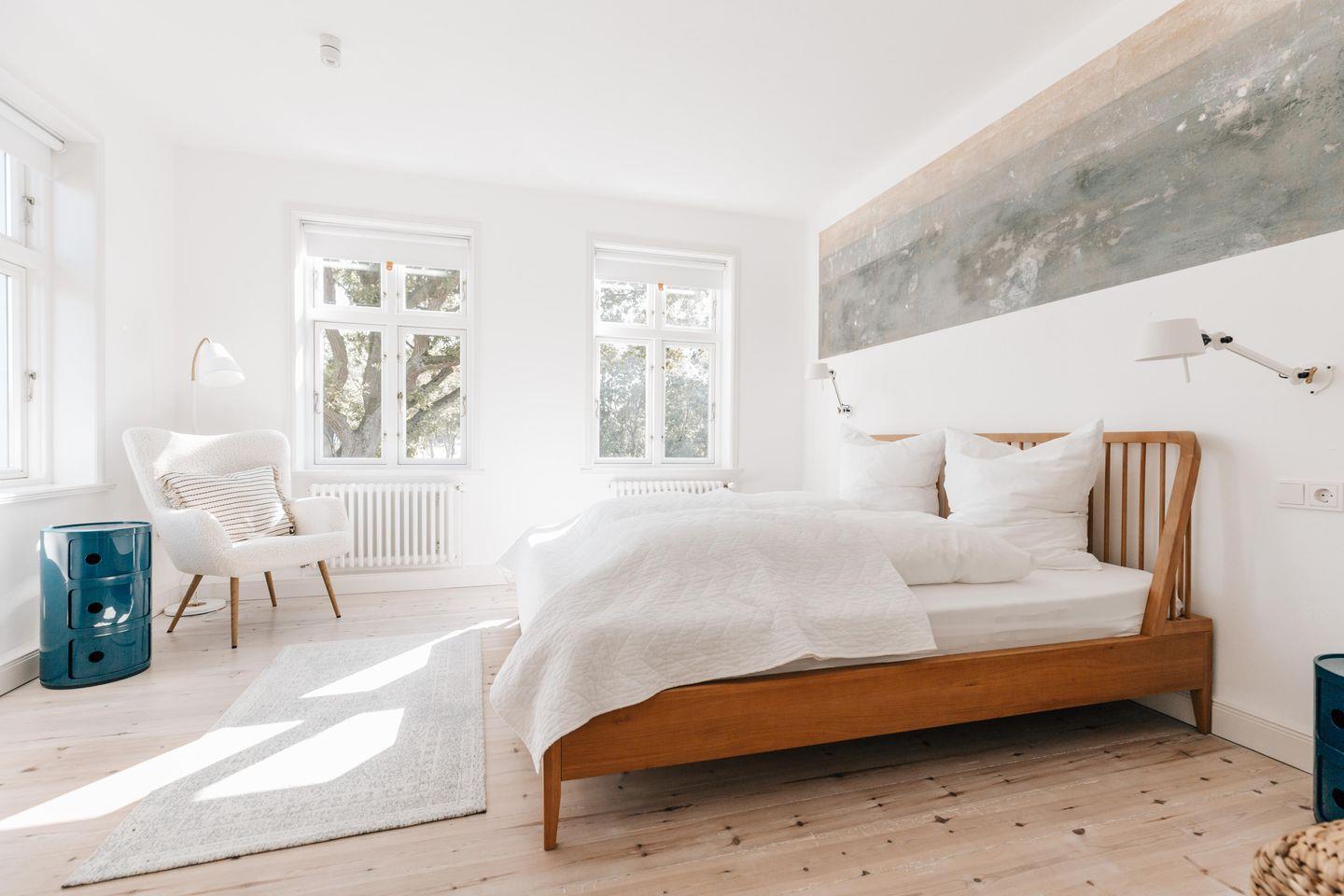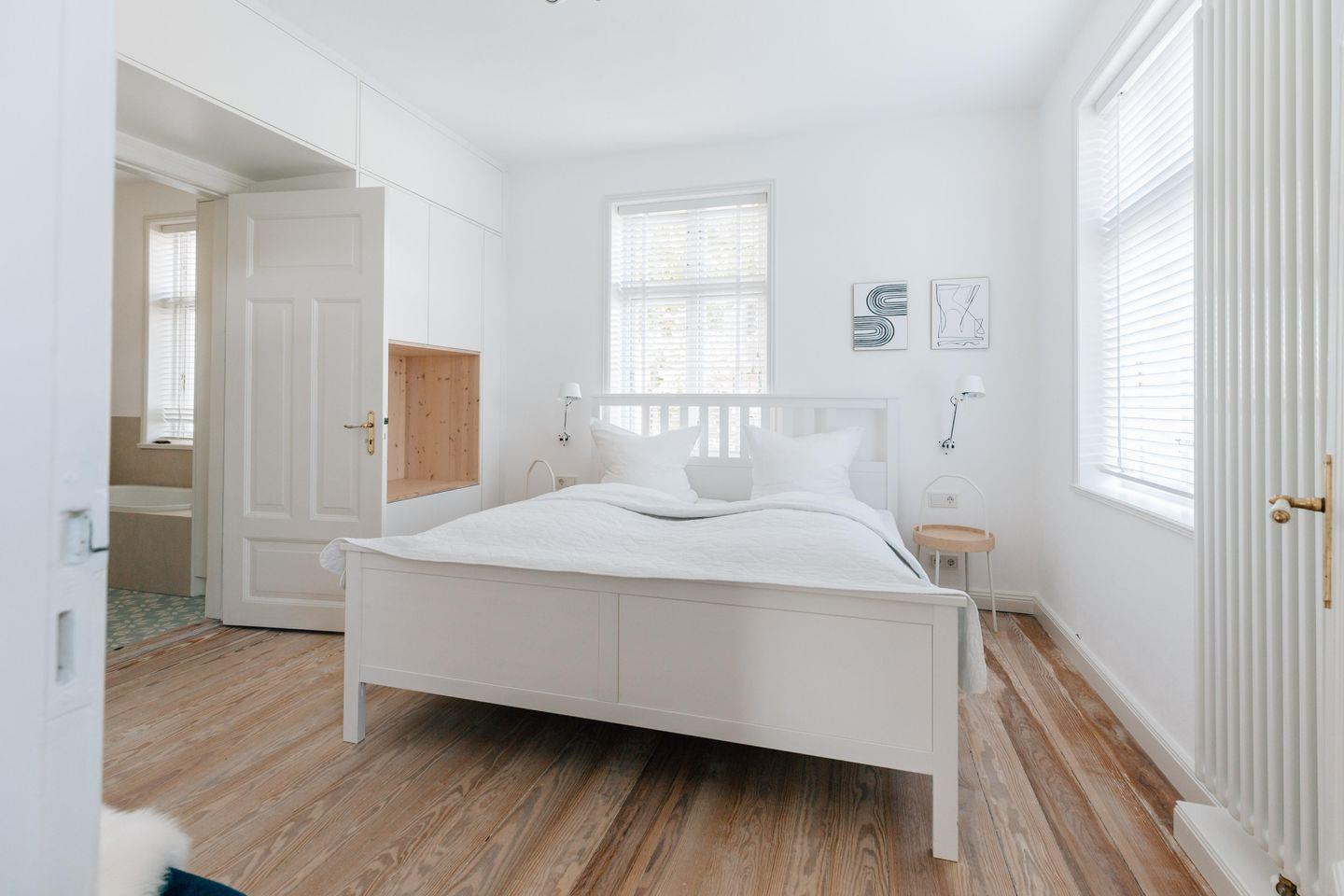 Der Hausteil Bi-de-Wyk im Eduard-Paulsen-Haus verfügt über 3 Schlafzimmer, 2 Bäder und 1 Gäste-WC und bietet somit komfortabel Platz für bis zu 6 Personen. Das alte Kapitänshaus wurde im Jahr 2023 mit Bedacht aufwendig renoviert und saniert, um historische und traditionelle Aspekte zu erhalten.