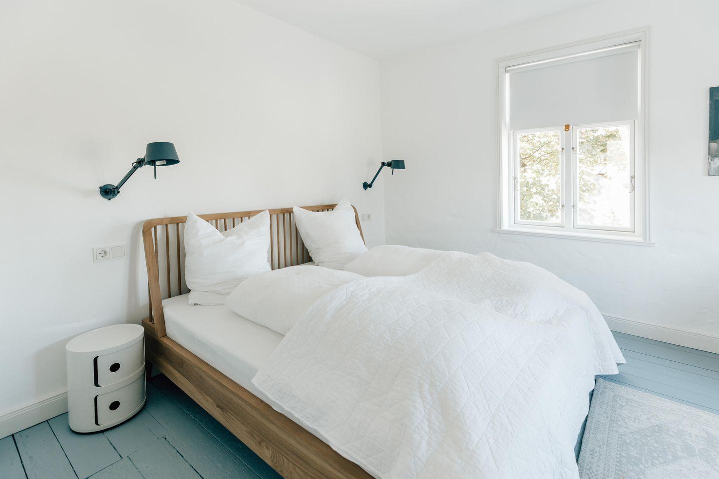 Im Obergeschoss sind zwei weitere Schlafzimmer - jeweils mit einem Doppelbett ausgestattet - sowie das Duschbad mit der eigenen Sauna gelegen.