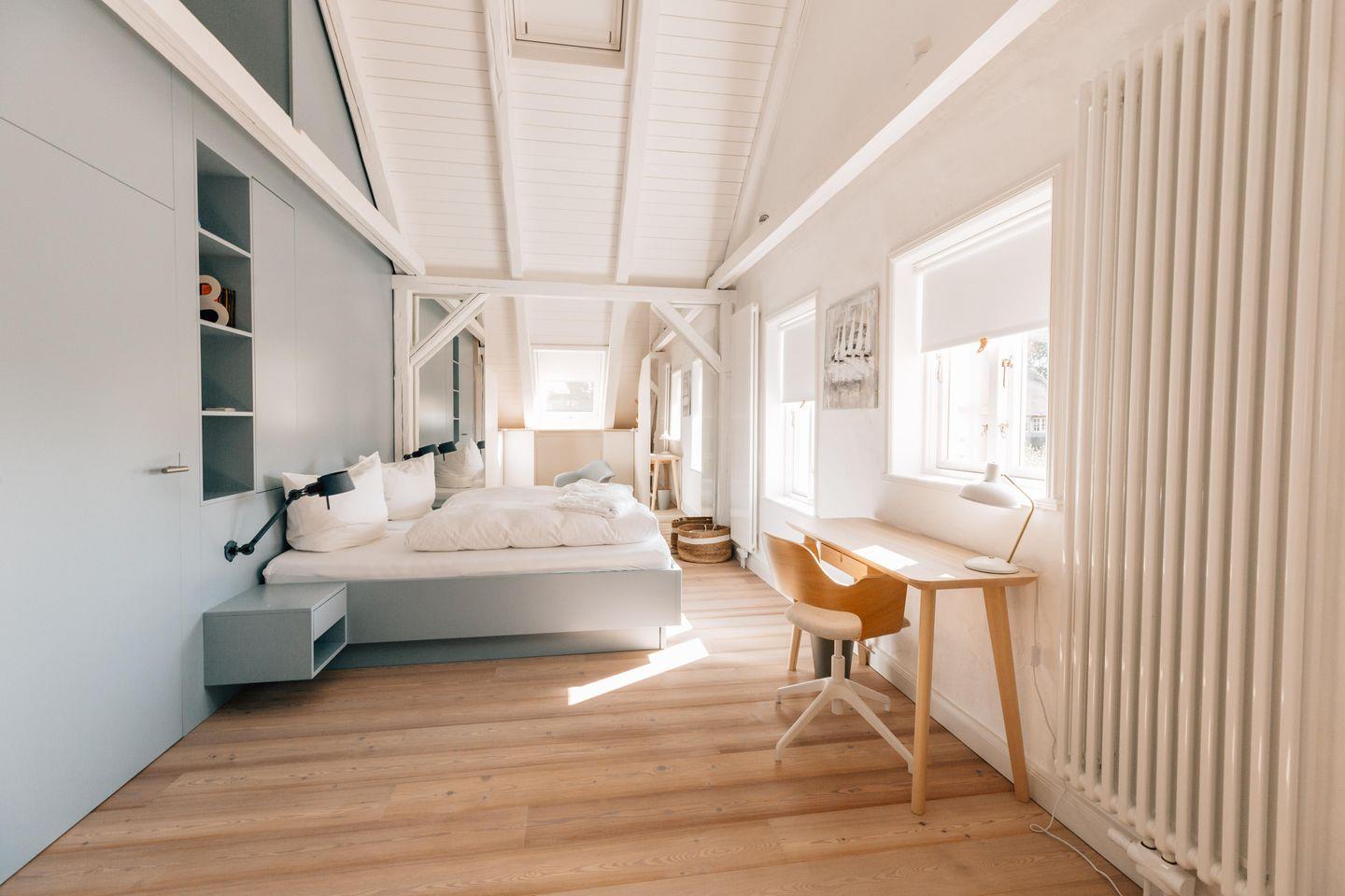 Der Hausteil Bi-de-Fenne im Eduard-Paulsen-Haus verfügt über 1 Schlafzimmer und 2 Bäder und bietet somit komfortabel Platz für 2 bis 3 Personen. Das alte Kapitänshaus wurde im Jahr 2023 mit Bedacht aufwendig renoviert und saniert, um historische und traditionelle Aspekte zu erhalten.
