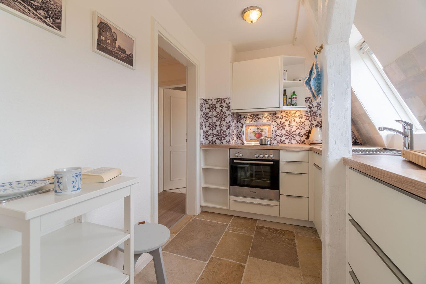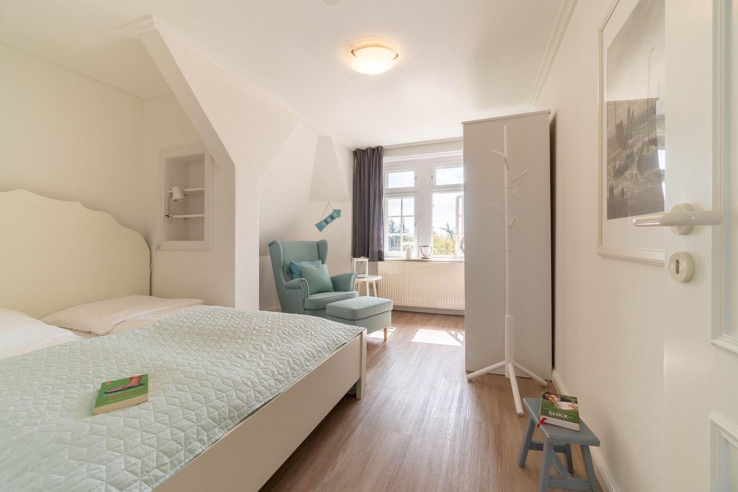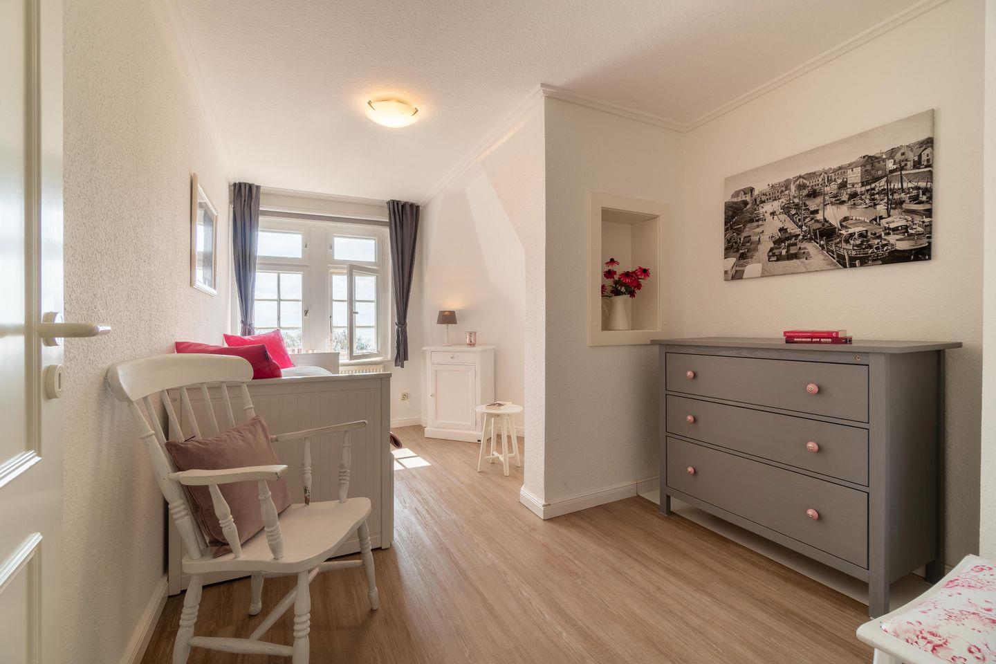 Die Wohnung 5 bietet Platz für bis zu 3 Personen und befindet sich im dritten OG. Das geräumige Wohnzimmer ist mit einem dänischen Eisenofen ausgestattet, an dem Sie sich an kalten Wintertagen nach langen Strandspaziergängen aufwärmen können. Im hell eingerichteten Wohn- und Essbereich starten sie den Urlaubstag sicher gerne mit einem ausgiebigen Frühstück. Die beiden Schlafzimmer sind durch große Fenster lichtdurchflutet. Das Haus Otto lädt mit seiner Gemütlichkeit zum Verweilen und Entspannen ein.
