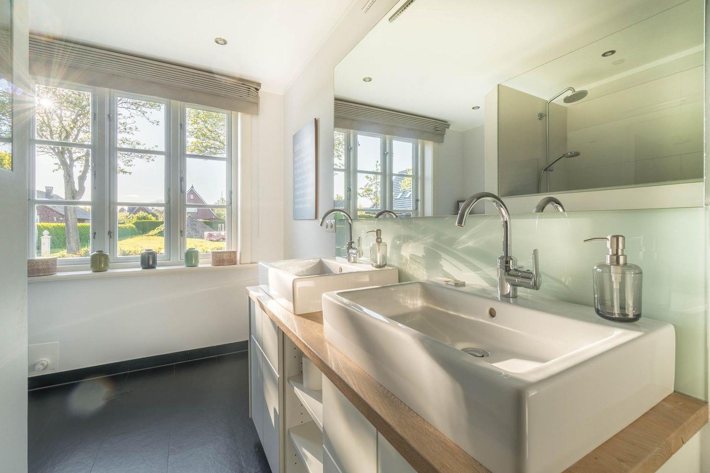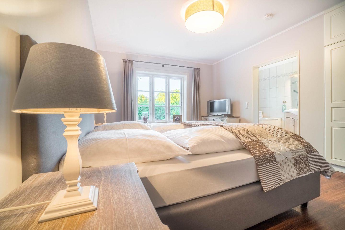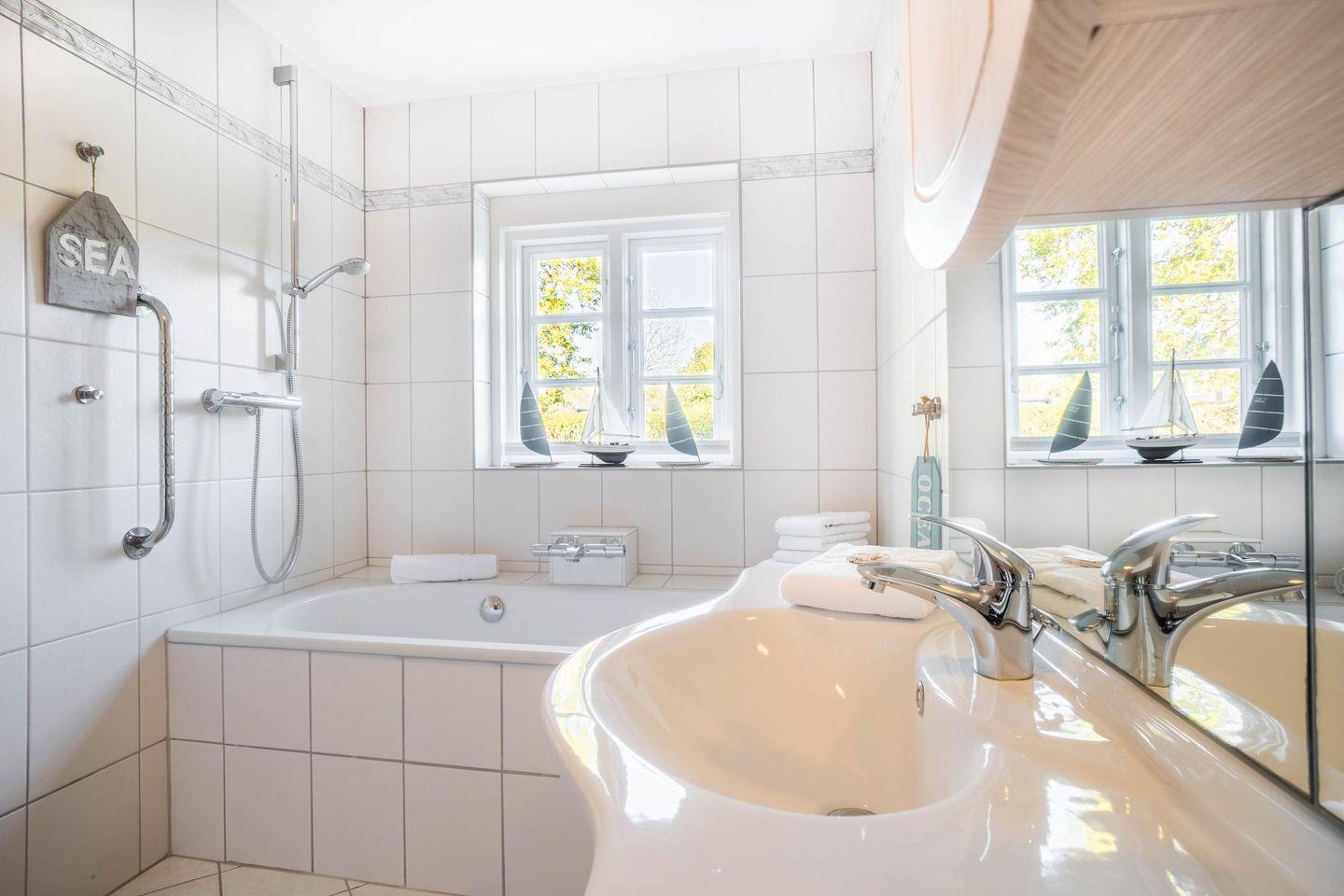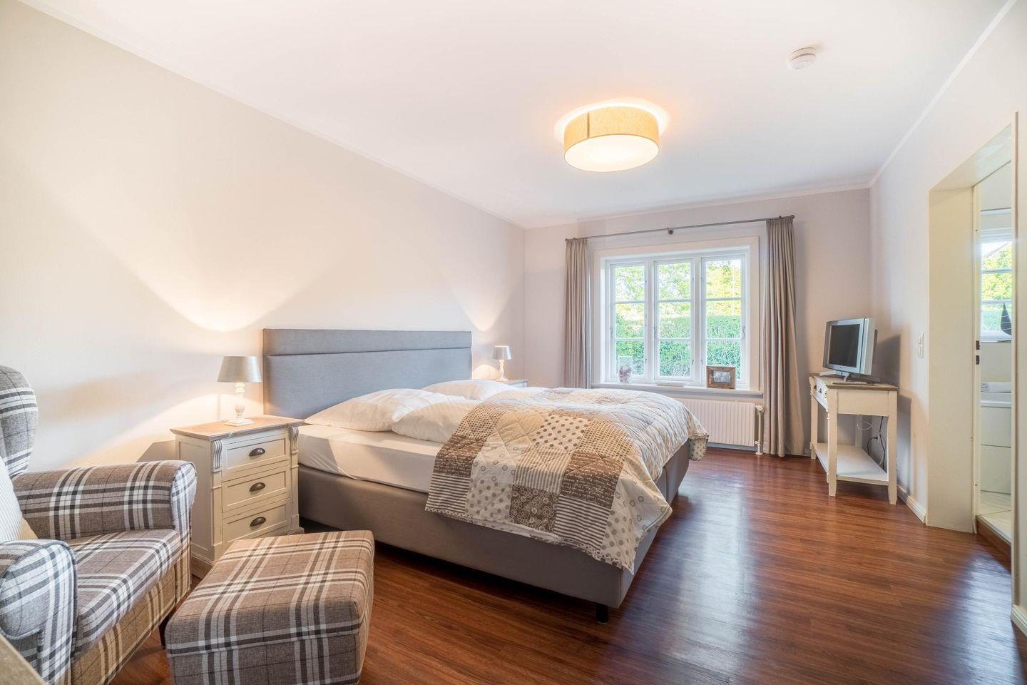 Die großzügige, ca. 120 m² große Wohnung "Rose" liegt im Erdgeschoss des Hauses und bietet Ihnen ein offenes Wohn-Esszimmer mit separater Küche, zwei Doppelbett-Schlafzimmer, ein Vollbad mit Dusche und Wanne, ein Duschbad und einen Wintergarten, von dem aus Sie auf die eigene Terrasse und in den gemeinschaftlich genutzten Garten gelangen. Zudem befindet sich im Souterrain ein weiterer Aufenthaltsraum mit einem Schlafsofa, einem Sessel und einem Smart-TV.