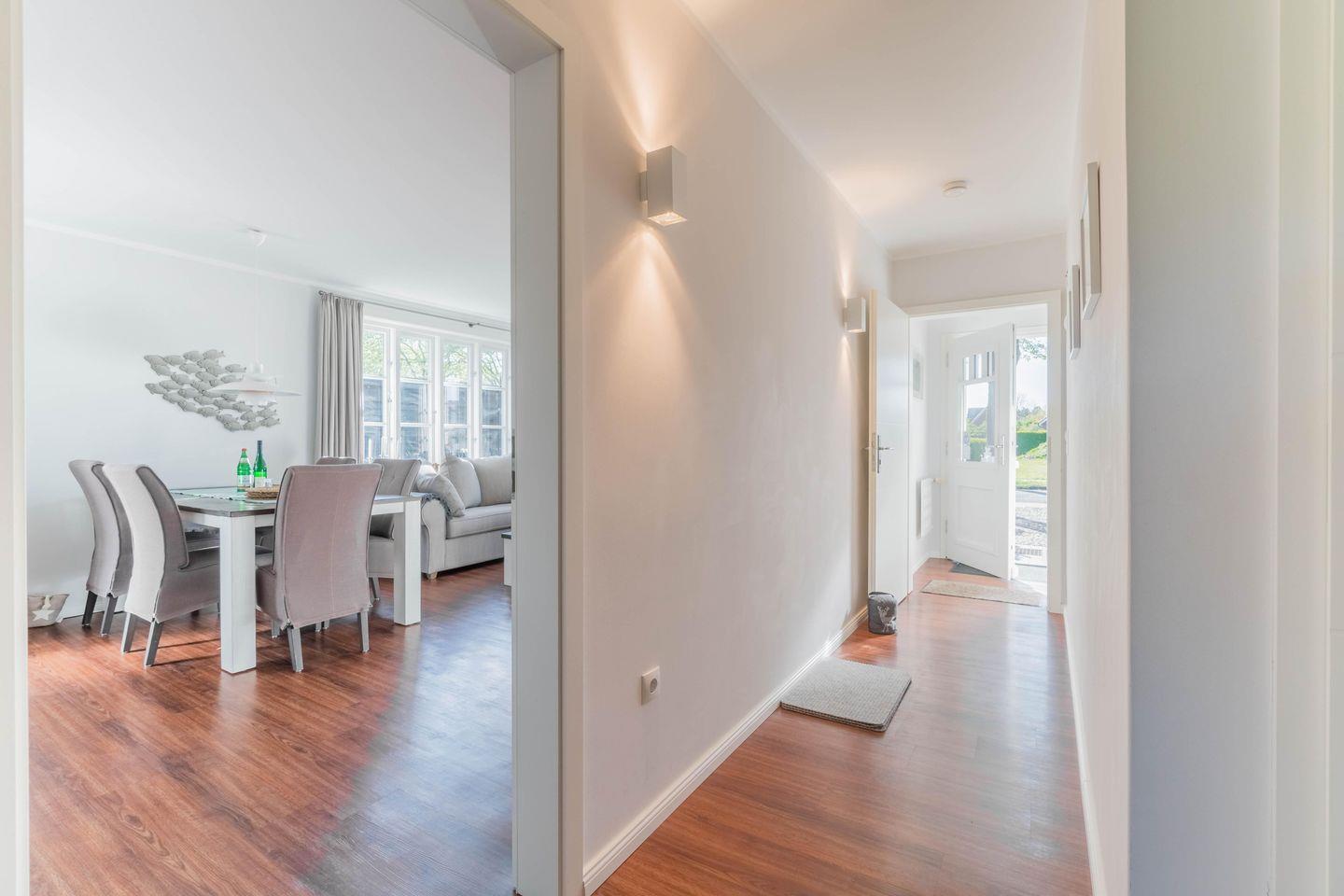 Das Haus in der Gartenstraße unterteilt sich in die drei Wohnungen Rose, Clematis und Hortensie, jede mit eigener Terrasse bzw. eigenem Balkon und gemeinschaftlich genutztem Garten. Im Souterrain befinden sich Waschmaschine und Trockner, die ebenfalls gemeinschaftlich genutzt werden. Das Haus ist nahe der Wyker Innenstadt gelegen und zu der Promenade mit den zahlreichen Restaurants, Cafés und netten Lädchen wie auch zum Wellenbad mit dem Kurmittelhaus ist es nicht weit. Das Friesenmuseum und die Post liegen Ihnen quasi zu Füßen und auch der große Einkaufsmarkt, Bäcker und Schlachter sind fußläufig zu erreichen. Aber auch der Waldspielplatz "Löwenhöhle" ist unweit des Hauses gelegen. Diese zentrale Lage ist ein super Ausgangspunkt für Ihren Urlaub.