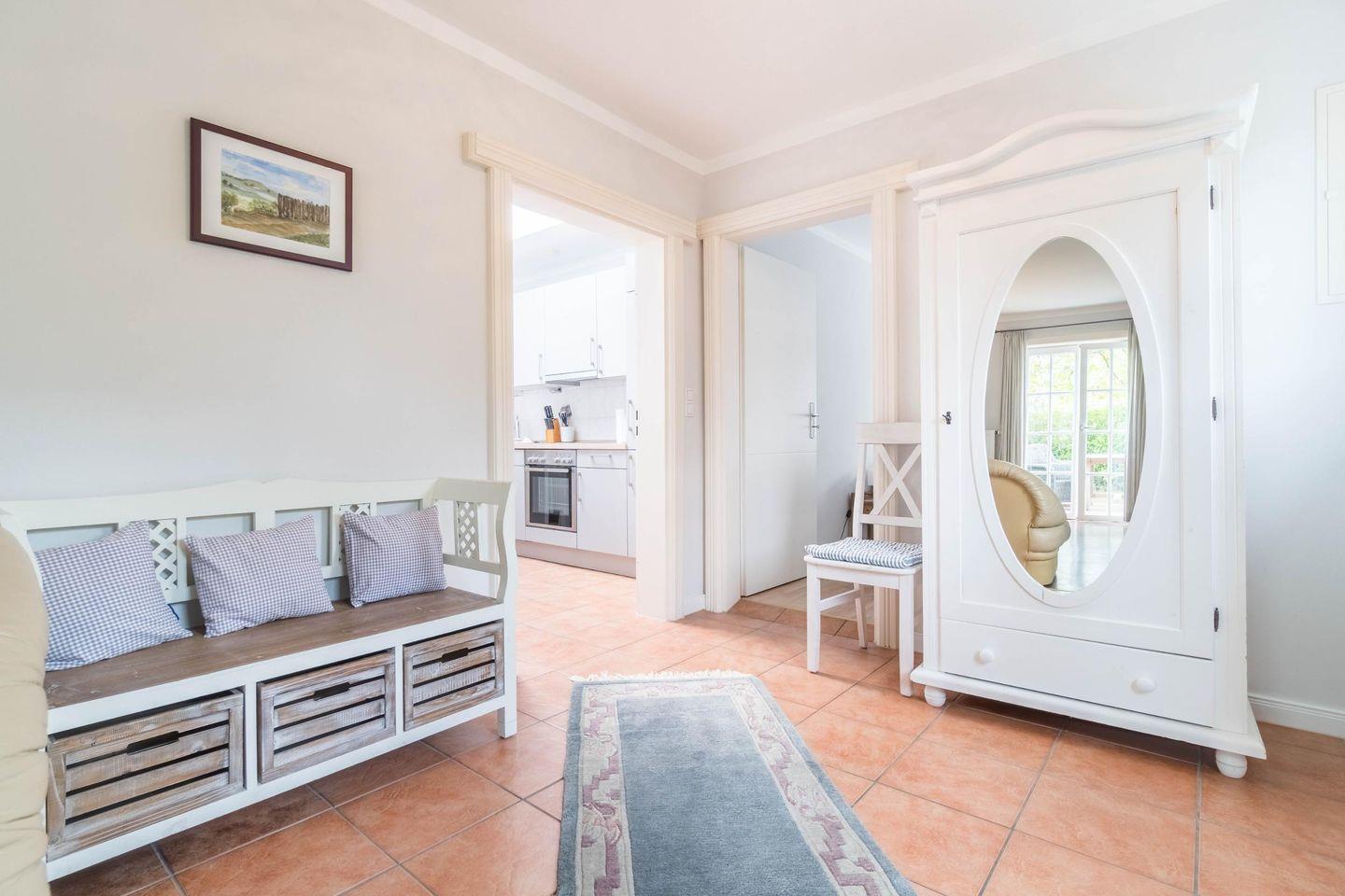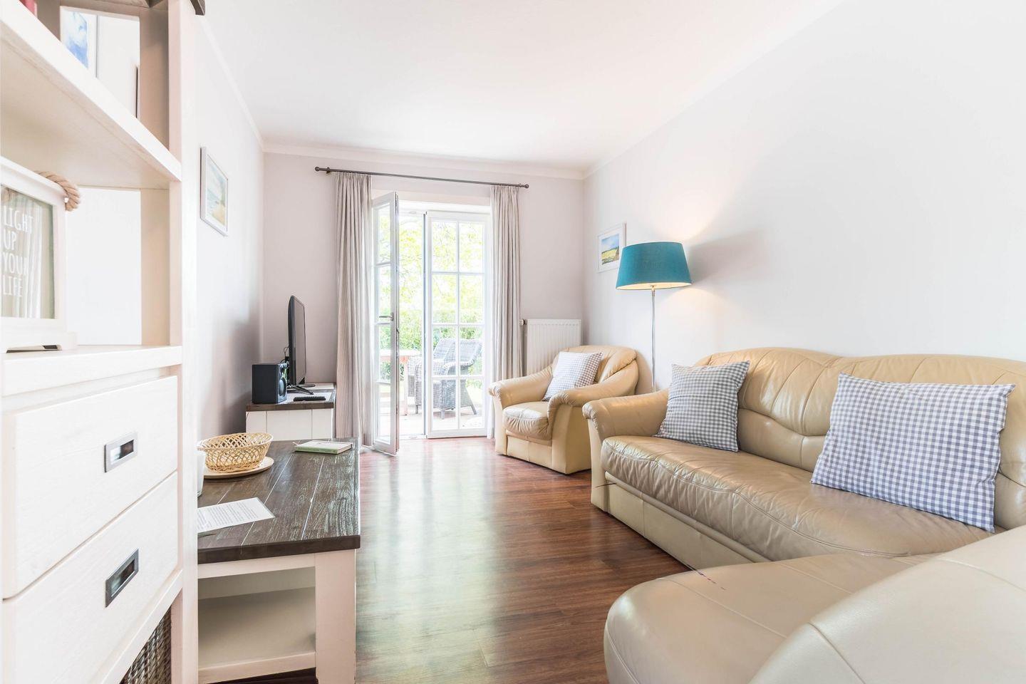 Die großzügige, ca. 65 m² große Wohnung "Clematis" befindet sich im Erdgeschoss und bietet Ihnen eine separate Küche, zwei Doppelbett-Schlafzimmer, ein Duschbad und ein Wohnzimmer mit Zugang zur eigenen Terrasse und dem gemeinschaftlich genutzten Garten. Gerne können Sie in diese Wohnung Ihren Hund mitbringen.