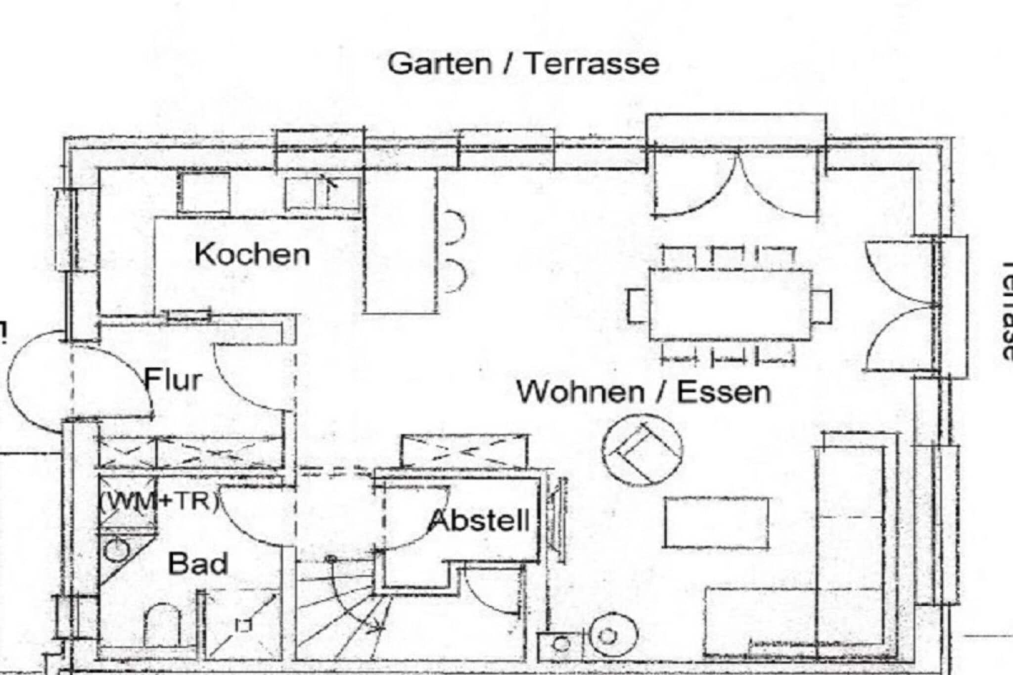 Du træder ind i huset gennem en indbydende entré, der giver et glimt ind i opholdsstuen. Den rummelige stue og spisestue med det integrerede, fuldt udstyrede køkken er et sted for socialt samvær – madlavning og bagning er her rene fritidsaktiviteter. En brændeovn med et hyggeligt siddeområde og adgang til terrasserne og den store have gør dette rum til hjemmets hjerte. Et lille opbevaringsrum og et brusebad med toilet, vaskemaskine og tørretumbler opfylder alle dine feriebehov. Entréen har også et klædeskab med pengeskab og skohylde. Herfra fører en trappe til øverste etage. Denne etage er dedikeret til din ro og afslapning: To soveværelser tilbyder individuelle retræter, det ene med en dobbeltseng og adgang til balkonen, og det andet med to enkeltsenge. Et yderligere brusebad med toilet og sauna (med lysterapi gennem skiftende lysfarver) tilbyder et lille wellness-område. En åben trappe fører til loftet, hvor et lille skrivebord med en kablet internetforbindelse muliggør sikker arbejdsplads. Et lysfyldt opholdsstuebibliotek med sovesofa og fladskærms-tv tilbyder afsondrethed og, på nogle vinterdage, udsigt over Hallig Langeneß.