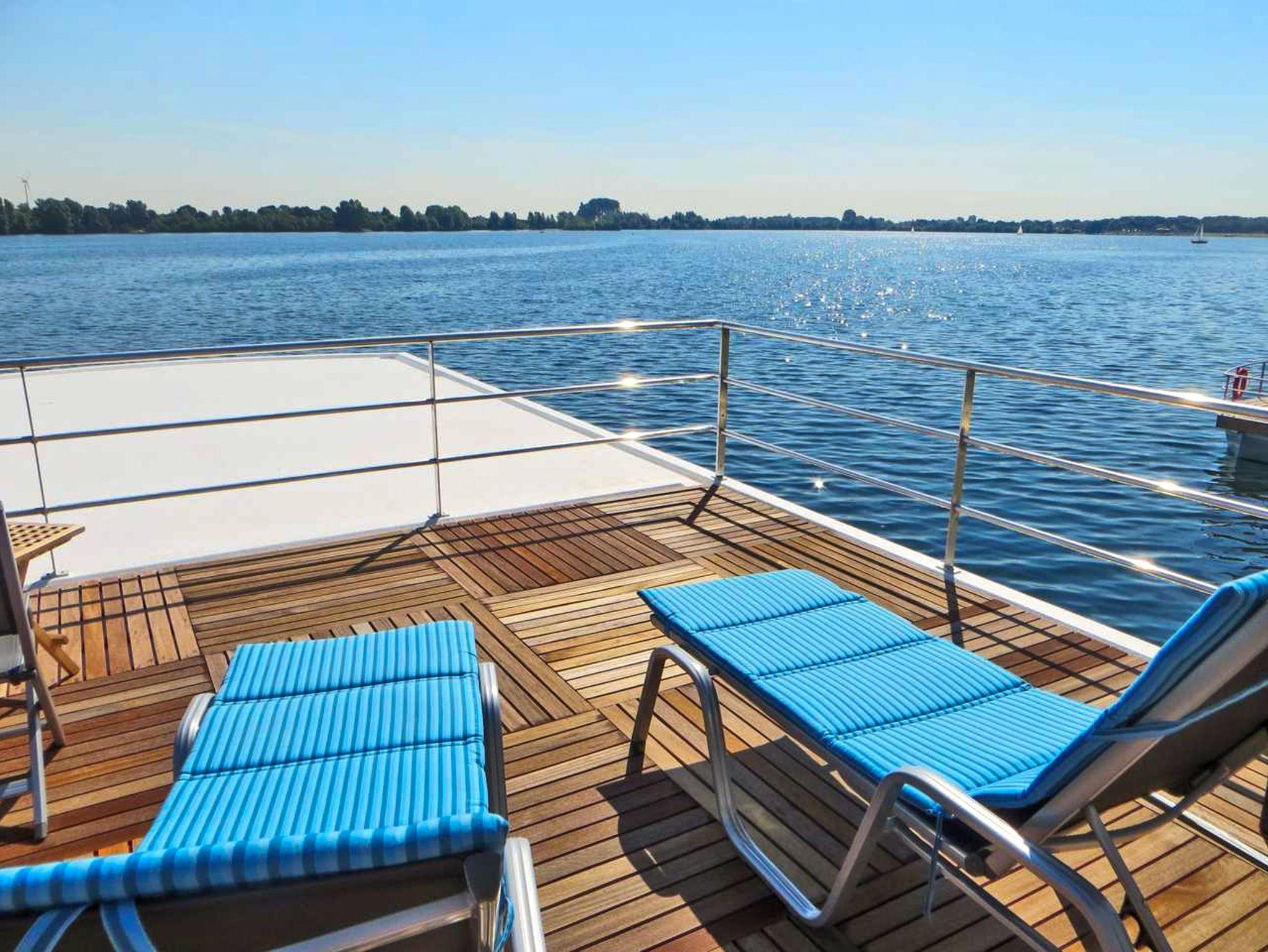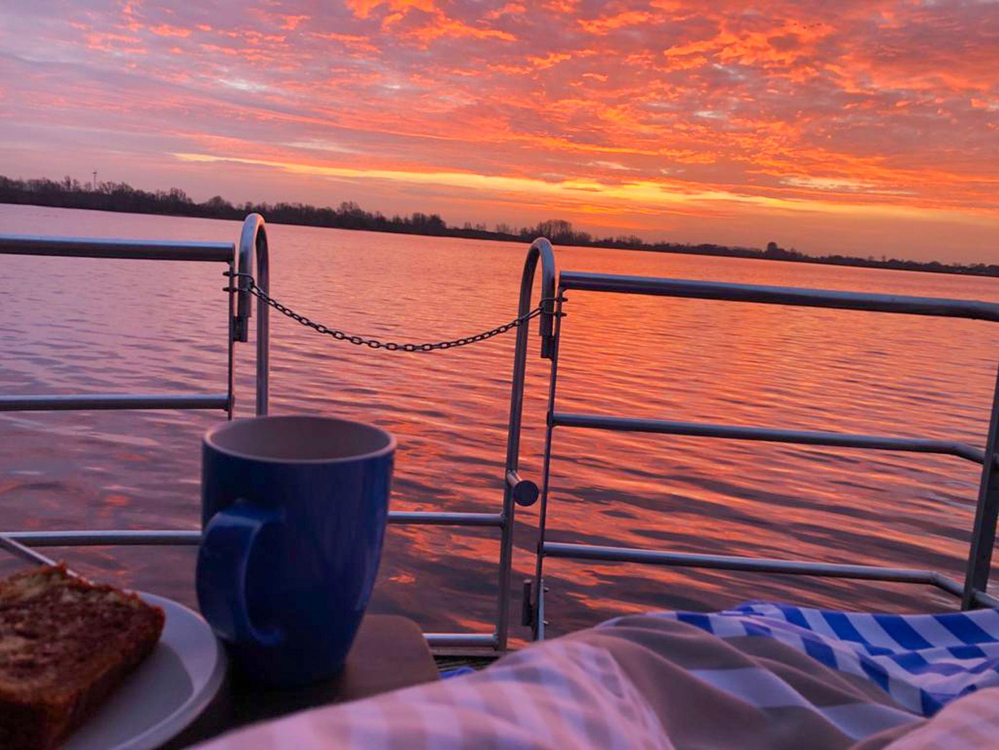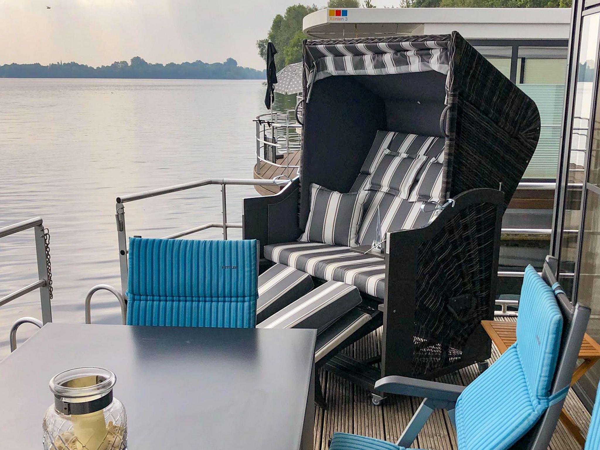 Floating Houses Xanten fünf moderne Hausboote mit je 44m² Wohnfläche, zwei Schlafzimmern und Platz für bis zu vier Personen erwarten Dich auf dem idyllischen Nordsee in Xanten. Die festliegenden Hausboote liegen an einer eigenen Steganlage im charmanten Ortsteil Vynen direkt auf dem Wasser, mitten in der grünen Seenlandschaft zwischen Nord- und Südsee. Hier genießt Du nicht nur absolute Ruhe, sondern auch das Gefühl, mitten in der Natur zu sein mit Wasser, Wellen und weitem Blick. Die Boote sind besonders hochwertig und maritim-modern eingerichtet und verfügen über zwei gemütliche Schlafzimmer mit Doppelbetten, einen lichtdurchfluteten Wohnbereich mit großen Fensterfronten und eine voll ausgestattete Küche. Der Zugang zur Bug-Terrasse mit Sitzmöbeln macht das Frühstück am Wasser zum täglichen Highlight. Oben erwartet Dich eine großzügige 25m² große Dachterrasse perfekt zum Sonnen, Entspannen oder einfach nur für die Aussicht. Eine Klimaanlage sorgt auch an warmen Tagen für angenehmes Raumklima.