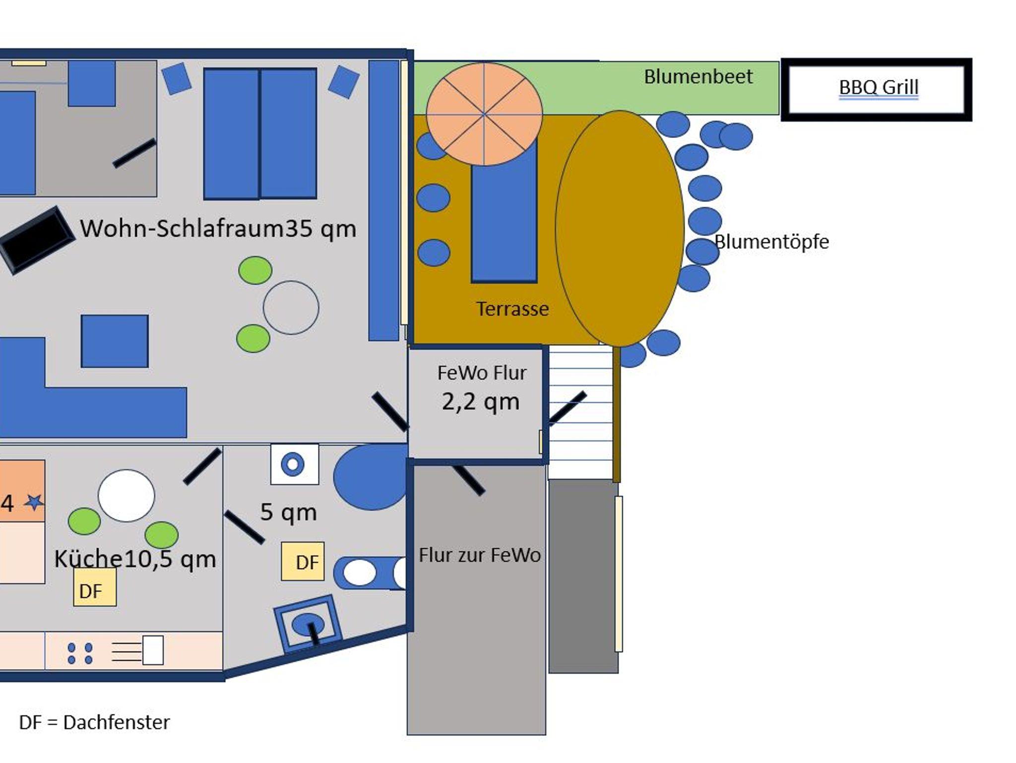 Die ca. 50 m² große Ferienwohnung verfügt über einen separaten Eingang, besteht aus 1 Wohn-/Schlafraum (Doppelbett/Aufstellung als 2 Einzelbettenmöglich + Schlafcouch), großen Duschbad mit Waschmaschine, Küche und Terrasse. Ein Wäschepacket von 11€ pro Person/ pro Woche kann dazu gebucht werden. Hunde sind anzumelden,pro ÜN 7,00€.