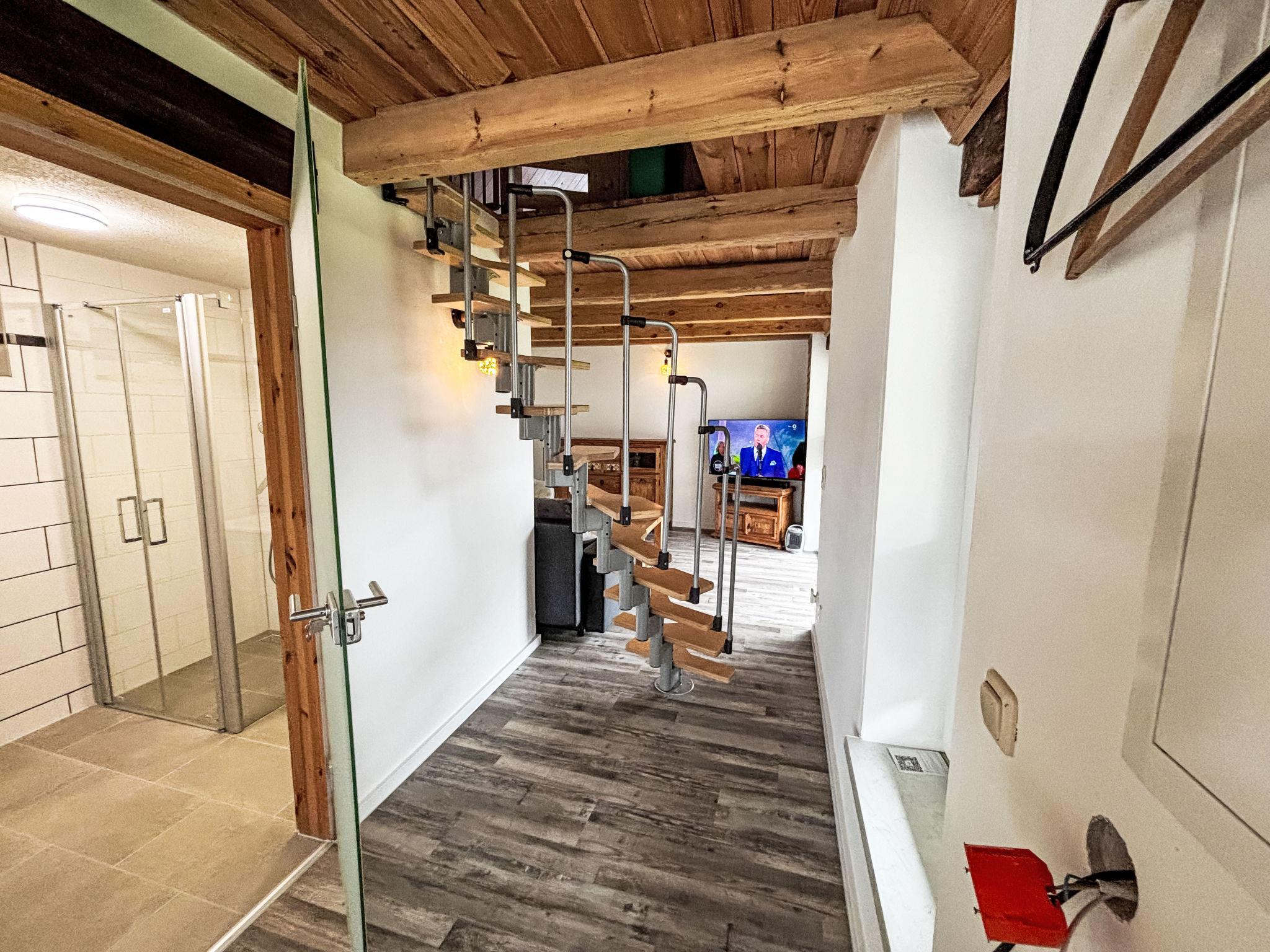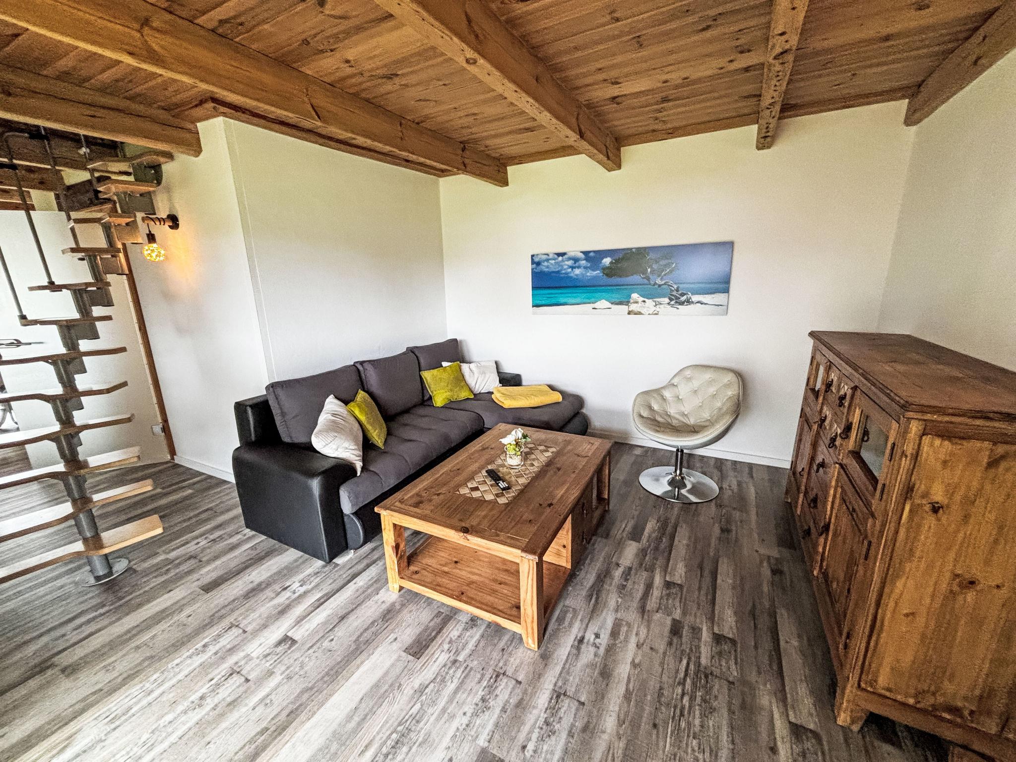 "Paula", 3-room house 58 m2 on 2 levels. Modern furnishings: living room with satellite TV, CD-player and hi-fi system. Exit to the terrace. Kitchen (4 hot plates, oven, dishwasher, toaster, kettle, microwave, freezer, electric coffee machine) with dining table and wood-burning stove. Shower/WC. Top floor: (steep stair), 1 open room with sloping ceilings, ceiling height 10 - 190 cm, without wardrobe with 1 double bed. 1 open room with sloping ceilings, ceiling height 10 - 190 cm, without wardrobe with 2 beds. Electric heating. Terrace, patio. Terrace furniture, deck chairs (2). Facilities: logs (extra). E-charging station. Please note: non-smoking house. Smoke alarm. Bookings accepted for holiday purposes only.
