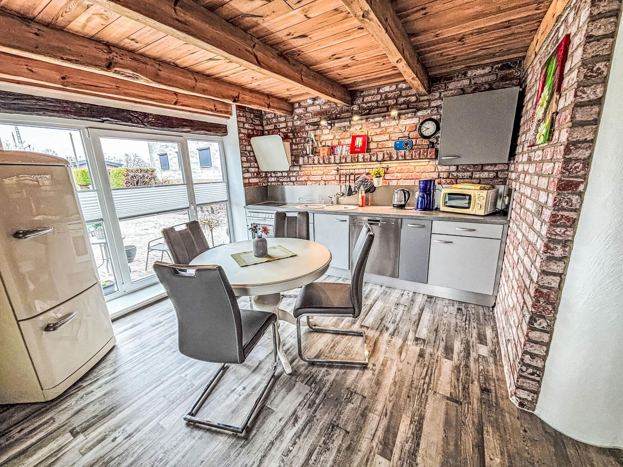 Cosy house "Paula", renovated in 2017. 700 m from the centre of Züssow, on the outskirts, 10 km from the centre of Gützkow, 19 km from the centre of Wolgast, 10 km from the lake. For shared use: property (fenced), well-kept garden with lawn and trees. Private: fireplace. E-charging station. Shop, restaurant, bicycle rental 700 m, bus stop "Züssow" 350 m, railway station "Züssow" 300 m, sandy beach "Zinnowitz" 22 km, indoor swimming pool 22 km. Please note: the owner lives on the same property.