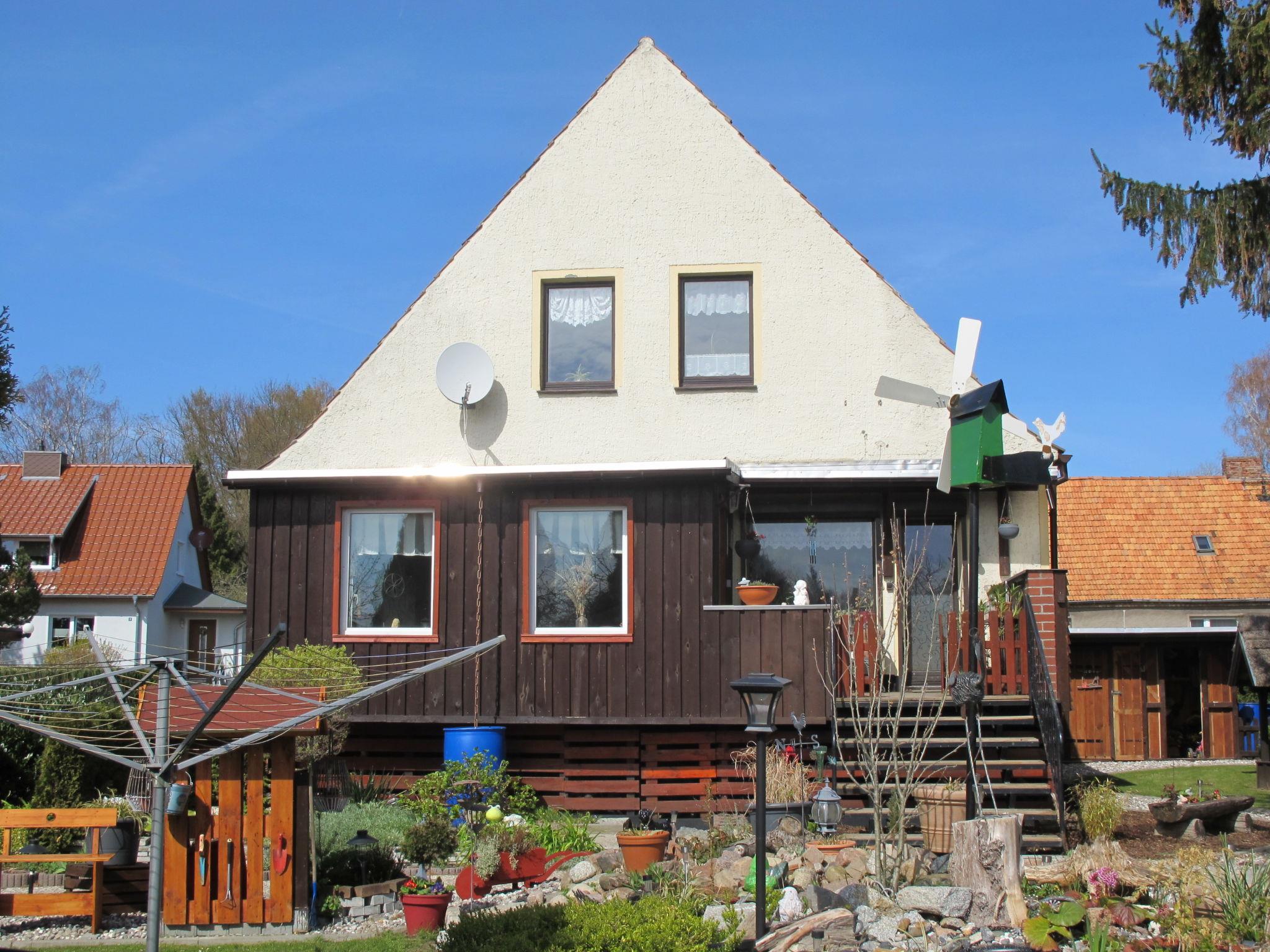 Single-family house "Kleine Auszeit". In the resort Züssow, 15 km from the centre of Wolgast, 20 km from the centre of Greifswald, 22 km from the sea, 10 km from the lake, in a cul-de-sac. For shared use: property 600 m2 (fenced) with lawn and trees. Fireplace, barbecue house, roofed, parking on the premises. Shop 70 m, supermarket 10 km, bus stop "Züssow" 800 m, railway station "Züssow" 800 m, sandy beach 22 km, indoor swimming pool 20 km. Please note: the owner lives in the same residence.