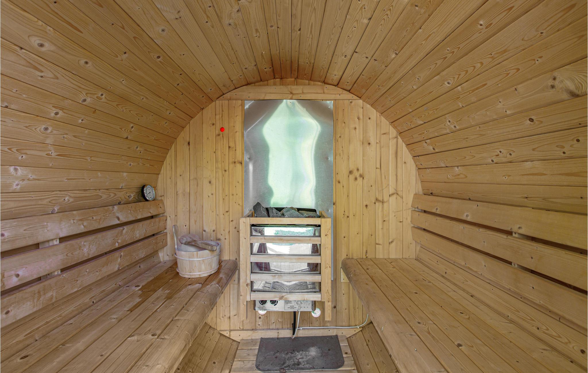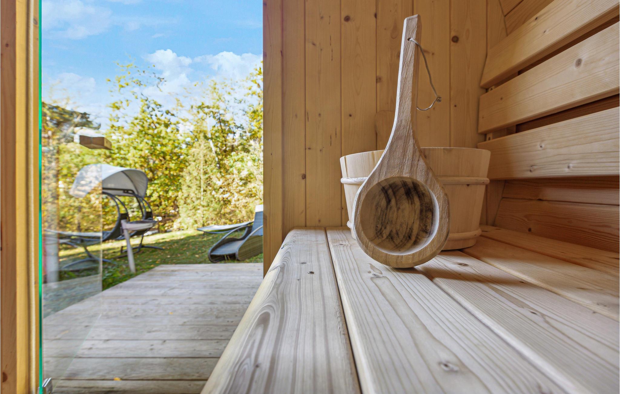 I haven finder I en tøndesauna, hvor I kan svede alle dine hverdagsbekymringerne ud og bare komme i zen. En anden feriebungalow er direkte tilstødende til huset og kan reserveres, hvilket er perfekt til større familier eller venner, der gerne vil på ferie sammen, men som også vil nyde privatlivets fred.