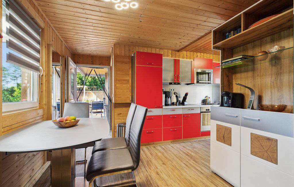 Velkommen til dette fine træhus, der ikke lader noget tilbage at ønske. Her kan I finde jer godt til rette, slappe af og nyde den komfortable indretning, som også omfatter en pejs. Tilbring feriedagene i det attraktive interiør eller nyd solen og faciliteterne udenfor. På terrassen står der flotte kvalitetshavemøbler klar, så her kan I slå jer ned med kaffen, en bog eller et glas vin om aftenen. Wellness er også tilgængeligt i form af en tøndesauna med udsigt over træerne og søen.