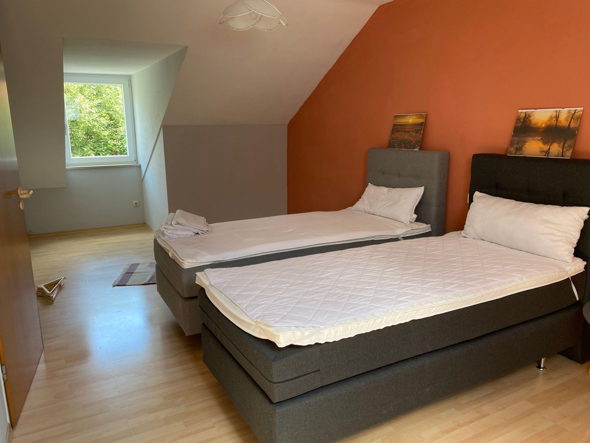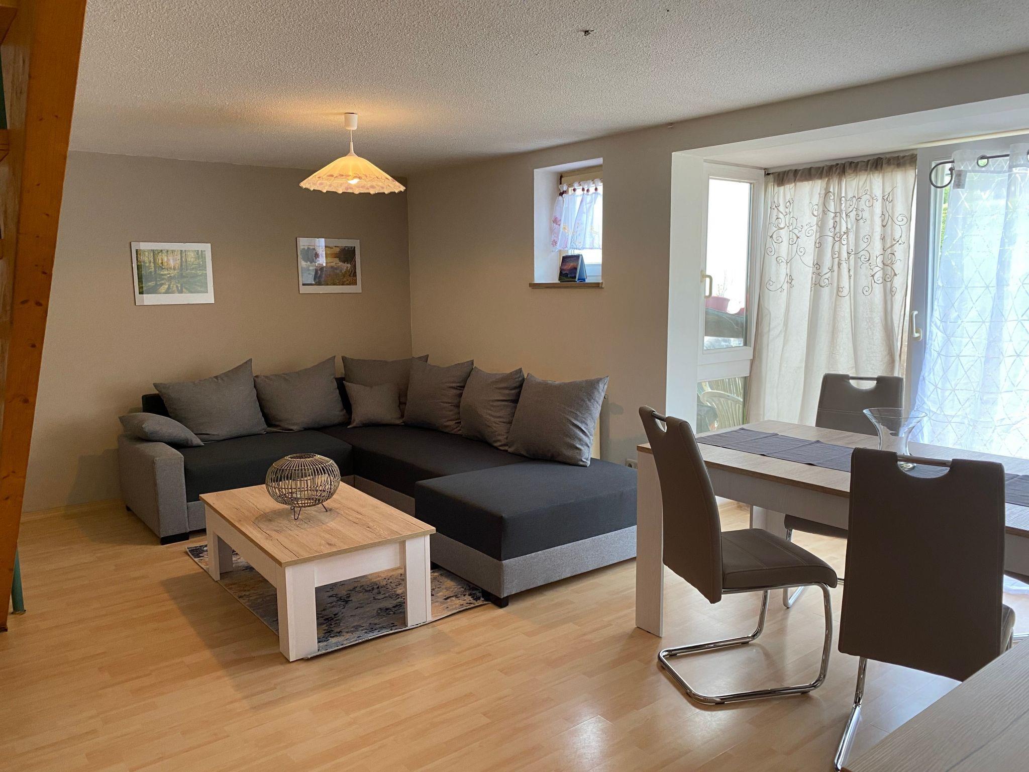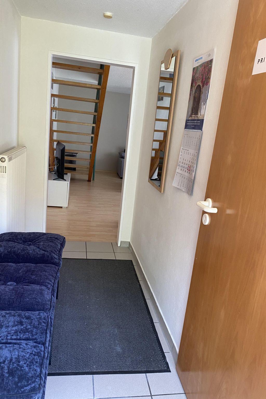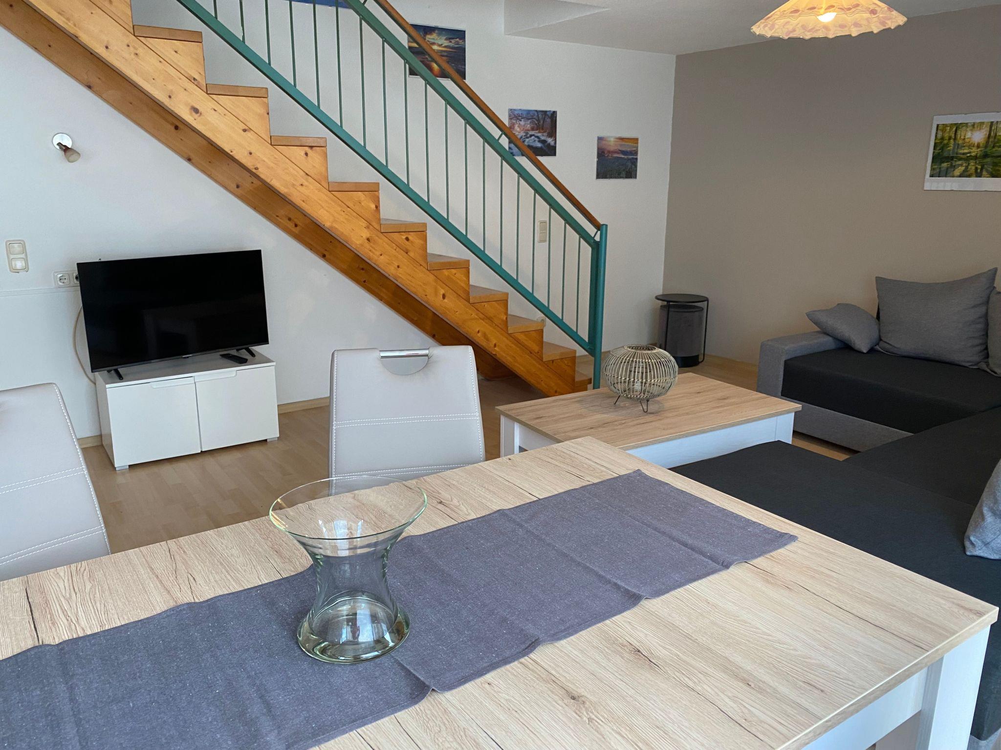 The studio holiday home, approx. 70 m² in size, consists of two separate bedrooms and a bathroom with toilet and bathtub on the first floor as well as a spacious living room on the ground floor with a dining area in the small conservatory and access to the terrace with a small garden area, from the living room there is open access to the small, fully equipped kitchen with cooker, oven, dishwasher, coffee machine and fridge. In the living area and in the bedroom there is a new flat screen TV with satellite TV and radio reception.the flat has a car parking space and free w-lan. There is an e-charging station for cars and e-bikes next to the studio holiday home.