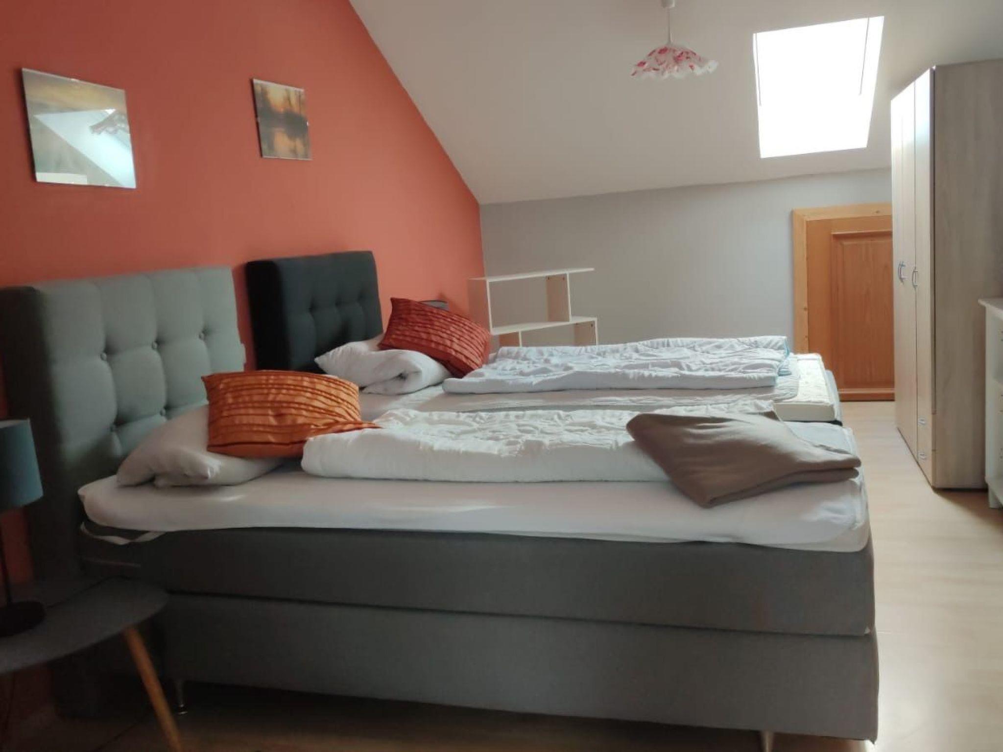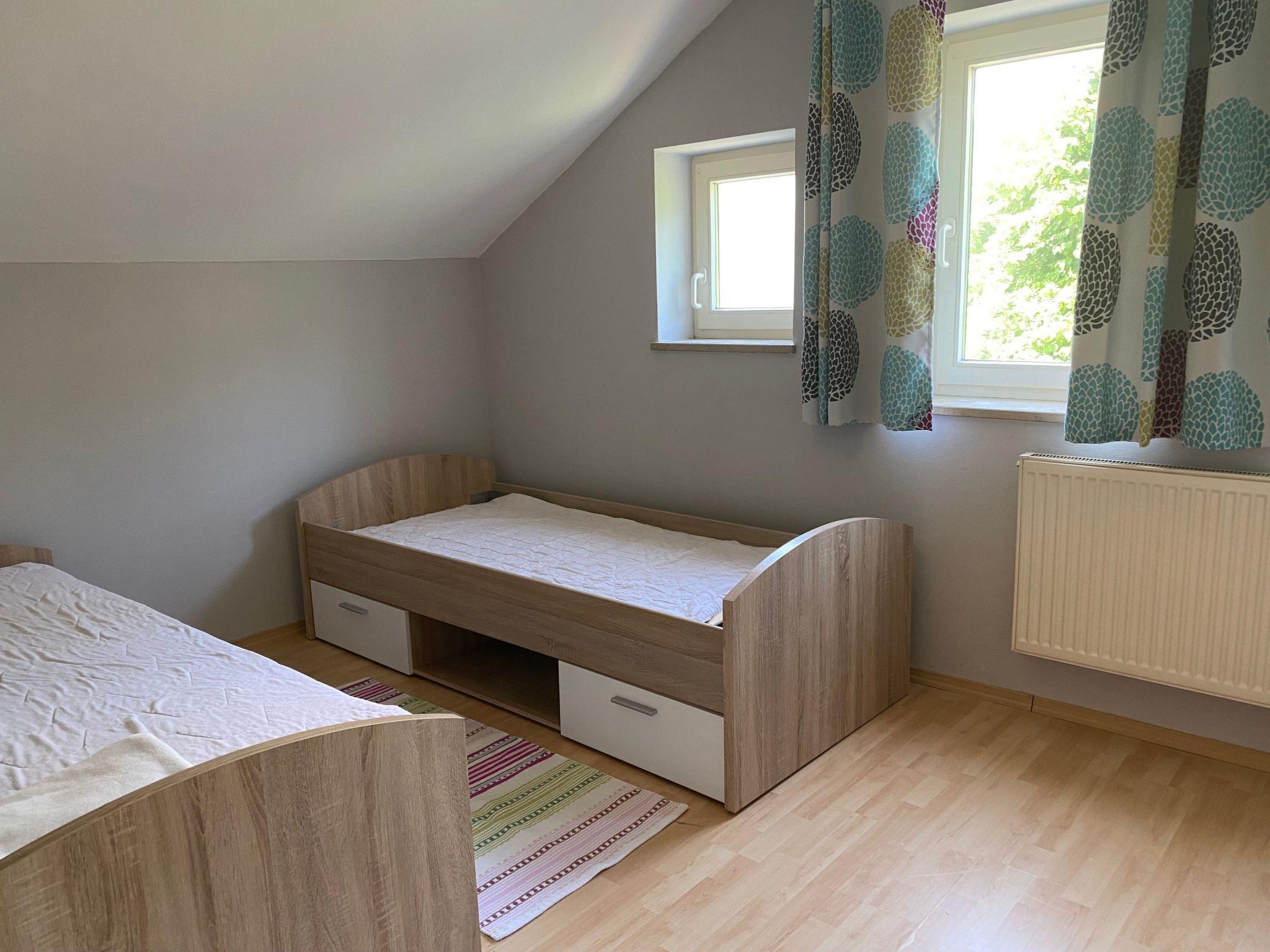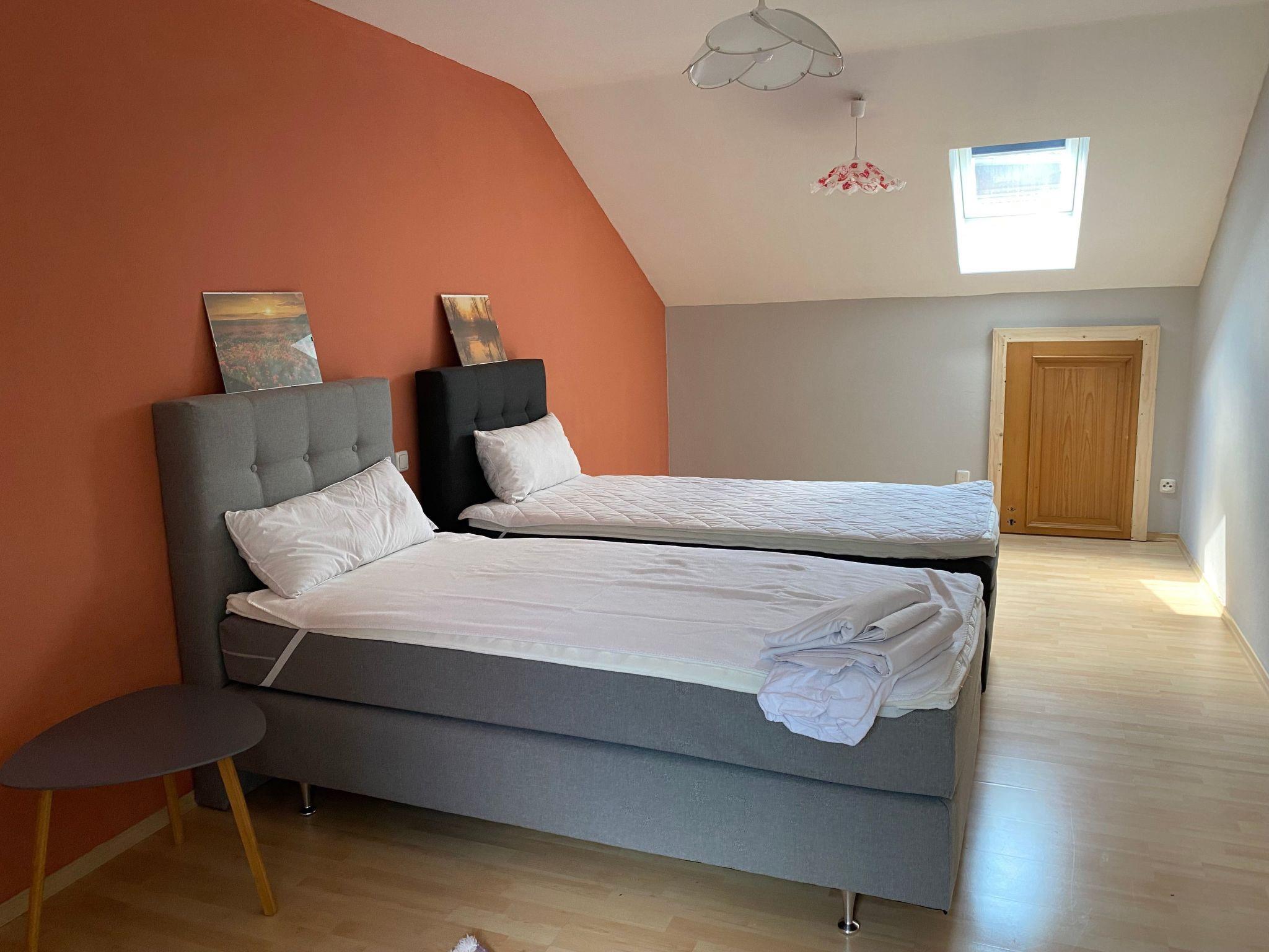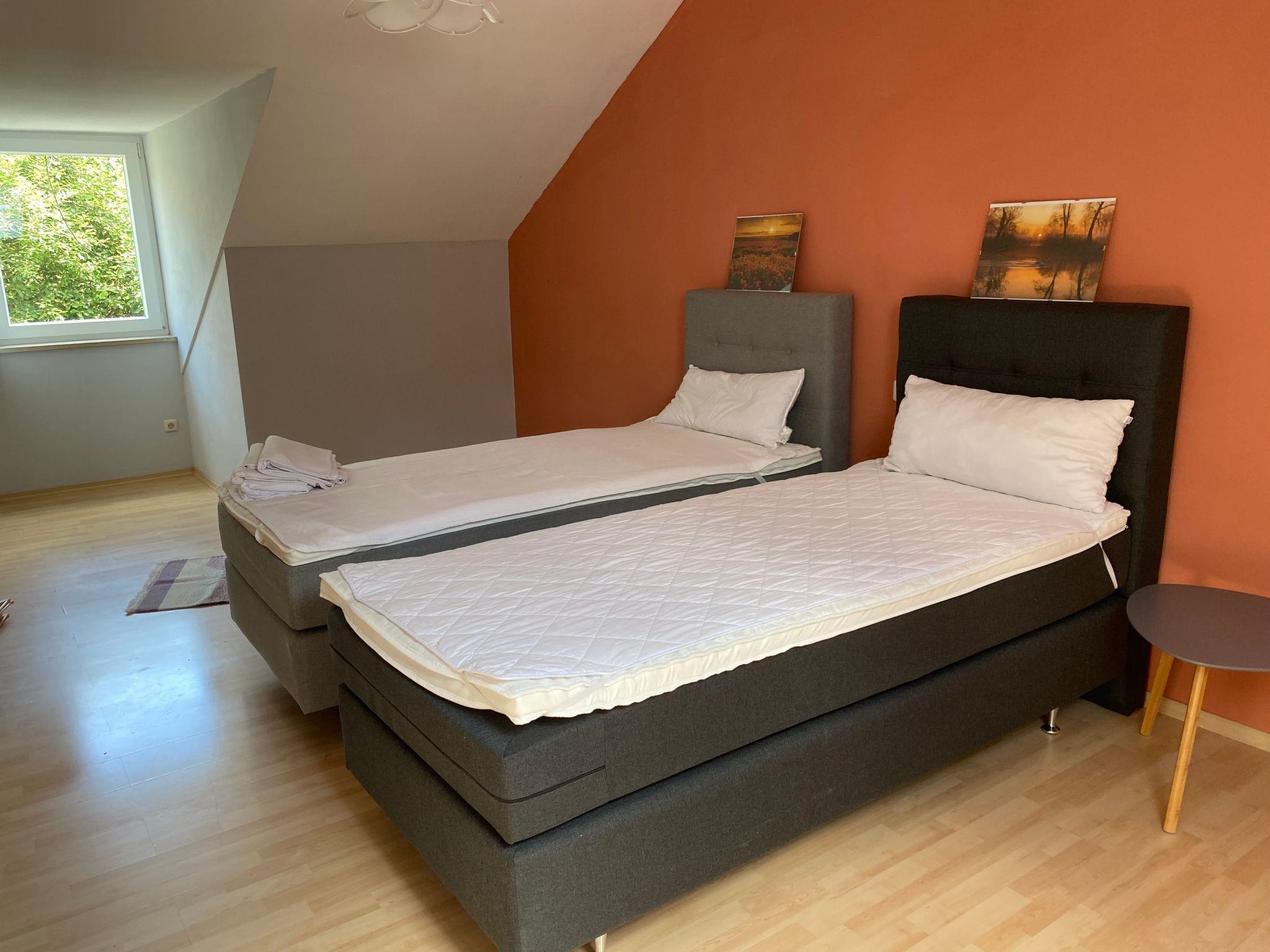The studio holiday home, approx. 70 m² in size, consists of two separate bedrooms and a bathroom with toilet and bathtub on the first floor as well as a spacious living room on the ground floor with a dining area in the small conservatory and access to the terrace with a small garden area, from the living room there is open access to the small, fully equipped kitchen with cooker, oven, dishwasher, coffee machine and fridge. In the living area and in the bedroom there is a new flat screen TV with satellite TV and radio reception.the flat has a car parking space and free w-lan. There is an e-charging station for cars and e-bikes next to the studio holiday home.