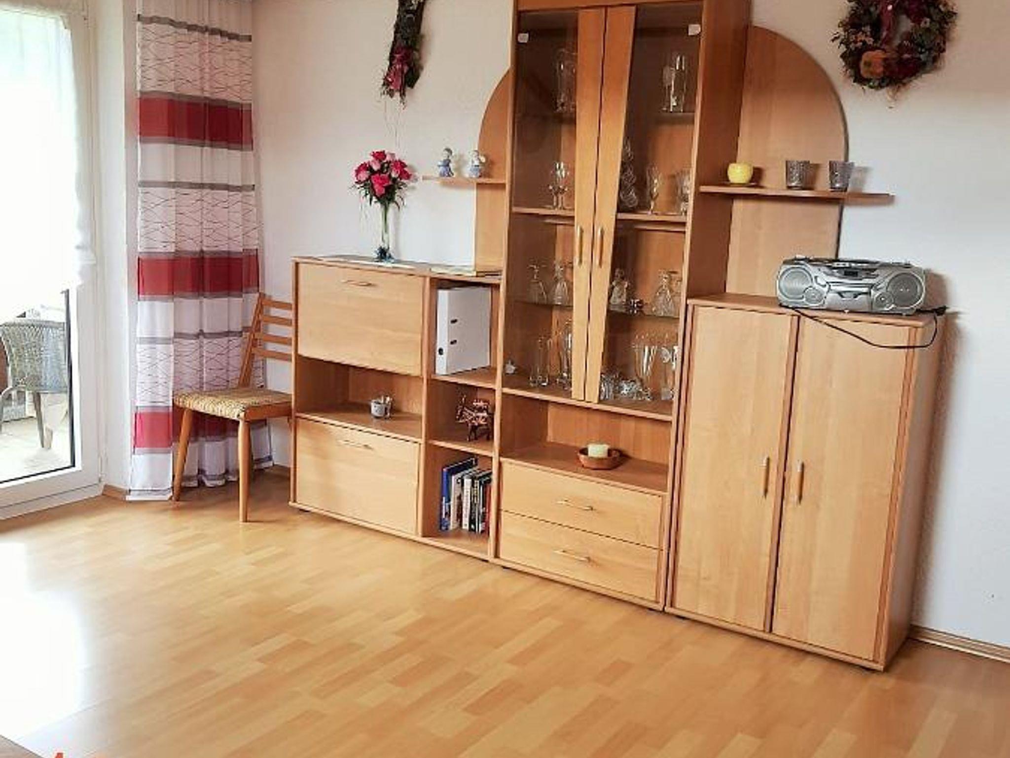 3 Schlafzimmer mit jeweils einem Doppelbett und einem Kleiderschrank, Wohnzimmer mit Couchlandschaft , Sat-TV und Wohnwand, Wohnküche ausgestattet mit Küchenzeile, Essecke, Spülmaschine und Mikrowelle. Badezimmer mit Badewanne, Dusche und WC. Balkon ist mit Sitzgelegenheit, Liegestühlen und Sonnenschirm ausgestattet. Ruhig gelegen, durch Einzellage, kein Durchgangsverkehr. Direkte Verbindung an den Radweg. Umgeben von Wiesen und Wäldern. Viel Platz für Kinder zum Spielen und Austoben. Grillmöglichkeit vorhanden. Haustiere erlaubt.